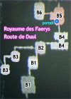 B1 : Comme à l'accoutumée, parlez aux Faerys pour des informations et avancez. B2 : Cette route est bloquée par une barrière, que vous pouvez enlever en tuant le Folk présent, Boobrie. Quand il vous met un coup de bec, usez de Killmoulis pour vous protéger. Allez plutôt sur ses flancs pour l'attaquer, mais attention à son coup de patte. Faites attention aussi à ses bourrasques qui peuvent être redoutables. Pour l'absorber, il faut être synchrone afin de tier au moment où l'Id apparait en rouge. Au besoin, la pierre blanche recèle des Petites gouttes de vie. Maintenant avec Boobrie, vous pouvez casser les pierres vertes, avancez un peu pour en détruire une qui donne une Noix d'arbre chaud*. Un peu plus haut se trouvent 2 Cait Sidhes mais ils prennent vite la fuite donc dépêchez-vous d'utiliser Impet sur l'un afin de l'absorber. A3 : Profitez d'avoir Boobrie afin de détruire la pierre verte et recevoir la Cape Faery, que vous pouvez mettre en allant au portail. B2 : Allez d"abord à gauche. B3 : Vous remarquez que cette section se trouve en Elysium sur la carte. Cassez la pierre blanche pour 2 Poukes. Près de la verte arrivent 2 Poukes et 2 Killmoulis. Avancez et dans cette seconde pierre blanche sort 2 Poukes. Au bout vous attend 1 Bug-a-boo à attaquer avec Cait Sidhe et 2 Killmoulis. Après les avoir vaincu, une pierre verte apparait avec Album du Royaume des Faerys, Page 3. Revenez et 3 Killmoulis sont présents. Si vous y retournez la pierre verte contient une Poussière verte. B2 : Allez à droite à présent. B4 : Sur ce grand champs se trouvent 4 Poukes, 3 Henkys et 2 Impets. B5 : Vous pouvez sauver au portail et comme vous l'indique le Faery retourner à Doolin pour faire des quêtes. Allez à gauche pour de nouveaux folks. => Quête Ganconer : Le concert = 2 Quartz vert B6 : Vous découvrez 2 Darus (le sommeil est radical sur eux). Une pierre blanche recèle une Noix d'arbre palpitant et un autre Daru fait son apparition. B5 : Une fois revenu avancez pour une scène et poursuivez votre route.