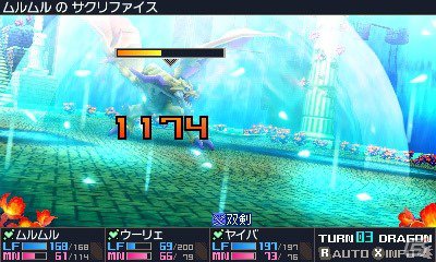 La compétence « Sacrifice » consume une grande partie des MP afin de lancer une puissante attaque magique sur tous les ennemis. Cette attaque est tellement puissante, que le lanceur se retire après le coup.