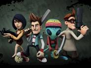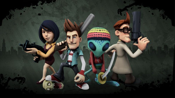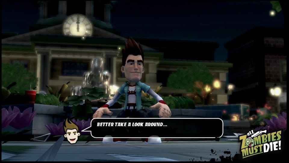 All Zombies Must Die! mettra en scène quatre personnages qui doivent sauver la petite ville de Deadhill : Jack (un « gamer ») , Rachel (une fille) , Brian (un geek) et Luxo (un alien) .