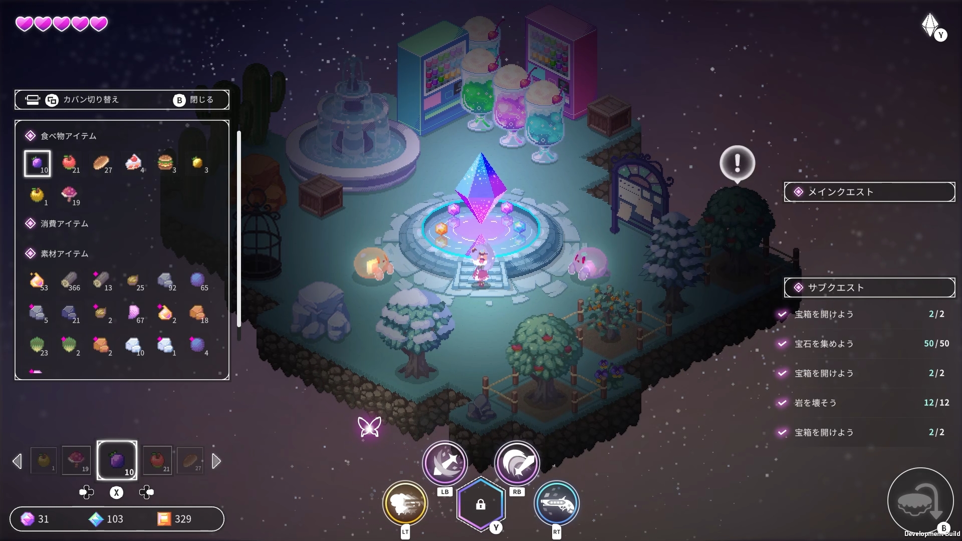 En créant et en enrichissant son île, la fille va recevoir des pouvoirs. Déplacez-vous librement entre le vaste monde et l'île céleste, affrontez des monstres, visitez des donjons et collectez des objets dans cet univers isométrique.
