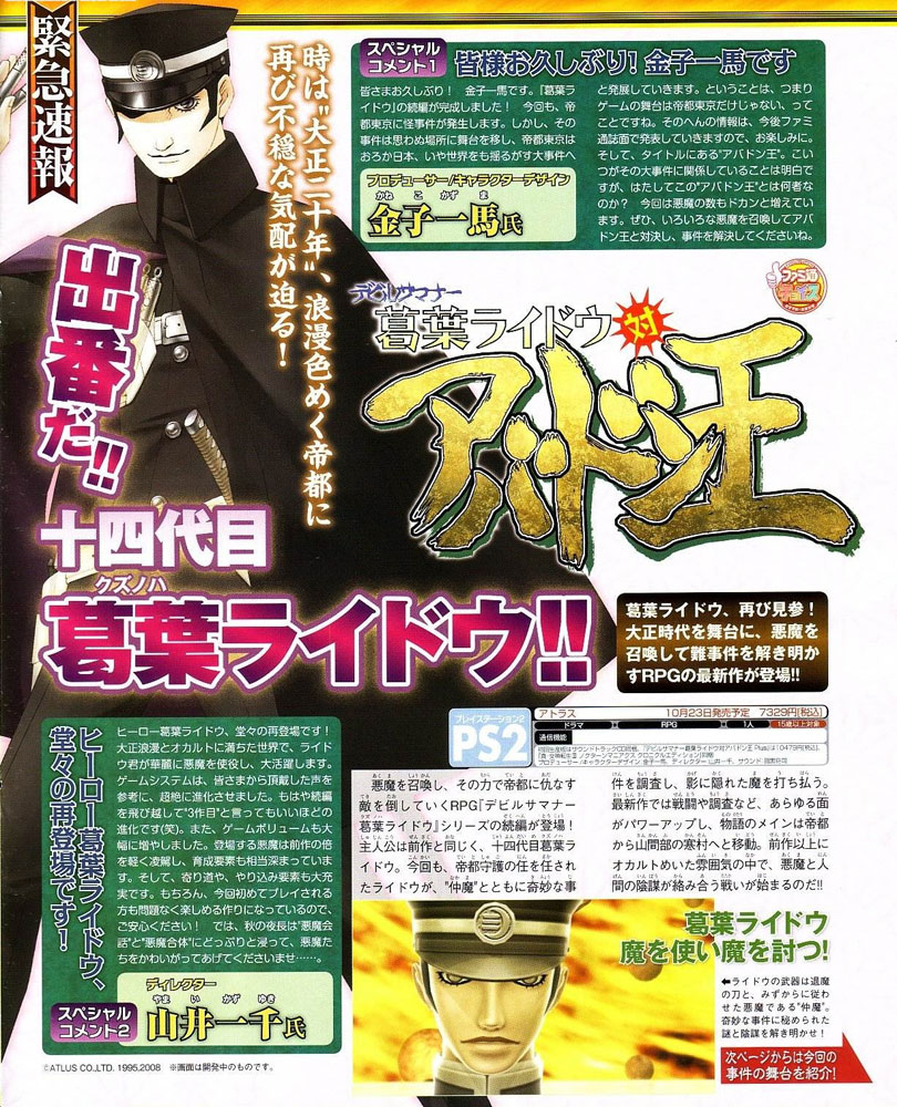 La PlayStation 2 n'est décidément pas encore enterrée. Atlus propose en effet la suite à Devil Summoner, qui verra le héros et détective ès sciences occultes affronter le Roi Abaddon dans des environnements a priori plus variés que dans son prédécesseur. Le système de combat subira quant à lui quelques bouleversements encore indéterminés.