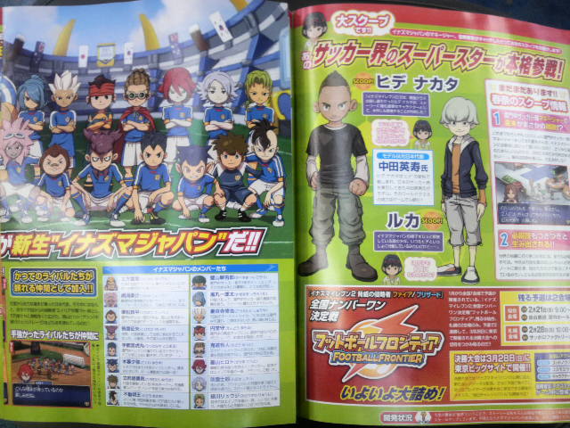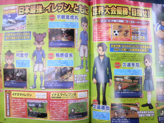 Inazuma Eleven 3 a fait sa première apparition dans le dernier numéro du magazine nippon Famitsu; on découvre donc avec ses premiers visuels, une partie des protagonistes qui rejoindront le jeune gardien de football, Endô Mamoru, dans sa quête d'un titre mondial.
