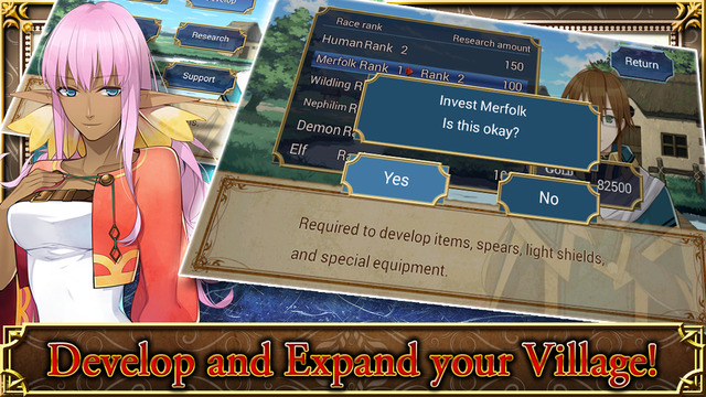 Au cours de l'aventure, vous pourrez investir dans un village pour encourager le développement de nouvelles armes et armures que vous pourrez ensuite utiliser lors des combats.