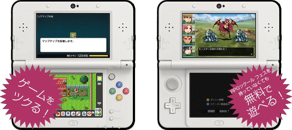 Les jeux ainsi créés seront jouable grâce au RPG Maker Fes Player qui sera disponible gratuitement sur l'eStore de la console lors de la sortie du jeu.