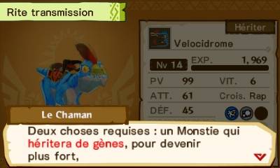 La série Monster Hunter est un véritable phénomène au Japon, un peu moins à l’international même si cette dernière commence enfin à prendre son envol, surtout avec l’arrivée de Monster Hunter World. En effet, elle touche un certain public, de niche certes à cause d’un gameplay trop rigide ou trop exigeant à cause du temps qu’il faut y consacrer. Pourtant, Capcom décide, enfin de sortir des sentiers battus en adoptant une nouvelle manière d’entreprendre le jeu, sous forme d’un spin-off qui gardera l’univers du jeu tout en choisissant une manière totalement différente d’aborder la chasse. Ce Monster Hunter Stories à l’univers coloré est-il un bon jeu ? Garde-t-il toute la substantifique moelle d’un Monster Hunter ? C’est ce que nous allons découvrir dans cette review. Une histoire digne d’un manga « Kodomo » (pour enfant) ? L’histoire débute de manière assez simple, on incarne un enfant (fille ou garçon) qu’on pourra customiser à sa guise de la même manière que dans Monster Hunter. Avec ses deux amis Lilia et Ren, il partira à la découverte d’un œuf de Wyvern dans le but de devenir un “Rider”. Tout d’abord, qu’est-ce donc qu’un “Rider” ? Au lieu d’être un chasseur voulant occire les différents monstres du jeu (Rathalos, Jaggi, Barroth etc.), un “Rider” souhaite tisser des liens d’amitiés avec eux afin de pouvoir les utiliser en tant que monture ou pour tout simplement combattre, à la manière d’un Pokémon, via un système de combat au tour par tour sur un affichage divisé entre l’écran tactile pour le choix des diverses attaques et l’autre pour voir la bataille. Nos trois personnages vivent à l’écart du monde extérieur, ici dans le petit village d’Hakum qui va subir une catastrophe : le fléau noir. En effet, une bête, le Nargacuga, va dévaster le village alors qu’habituellement les monstres sont plutôt pacifiques. Cet événement va séparer nos trois compères, et notamment Ren qui en gardera le plus fort traumatisme des trois et qui n’aura qu’un seul et unique désir, la vengeance. L’histoire reprend un an plus tard, où notre héros/héroïne relèvera ses toutes premières épreuves en tant que “Rider”. C’est dans ce contexte que prend place l’histoire de Monster Hunter Stories. L’histoire de ce titre reste en somme tout à fait classique, avec un scénario assez simple et peut-être trop convenu qui peut convenir à des enfants. Outre la catastrophe qui s’abat au tout début du jeu, et qui aurait pu proposer une histoire haletante rempli de désir de vengeance, on se retrouve avec une histoire glorifiant les pouvoirs de l’amitié (comme dans Pokémon). Certes, ce n’est pas ce qu’un joueur expérimenté de Monster Hunter recherche mais ce spin-off a pour but de proposer une nouvelle manière de jouer à la licence et de toucher un public plus large. Globalement, on parvient à s’attacher à certains personnages même s'ils sont en soi un peu caricaturaux, comme Navirou, un peu trop bavard mais à qui on arrive à trouver un peu d’importance. Vous allez aussi partir à la rencontre d’une pléthore de personnages comme Reverto, un chasseur, ou bien Avinia, une “Rider” parcourant le monde aux côté de son Barroth. En soi, bien que l’histoire reste tout à fait conventionnelle et surtout enfantine on se laisse happer par le jeu et surtout par la chasse. Un Monster Hunter tout mignon Comme nous l’avons souligné précédemment, Monster Hunter Stories est un spin-off totalement en décalage par rapport à ce que Capcom a l’habitude de nous offrir. Les graphismes se veulent beaucoup plus colorés avec une esthétique très marquée. Le jeu est indéniablement l’un des plus beaux sur 3DS. Au niveau des personnages, la modélisation est très satisfaisante et les animations sont de très bonne facture. L’esprit Monster Hunter se retrouve véritablement dans le jeu et c’est bien ce qu’attend le joueur même si il peut tout à fait plaire à un néophyte. Que ce soit au niveau de la modélisation des armures ou bien des armes, toutes proviennent de la série (sauf celles des DLC). Il en va de même avec les différents monstres rencontrés, même s’ils ont un aspect un peu plus mignon. Il ne faut donc pas s’attendre à voir un Rathian gargantuesque mais plutôt un dragon plus petit à cause du design qui tire un peu trop sur le côté kawaii (si on était dans Pokémon, on ne s'attendrait donc pas à croiser des Dracaufeu mais plutôt des Salamèche). Bien sûr, les monstres gardent tout de même certains de leurs attributs comme le Brachydios qui aura toujours tendance à vouloir faire exploser ses flaques de poisses, ce qui permet aux fans de s’y retrouver même si l’ambiance du jeu se veut enfantine. Pour ce qui est des environnements, vous pourrez arpenter des zones glaciales, des déserts et des forêts le tout avec un rendu assez chatoyant. En soit cela demeure très varié, mais on reste assez mitigé surtout à cause de la sensation de grand vide qui peut s’en dégager. De plus, au fil du temps, on s’aperçoit de quelques soucis forts désagréables. On sent que la 3DS commence à atteindre ses limites. En effet, si vous jouez sur une console de la première génération, vous aurez droit à beaucoup de ralentissements, particulièrement dans les zones ouvertes (ce qui change un peu avec une New 3DS, mais la console ne fait pas de miracle). De plus, dans les villes, les textures des personnages au loin seront inexistantes et n'apparaîtront qu'à faible distance. Un autre problème se retrouve aussi quand vous rencontrez des monstres au loin, leurs animations seront saccadées. Bien sûr, outre ces soucis, le titre reste très fluide en combat. Sur ce point, il n’y a clairement rien à redire, les animations sont extrêmement bien faites et cela se ressent surtout dans les différentes cinématiques du jeu ainsi que dans 