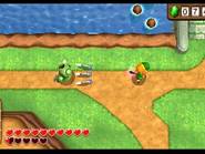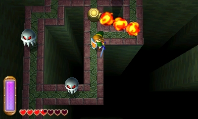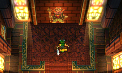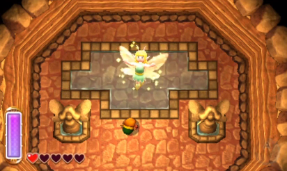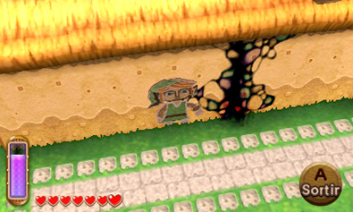Annonce surprise du Nintendo Direct du 17 avril 2013, The Legend of Zelda : A Link Between Worlds s'annonçait comme la suite du célèbre Zelda III mieux connu par le sous-titre A Link to the Past. Toutefois, il lui fallu de nombreux mois, entre le moment où il avait été dévoilé jusqu'à sa sortie européenne le 22 novembre 2013, pour être accepté par les joueurs et surtout par les fans. Nombreux étaient ceux qui manifestaient leur déception, les uns ayant préféré un remake de l'épisode Majora's Mask, les autres ne voyant en lui qu'un reboot de l'opus fondateur, d'autres ne cachant pas leur dégoût pour les graphismes. Un petit goût de déjà-vu, mais quelque peu retravaillé Le jeu commence alors que le jeune Link encore assoupi est réveillé par un garçon nommé Guly, le fils du couple de forgerons dont notre héros est l'apprenti. Ce dernier est en retard. En arrivant à la forge, il croise le capitaine de la garde du château d'Hyrule alors que celui-ci vient faire réparer son épée, qu'il oublie d'ailleurs en partant. Ni une ni deux, c'est à Link que la tâche est confiée d'aller la lui rapporter. Arrivant au palais royal, il constate d'étranges graffitis représentant des soldats, sur les remparts. Là, on l'informe que le chef de la garde s'est rendu au Sanctuaire. C'est en arrivant sur place qu'il le voit en compagnie de Célès, la fille du prêtre. Cette demoiselle rentre alors dans l'édifice tandis que la porte se referme brutalement derrière elle, et l'on entend alors un cri de détresse ! Si le début de l'histoire n'est pas trait pour trait identique à celui d'A Link to the Past, on retrouve quelques éléments familiers, mais les circonstances ainsi que certains personnages sont différents, ce qui évite le sentiment de redondance. De la même façon, le schéma général du jeux ressemble fortement à celui de Zelda III, mais là encore, un certain nombre de variations notables sont au programme. Sans en dire trop, le concept des 7 descendants des 7 Sages a été d'une certaine façon modernisé, et rompt un peu avec la vision classique et très formelle de l'opus SNES. On appréciera d'ailleurs les notes d'humour beaucoup plus présentes, certains personnages quelque peu décalés. Lavio est tout particulièrement réussi dans le genre, avec son humour parfois douteux et sa faculté à être envahissant. En revanche, Link est comme à son habitude un héros « muet » (il ne s'exprime que par gestuelle auprès des autres personnages), ce qui peut s'avérer agaçant, mais cette technique, permettant théoriquement une meilleure immersion du joueur, perdure. Le scénario en lui-même n'est pas franchement transcendant ni très différent de celui de Zelda III. Cependant, il se laisse suivre agréablement, le tout est de ne pas en avoir une attente démesurée. Ceci dit, le joueur n'est pas à l'abri d'une ou deux surprise(s), notamment durant les dernières minutes du jeu. Petit point amusant et sympathique pour les fans, le jeu comporte tout un tas de petites références au volet précédent, et joue de ce fait un peu sur la nostalgie des joueurs. Des graphismes mignons à l'effet 3D quasi-indispensable Comme évoqué plus haut, les graphismes de cet opus 3DS ont tout d'abord fait dresser les cheveux sur la tête de nombreux joueurs. Le côté simple et lisse ne semblait au premier abord pas pouvoir convaincre grand monde. Toutefois, si on ne les considère que comme étant mignons et colorés, ayant pris comme base ceux d'A Link to the Past, on se rend finalement à l'évidence qu'il n'y a qu'avec cette esthétique que le jeu aurait pu faire mouche, d'autant plus que de petites cut-scènes viennent souligner les moments forts de l'histoire. Et lorsqu'on se plonge dans le jeu, on oublie leur aspect enfantin et on se prend à les apprécier à leur juste valeur. Car ce monde d'Hyrule revisité en modélisation 3D est tout bonnement enchanteur. C'est d'ailleurs aussi avec grand plaisir que l'on retrouve les ennemis de l'opus précédent non plus en sprites 2D mais bien en trois dimensions. Il est cependant vrai que la modélisation de Link n'est pas des plus charismatiques. Toutefois, les joueurs partageant cet avis seront ravis d'apprendre que Yuga le trouve laid également ! Mais ces graphismes aussi mignons soient-ils perdraient de leur superbe si on enlevait l'effet 3D auto-stéréoscopique. En effet, A Link Between Worlds tire pleinement parti de cette fonction majeure de la 3DS, et rend d'autant plus palpable le monde d'Hyrule (et de Lorule), si bien qu'on serait presque prêts à plonger tête la première dans cet univers verdoyant. Et ça ne s'arrête pas au simple esthétisme, car les niveaux des donjons se succédant verticalement, l'effet 3D s'avère extrêmement pratique pour mieux visualiser les volumes. Bien sûr le jeu est faisable en 2D, mais l'immersion en est nettement diminuée, et la résolution des énigmes ainsi que l'exploration s'en retrouvent également affectées. S'il y a bien un jeu à faire en 3D, c'est sans aucun doute celui-ci ! De plus, le soft tourne en 60fps ce qui rend l'effet de profondeur plus stable et les déplacements bien plus fluides, ce qui fait que le jeu ne souffre d'aucun ralentissement. Au niveau des musiques, la carte de la nostalgie a également été jouée puisque la plupart des thèmes de ce jeu sont des réinterprétations de ceux d'A Link to the Past, et celles-ci sont du plus bel effet ! Ceux de Lorule et de son château sont d'ailleurs parmi les plus réussis, avec celui des Bois Perdus. On ne change pas une équipe qui gagne... Lorsqu'un système de jeu est efficace, il n'y a pas de raison de l'abandonner. Ainsi, A Link Between Worlds suit les pas de son prédécesseur d'un point de vue général. Pour commencer, le monde d'Hyrule ressemble beaucoup à celui de l'opus SNES, ce qui n'est pas illogique puisque cet opus 3DS se déroule dans le même monde, mais très longtemps après. Alors b