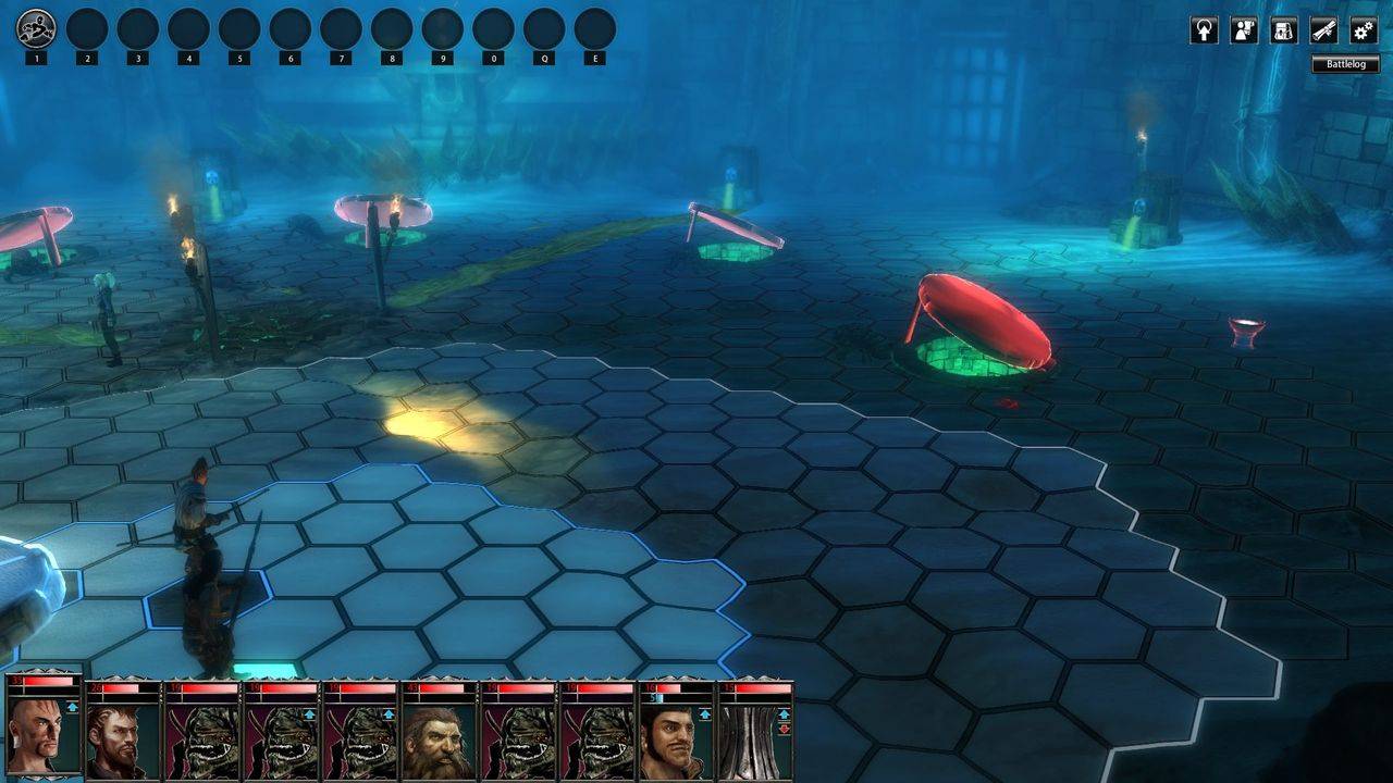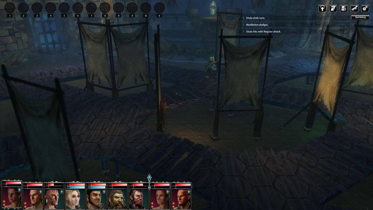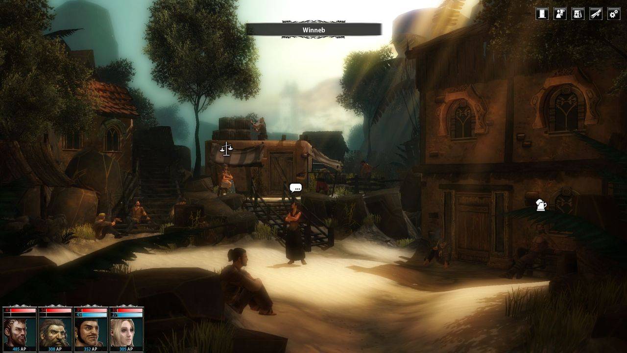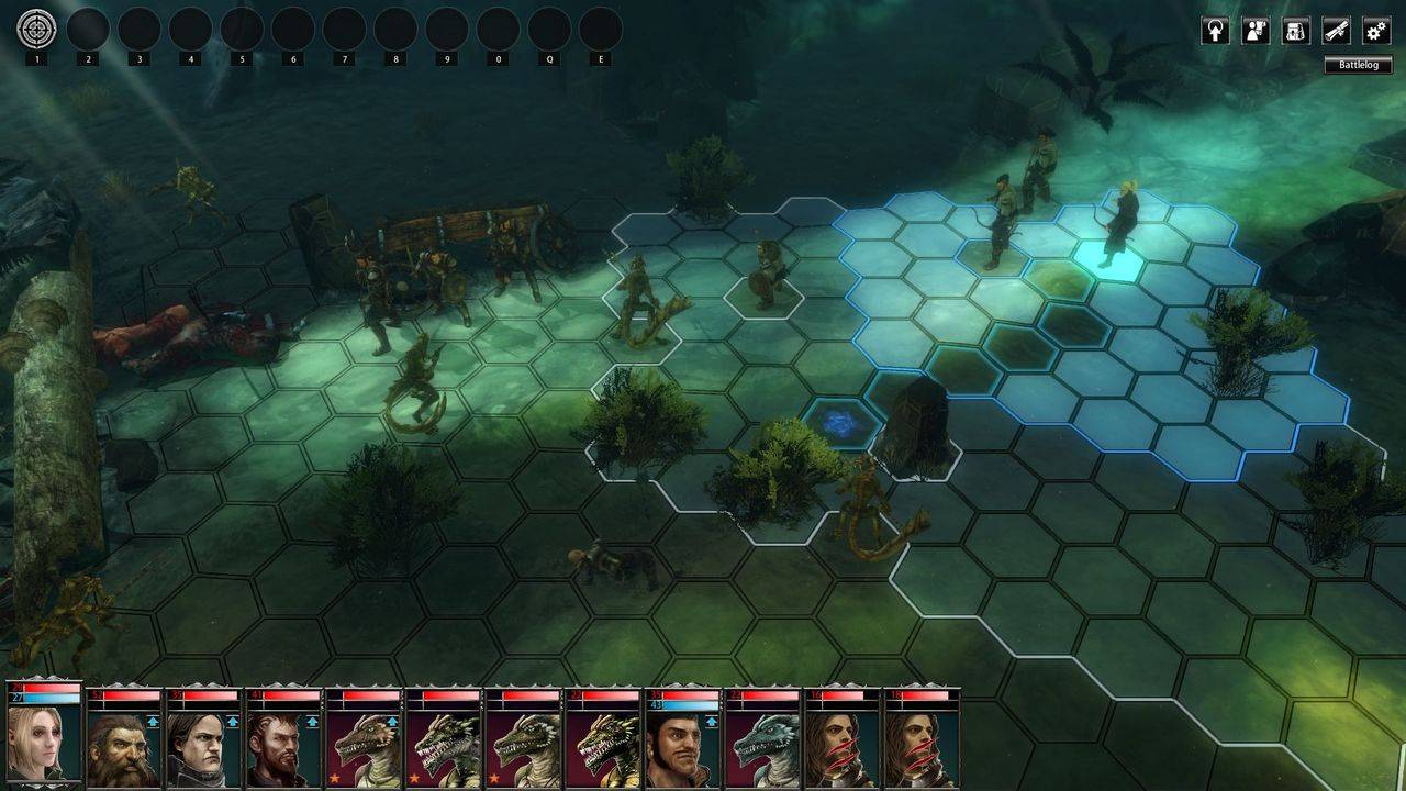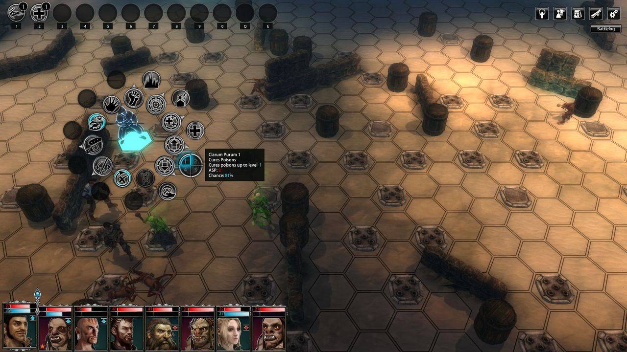 Et autant commencer par le sujet qui fâche : le taux d'échec – pitoyable – des actions. Que ce soient les sorts ou les attaques physiques, vos personnages débuteront avec des scores de réussite relativement faibles, ce qui aura pour conséquence de rater à peu près une action sur deux. Et même en faisant progresser leurs capacités pour obtenir des pourcentages de réussite supérieurs à 80%, vous aurez encore l'impression de rater la moitié des tentatives. Passons maintenant aux autres aspects des combats. Chaque bataille prend place sur un damier aux cases hexagonales (les déplacements se font donc selon 6 directions), sur des maps plus ou moins grandes. Les lieux permettent certaines interactions, que l'on peut surligner en appuyant sur une touche (briser des caisses, ouvrir des coffres, activer des interrupteurs...). Il sont aussi parfois parsemés de pièges ou autres éléments spécifiques au lieu (comme par exemple des trous dans les marais, des ruches d'abeilles dans les arbres, des stalactites qui tombent du plafond d'une grotte...) qui viendront interférer en bien ou en mal avec le combat. Certains éléments se déclencheront si un personnage passe à portée, et d'autres devront être activés (comme des marais qui s'enflamment au contact du feu). Savoir utiliser les éléments du décor à son avantage est l'une des clés du succès. Car il est inutile de vous le cacher : les combats sont parfois difficiles (surtout au début), et peuvent vite tourner au désastre. Le côté tactique du jeu a donc une place primordiale, et ça tombe bien puisqu'il s'agit d'un T-RPG ! Les combats sont divisés en tours, durant lesquels chaque personnage (allié ou ennemi) peut effectuer des déplacements et une action. L'ordre des actions (matérialisé par une barre d'initiative en bas de l'écran) est déterminé par la vitesse de chacun, mais aussi par les actions des tours précédents, et évidemment les conditions des personnages. Un point intéressant aussi, est de pouvoir retarder le tour d'action de vos combattants. Vous pouvez par exemple commencer un déplacement, et puis choisir de "mettre en pause" ce personnage (en appuyant sur la barre d'espace), qui finira son déplacement et éventuellement son action après tout le monde. Cet avantage stratégique permet par exemple de laisser les ennemis approcher avant de les attaquer. Il est également possible de terminer le tour d'un personnage sans effectuer d'action, en appuyant simplement sur la touche Entrée. Les déplacements peuvent se faire sur 2 distances : la première, matérialisée par des carreaux bleus, est assez réduite mais permet d'enchaîner avec une action (attaque, sort, utilisation d'objet...) ; la seconde, matérialisée par des carreaux blancs, s'étend bien au-delà de la zone bleue, mais ne permet pas d'enchaîner avec une action durant le même tour (votre personnage ayant perdu trop de temps dans le déplacement). Vous pouvez effectuer les déplacements en une seule fois, ou en plusieurs fois. Vous pouvez même tracer le chemin que doit emprunter le personnage (pour éviter les pièges par exemple). Néanmoins, dès qu'un personnage effectue une action, son tour se termine (même s'il lui restait du déplacement). Toutes les actions se font à travers un menu circulaire (ou éventuellement une barre de raccourcis dans laquelle vous pouvez placer vos actions favorites). Pour ouvrir ce menu, vous pouvez soit faire un clic droit sur le personnage actif, soit sur une éventuelle cible. Mais parfois, même si vous cliquez sur une cible et que le menu s'affiche, il vous sera impossible de sélectionner une action pour cause d'obstacles entre le personnage et la cible. Il faut donc généralement mieux ouvrir le menu sur le combattant actif, sélectionner une action, et puis sélectionner une cible parmi celles qui sont accessibles (alors surlignées en orange). Chaque action de sort ou d'attaque possède un taux de réussite. Le premier (sort) dépend surtout des compétences du lanceur (mais parfois de la cible, pour les sorts de debuff par exemple), le second (attaque) dépend de l'attaquant mais aussi de la cible. Si votre personnage possède les connaissances requises, il pourra « scanner » sa cible pour avoir un taux de réussite précis. Dans le cas contraire, vous ne pourrez que vous fier à votre instinct. Bien que très tactiques, les combats n'ont pas un rythme terrible. Chaque action prend trois plombes, les ennemis sont mous, et déplacer la caméra sur la carte est une véritable épreuve de patience, surtout qu'elle ne se recentre pas automatiquement sur le personnage actif qui débute son tour. Il est d'ailleurs uniquement possible de bouger la caméra latéralement (de gauche à droite), ou de changer l'inclinaison (d'une vue latérale jusqu'à une vue de dessus). Pour compenser cette monotonie des affrontements, certains défis vous seront parfois lancés : atteindre un endroit précis en X tours pour pouvoir sauver un personnage, survivre à une vague d'ennemis pendant X tours tout en protégeant des civils, enchaîner des combats sans intervalle de repos... De quoi mettre vos neurones et vos nerfs à rude épreuve ! Vos personnages gagneront quelques PA après la fin du combat, et non pas après chaque ennemi vaincu. L'expérience gagnée est prédéfinie, et généralement très limitée, malgré le nombre important d'adversaires. En résumé : Ambiance, ambiance... Blackguards ne vous éblouira sans doute pas par une réalisation 3D à couper le souffle, mais en revanche il faut bien lui accorder une ambiance assez unique. Les graphismes vont de la fausse 2D pour les villes et la carte du monde, à la 3D pour quelques scènes importantes, en passant par la 3D isométrique des combats. Mais le tout reste uniforme et constant, plongé dans une atmosphère mystérieusement sombre. Quant aux musiques qui l'accompagnent, elles sont souvent discrètes mais enveloppent très bien l'