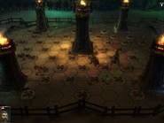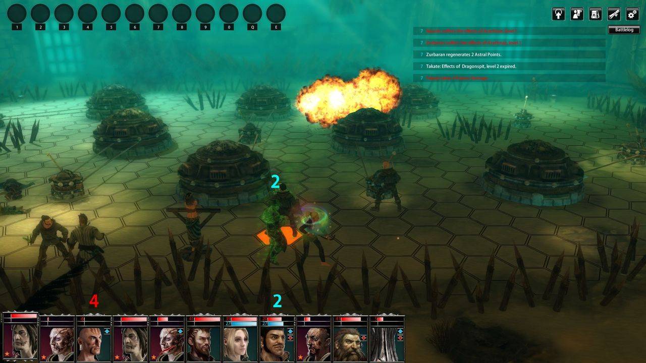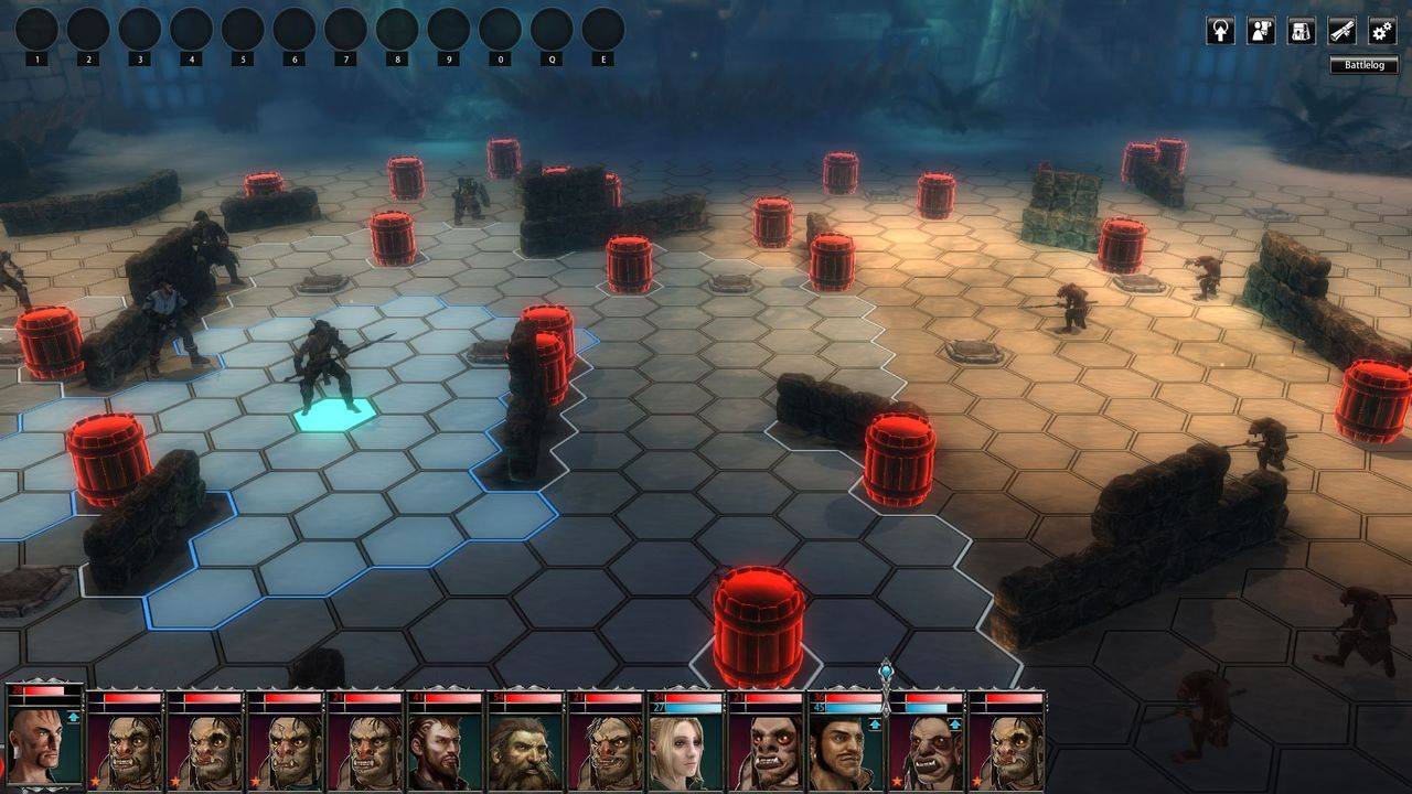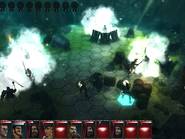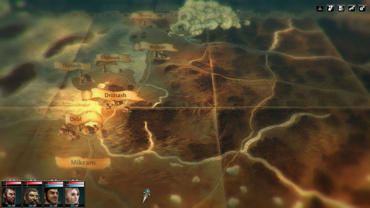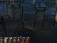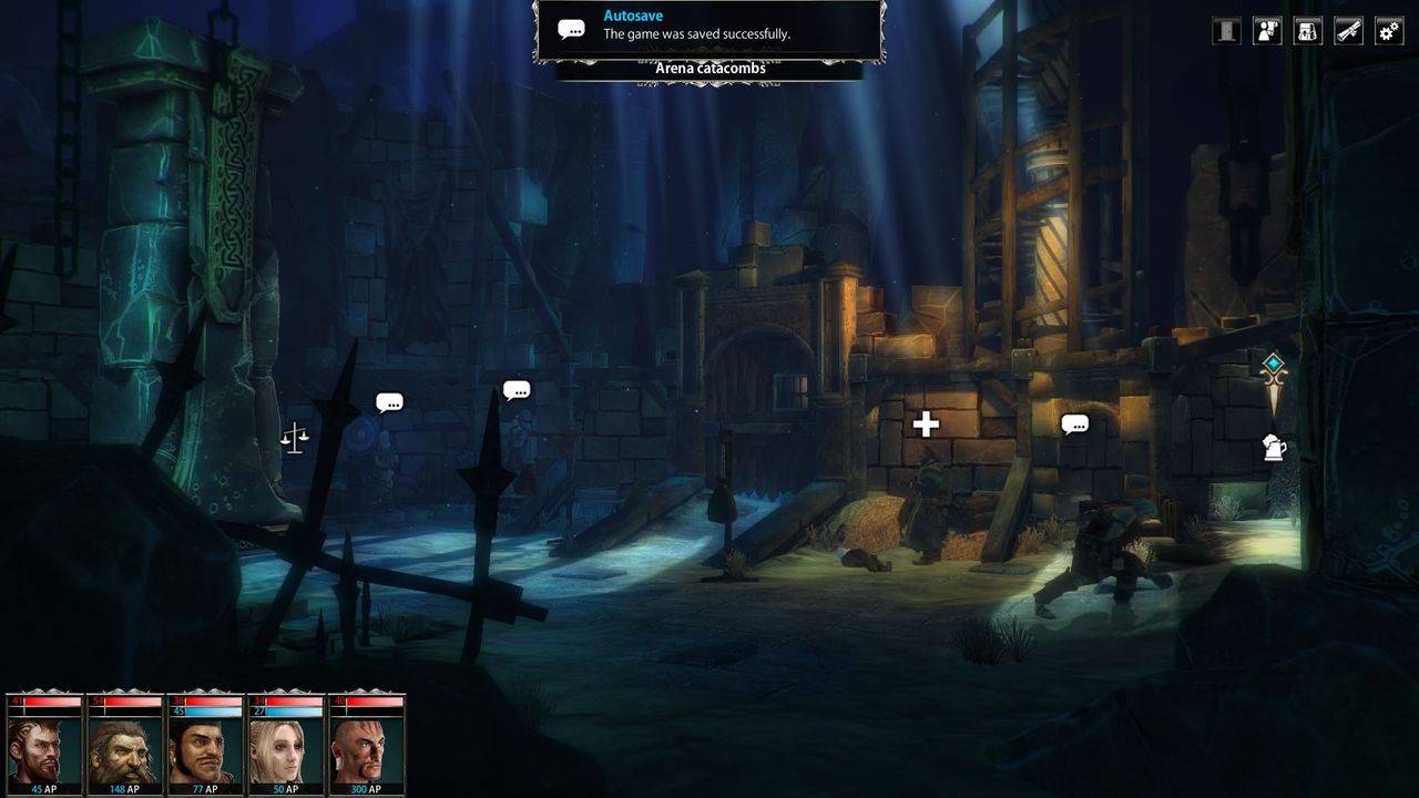 Et autant commencer par le sujet qui fâche : le taux d'échec – pitoyable – des actions. Que ce soient les sorts ou les attaques physiques, vos personnages débuteront avec des scores de réussite relativement faibles, ce qui aura pour conséquence de rater à peu près une action sur deux. Et même en faisant progresser leurs capacités pour obtenir des pourcentages de réussite supérieurs à 80%, vous aurez encore l'impression de rater la moitié des tentatives. Passons maintenant aux autres aspects des combats. Chaque bataille prend place sur un damier aux cases hexagonales (les déplacements se font donc selon 6 directions), sur des maps plus ou moins grandes. Les lieux permettent certaines interactions, que l'on peut surligner en appuyant sur une touche (briser des caisses, ouvrir des coffres, activer des interrupteurs...). Il sont aussi parfois parsemés de pièges ou autres éléments spécifiques au lieu (comme par exemple des trous dans les marais, des ruches d'abeilles dans les arbres, des stalactites qui tombent du plafond d'une grotte...) qui viendront interférer en bien ou en mal avec le combat. Certains éléments se déclencheront si un personnage passe à portée, et d'autres devront être activés (comme des marais qui s'enflamment au contact du feu). Savoir utiliser les éléments du décor à son avantage est l'une des clés du succès. Car il est inutile de vous le cacher : les combats sont parfois difficiles (surtout au début), et peuvent vite tourner au désastre. Le côté tactique du jeu a donc une place primordiale, et ça tombe bien puisqu'il s'agit d'un T-RPG ! Les combats sont divisés en tours, durant lesquels chaque personnage (allié ou ennemi) peut effectuer des déplacements et une action. L'ordre des actions (matérialisé par une barre d'initiative en bas de l'écran) est déterminé par la vitesse de chacun, mais aussi par les actions des tours précédents, et évidemment les conditions des personnages. Un point intéressant aussi, est de pouvoir retarder le tour d'action de vos combattants. Vous pouvez par exemple commencer un déplacement, et puis choisir de "mettre en pause" ce personnage (en appuyant sur la barre d'espace), qui finira son déplacement et éventuellement son action après tout le monde. Cet avantage stratégique permet par exemple de laisser les ennemis approcher avant de les attaquer. Il est également possible de terminer le tour d'un personnage sans effectuer d'action, en appuyant simplement sur la touche Entrée. Les déplacements peuvent se faire sur 2 distances : la première, matérialisée par des carreaux bleus, est assez réduite mais permet d'enchaîner avec une action (attaque, sort, utilisation d'objet...) ; la seconde, matérialisée par des carreaux blancs, s'étend bien au-delà de la zone bleue, mais ne permet pas d'enchaîner avec une action durant le même tour (votre personnage ayant perdu trop de temps dans le déplacement). Vous pouvez effectuer les déplacements en une seule fois, ou en plusieurs fois. Vous pouvez même tracer le chemin que doit emprunter le personnage (pour éviter les pièges par exemple). Néanmoins, dès qu'un personnage effectue une action, son tour se termine (même s'il lui restait du déplacement). Toutes les actions se font à travers un menu circulaire (ou éventuellement une barre de raccourcis dans laquelle vous pouvez placer vos actions favorites). Pour ouvrir ce menu, vous pouvez soit faire un clic droit sur le personnage actif, soit sur une éventuelle cible. Mais parfois, même si vous cliquez sur une cible et que le menu s'affiche, il vous sera impossible de sélectionner une action pour cause d'obstacles entre le personnage et la cible. Il faut donc généralement mieux ouvrir le menu sur le combattant actif, sélectionner une action, et puis sélectionner une cible parmi celles qui sont accessibles (alors surlignées en orange). Chaque action de sort ou d'attaque possède un taux de réussite. Le premier (sort) dépend surtout des compétences du lanceur (mais parfois de la cible, pour les sorts de debuff par exemple), le second (attaque) dépend de l'attaquant mais aussi de la cible. Si votre personnage possède les connaissances requises, il pourra « scanner » sa cible pour avoir un taux de réussite précis. Dans le cas contraire, vous ne pourrez que vous fier à votre instinct. Bien que très tactiques, les combats n'ont pas un rythme terrible. Chaque action prend trois plombes, les ennemis sont mous, et déplacer la caméra sur la carte est une véritable épreuve de patience, surtout qu'elle ne se recentre pas automatiquement sur le personnage actif qui débute son tour. Il est d'ailleurs uniquement possible de bouger la caméra latéralement (de gauche à droite), ou de changer l'inclinaison (d'une vue latérale jusqu'à une vue de dessus). Pour compenser cette monotonie des affrontements, certains défis vous seront parfois lancés : atteindre un endroit précis en X tours pour pouvoir sauver un personnage, survivre à une vague d'ennemis pendant X tours tout en protégeant des civils, enchaîner des combats sans intervalle de repos... De quoi mettre vos neurones et vos nerfs à rude épreuve ! Vos personnages gagneront quelques PA après la fin du combat, et non pas après chaque ennemi vaincu. L'expérience gagnée est prédéfinie, et généralement très limitée, malgré le nombre important d'adversaires. En résumé : Ambiance, ambiance... Blackguards ne vous éblouira sans doute pas par une réalisation 3D à couper le souffle, mais en revanche il faut bien lui accorder une ambiance assez unique. Les graphismes vont de la fausse 2D pour les villes et la carte du monde, à la 3D pour quelques scènes importantes, en passant par la 3D isométrique des combats. Mais le tout reste uniforme et constant, plongé dans une atmosphère mystérieusement sombre. Quant aux musiques qui l'accompagnent, elles sont souvent discrètes mais enveloppent très bien l'