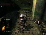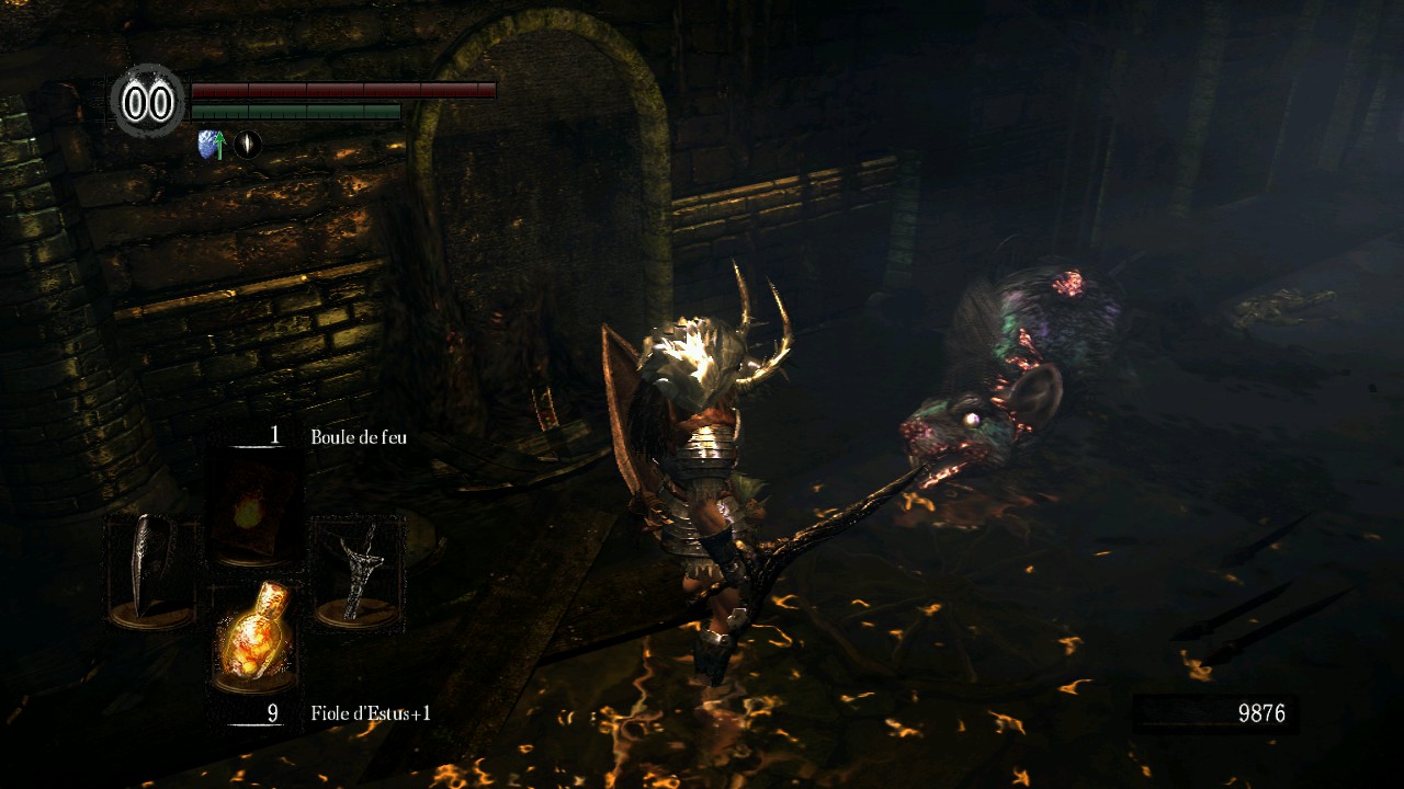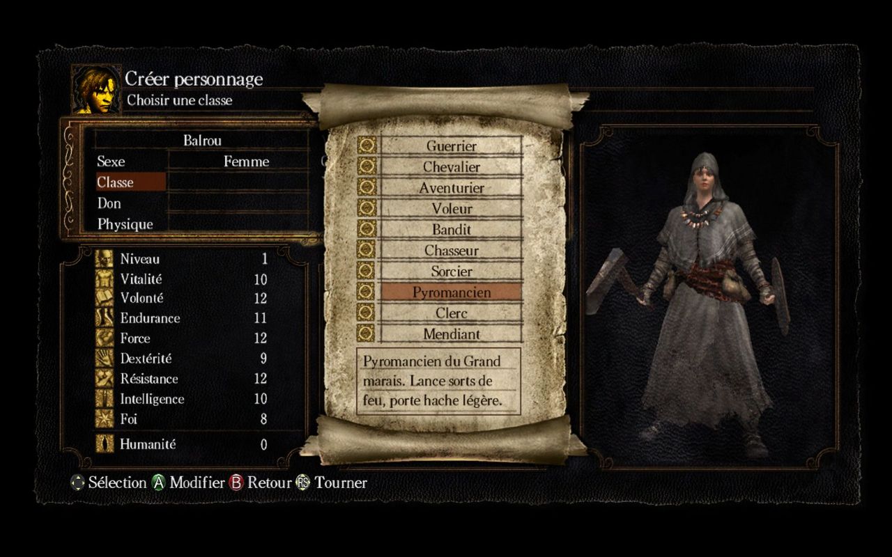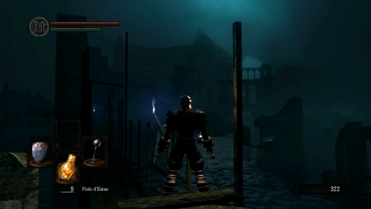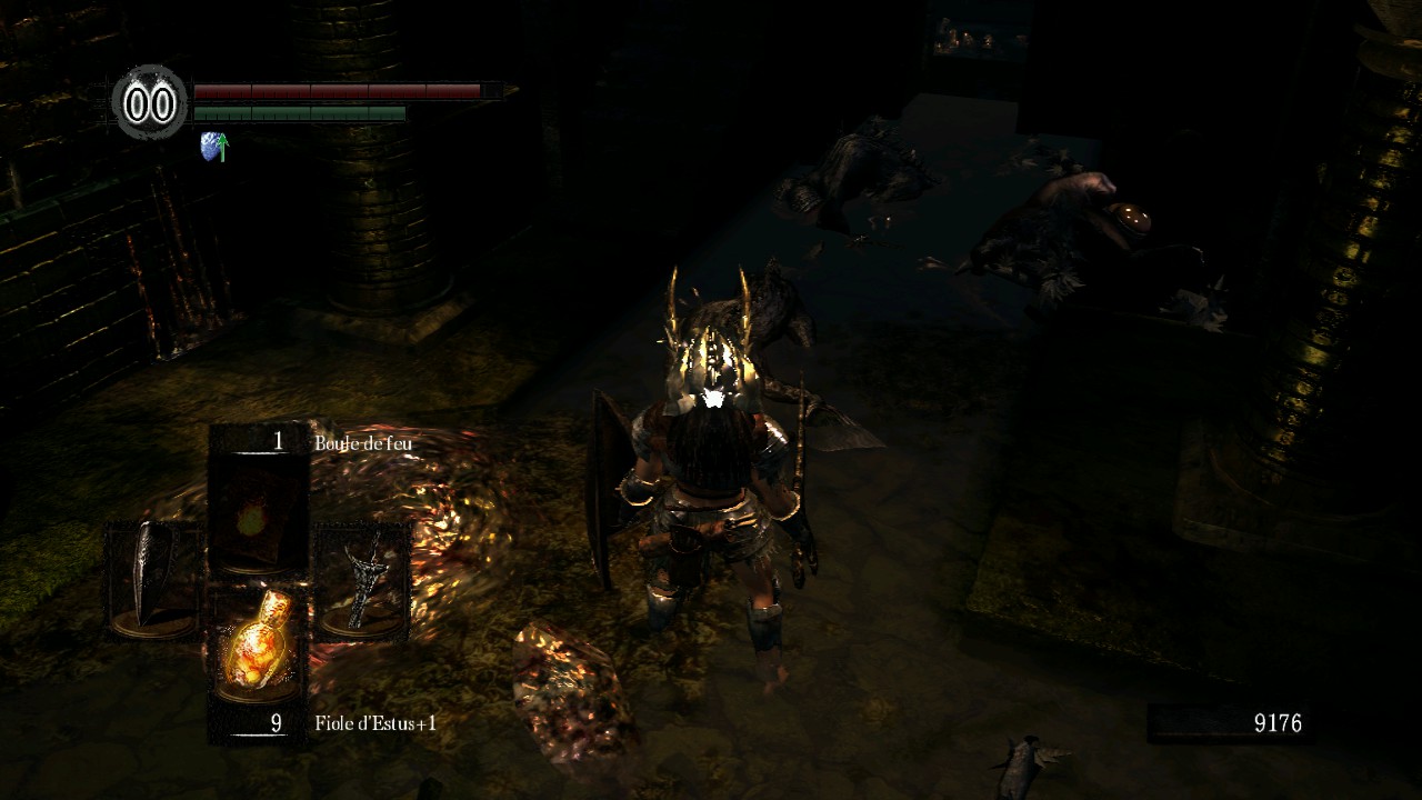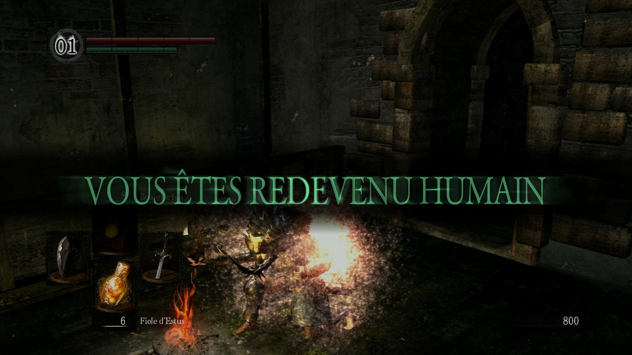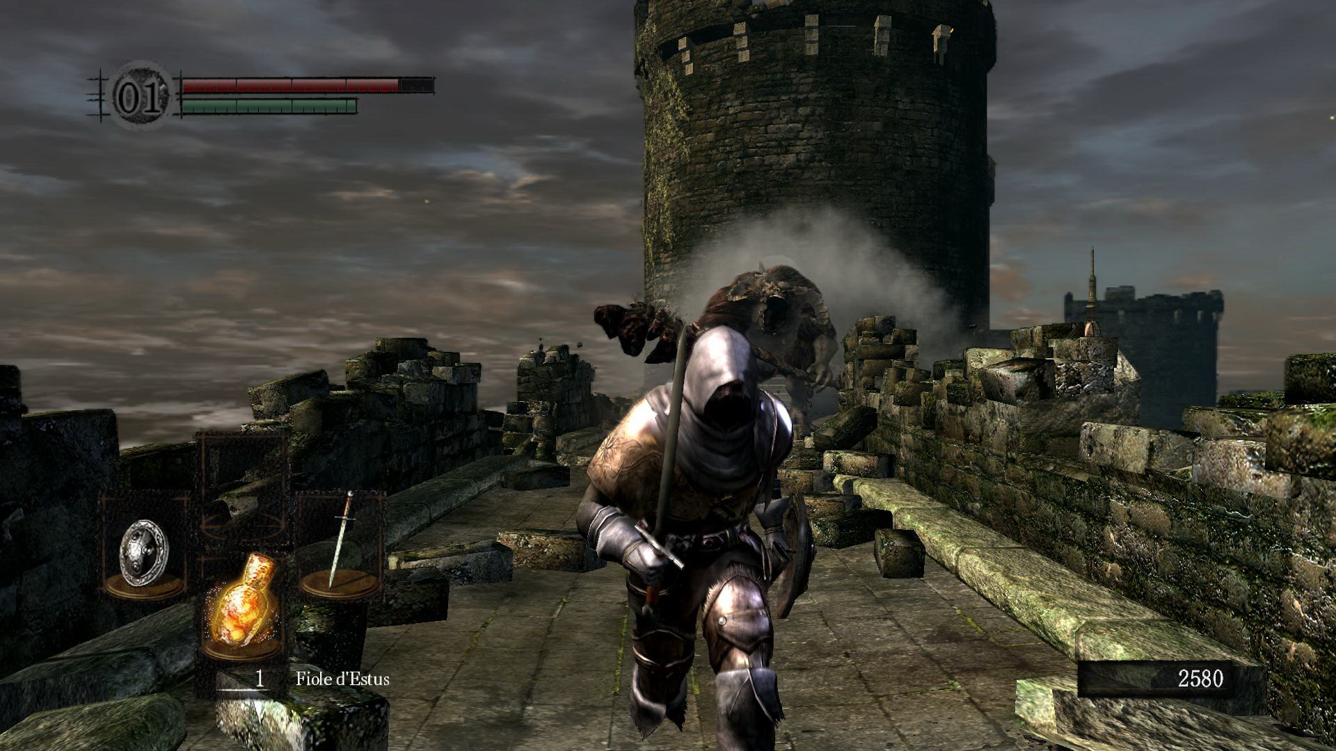 Après un premier épisode – Demon's Souls – exclusif à la PS3 en 2010, le studio From Software récidive avec une suite spirituelle disponible cette fois-ci sur les consoles de salon de dernière génération. Toujours aussi sadique dans sa difficulté, le jeu a été accueilli par une communauté exigeante et capable de s’adapter à cette saga atypique. La rédaction du site ayant déjà testé la version originale du RPG, nous essayerons au maximum d’éviter de répéter les mêmes informations, quitte à passer sous silence certains points secondaires pour se concentrer sur l’essence même du jeu et les nouveautés de cette version PC. Histoire et background Dark Soul débute sur la présentation de l’univers dans lequel va évoluer le joueur, ainsi que sa mythologie, à la fois dense et floue : C’est dans ce contexte plutôt morose que le joueur va incarner un mort-vivant qui a été parqué comme de nombreux autres dans une sorte de refuge-prison... Ces quelques informations seront les seules que vous aurez au début de l’aventure dans laquelle vous êtes propulsé, sans trop en comprendre les tenants et les aboutissants. Il vous faudra grappiller miette par miette d’autres informations pour mieux comprendre le monde qui vous entoure. Durant la partie, l’aspect narration passera cependant souvent au second plan, le joueur lambda pouvant s’il le souhaite simplement aller d’un point A à un point B pour remplir des objectifs que vous suggèrent les rares PNJ que vous rencontrez durant votre quête. Gameplay Une difficulté au rendez-vous Si Demon's Souls avait pour réputation d’être un jeu difficile, son petit frère Dark Souls n’est pas en reste et affiche le même niveau d’exigence pour défier le joueur assez courageux pour s’y essayer. Le jeu ne laisse en effet que peu de marge de manœuvre au joueur qui aura 1000 occasions de mourir, que ce soit à causes des pièges ou des hordes d’ennemis. Votre personnage passera les premières heures de son existence à mordre la poussière. Tout un arsenal pour se défendre Pourtant, le joueur aura à sa disposition un grand nombre d’armes et de magies pour s'acquitter de sa quête. Autant le dire tout de suite, le jeu ne vous permettra pas de créer un personnage à la fois polyvalent et efficace. Il faudra faire un choix quant à la façon de jouer : serez-vous plutôt un tank, lourd et puissant ou un guerrier agile qui harcèle les adversaires ? Maîtriserez-vous la puissance du feu ou la magie sacrée ? Autant de choix dont vous devrez vous préoccuper dès le début de la partie. En effet, les différents styles de combat ayant des pré-requis de statistiques (cf : 1er test de Dark Souls), il est plus que recommandé de fouiller quelques forums à la recherche d’un build ou deux, d’autant plus que les niveaux (synonymes de stats bonus) sont longs et durs à obtenir. L’écran de création du personnage permet également de choisir quelques éléments secondaires : le look du héros (que l’on ne verra au final que très rarement - cf. partie “Mort et récompense : Vae Victis” ci-dessous), un objet de départ bonus, et sa classe (qui impacte les stats et l’équipement de départ du héros). Ce choix n’est cependant pas aussi bloquant qu’il n’y parait. Il est en effet possible d’orienter ensuite son personnage comme on le souhaite, un voleur pouvant par exemple très bien apprendre la sorcellerie ou s’équiper d’une armure lourde. Une IA perfectible mais délicieusement sadique Dans le camp d’en face, les monstres n’ont pas eu le droit à une intelligence artificielle très développée : leur comportement est extrêmement scripté. Le monstre lambda ne prendra d’ailleurs jamais en compte les autres créatures qui l’entourent pour préparer une stratégie basée sur le surnombre. On passera donc notre temps à attirer les ennemis un par un dans un coin tranquille, hors de portée du champ de vision des autres, afin de l’éliminer sans risque. Heureusement pour l’intérêt du titre, les développeurs ont compensé ce manque d’intelligence (assumé ? le jeu aurait été encore plus dur sinon) par une idée sadique mais géniale : les embuscades ! Mort et récompense : Vae Victis Le fait que votre héros soit un mort-vivant le rend potentiellement immortel d’un point de vue purement « roleplay ». Cette caractéristique se retrouve dans le gameplay par le fait que le Game Over n’existe pas vraiment. Cette « mort » signifie la perte de toutes les âmes non dépensées, des points d’humanité et de son éventuelle forme humaine (retour à l’état de carcasse). Cette perte n’est cependant pas définitive, et il est possible de récupérer l’expérience et l’humanité en retournant sur le lieu de sa mort. Frustrant, surtout lorsque l’on sait l’importance capitale de ces 2 types de points : Ambiance et bande-son Un jeu sombre et loin des règles habituelles de déontologie Si tout le monde s’accorde sur un point lorsqu'il est question de Dark Soul, c’est bien sur son ambiance extraordinaire. Le jeu nous plonge dans un univers de Dark Fantasy à la fois morne et glauque, qui semble à deux doigts de la fin du monde. Ce sentiment est très bien retranscrit dans l’attitude, les dialogues et les doublages des rares personnages « amicaux » que l’on a l’occasion de rencontrer/sauver. Vous aurez l’occasion de croiser des PNJ au cours de votre aventure, soit dans les zones de repos, soit au milieu d’un donjon (souvent dans de mauvaises postures). Une fois sauvés, ils vous donneront accès à de nombreuses informations, ressources matérielles ou enseignements magiques. Cependant, contrairement aux jeux de rôle classiques, ces personnages, bien que de votre côté, ne sont pas à l’abri de votre colère/folie ! Il vous est ainsi tout à fait possible de les tuer pour récupérer quelques objets, avec les conséquences qui vont avec : ceux