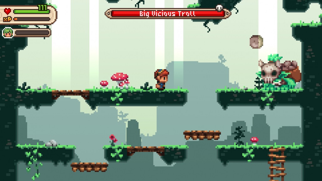 Certaines personnes ont su apprécier le premier Evoland, malgré sa très faible durée de vie (pour un RPG), et le fait qu'il n'avait aucune originalité au niveau de son « scénario » et de ses personnages, reprenant tout de Final Fantasy VII avec un mélange de Zelda. L'annonce d'un Evoland 2 était donc une bonne nouvelle pour ces personnes. On peut tout de suite vous l'annoncer : ce second épisode est largement au-dessus du premier Evoland, aucun doute là-dessus. Est-il donc au final un très bon jeu ? Certainement pas. Mais nous allons voir tout cela en détail. Héros amnésique un jour, héros amnésique toujours... Vous êtes un jeune garçon amnésique, retrouvé dans la forêt, et vous vous réveillez en faisant la connaissance de Fina, la fille de l'homme qui vous a trouvé. Peu après votre réveil, vous allez dans ladite forêt à la recherche d'indices sur votre identité et êtes très rapidement rejoint par Fina. Mais vous tombez sur des démons qui veulent réveiller le gardien de la forêt. Après avoir vaincu le gardien, vous êtes téléporté dans le passé à cause d'un Magilith, une sorte d'autel provenant de l'ancienne civilisation disparue, les Magi. Ainsi commence votre aventure : chercher qui vous êtes, pourquoi et comment vous êtes revenu dans le passé, et voir ce qui se passe réellement dans le monde... Le scénario d'Evoland 2 n'a rien de très original. Ce sont des choses déjà vu X fois. Le héros amnésique, les voyages dans le passé, le présent, le futur, la civilisation disparue... mais au final l’histoire se laisse suivre agréablement. Il est certain qu'en le comparant au premier épisode, il n'y a pas photo, c'est largement meilleur. Le jeu ne manque pas non plus d'humour, et on trouvera tout un tas de clins d'œil et de caméos de personnages de jeux vidéo, de manga, voire même d'éléments de notre monde réel (Mc Donald par exemple). Il faut néanmoins souligner une chose : le jeu porte peut-être un peu moins bien son nom que pour le premier épisode. Autant le premier Evoland nous faisait réellement voir une évolution du jeu vidéo, autant il n'y a plus rien de tout cela dans Evoland 2. Certes, d'autres styles de jeux ont été ajoutés dans l'aventure (nous y reviendrons plus tard), mais il n'y a plus une évolution comme pour le premier opus. Ce n'est pas si dérangeant, car ce qui est plutôt bien fait, c'est qu'on commence le jeu dans le présent, avec des graphismes du niveau d'une GBA, puis on retourne dans le passé pour arriver à des graphismes GameBoy Color, et enfin vient le futur, avec des graphismes en 3D. C'est peut-être la seule chose qui montre « l'évolution » en soit. Des jeux dans un jeu Le gameplay d'Evoland 2 se base principalement sur les anciens Zelda. Comprenez par là (et vu le style graphique également) que vous allez vous retrouver dans des donjons et avancer tout simplement en tuant des monstres avec votre épée, couper des buissons ou résoudre encore quelques énigmes. Vos compagnons « s'utilisent » comme une attaque chargée. En gros, il faut maintenir la touche d'attaque et votre compagnon apparaît pour exécuter son attaque. Vos alliés servent également à avancer dans les différentes zones, en détruisant par exemple des rochers ou en créant des plateformes de glace sur l'eau. L'autre bon point à signaler, c'est que le personnage dans Evoland 2 garde son niveau d'expérience tout au long du jeu, contrairement au premier épisode qui changeait de gameplay régulièrement, avec tantôt du tour par tour, tantôt un gameplay à la Zelda, annulant complètement l’intérêt du leveling et donc du niveau d'expérience. Donc sa vie, son attaque et sa défense sont conservées en permanence, y compris pour les autres styles de jeu. Et justement, parlons de ces autres styles de jeu, qui sont pour moi un gros point noir. Ceux ayant visionné des trailers ou différentes images savent déjà de quoi il retourne. Le premier changement de gameplay se fera sur une vue en 2D (comme un Metroidvania) lorsqu’on arrive dans des égouts - bien évidemment remplis de lave, de piques et d'un liquide vert meurtrier. Ce changement de gameplay n'est pas vraiment dérangeant, et se laisse jouer sans trop de soucis. Le problème est qu'il faut aussi s'habituer aux sauts, et qu'Evoland 2 n'est évidemment pas un jeu de plateforme (loin de là). Dans les jeux de plateforme, on trouve généralement à un moment, des plateformes qui s'écroulent sous les pieds du joueur après quelques petites secondes. Evoland 2 fait la même chose, sauf que ces plateformes s'écroulent directement dès qu'on y a posé le pied (n’espérez pas souffler une fois dessus) et qu'il faudra parfois faire un chemin entier comme ça. Alors, oui, on y arrive, mais ne vous étonnez pas si vous mourrez à quelques reprises. Ces phases de gameplay restent malgré tout dans l'esprit du jeu, comprenez par là qu'il y aura quand même des ennemis sur notre chemin, on pourra donc gagner de l'expérience ou ouvrir des coffres. Maintenant abordons les autres styles de jeu qui n'ont absolument rien à voir avec un RPG. Peu de temps après cette phase on sera confronté à un boss, comme dans un jeu de combat. Celui-ci se calque en l’occurrence sur Street Fighter, car le héros se présente comme Ryu et l’adversaire comme Akuma (ou Gouki). Je ne sais absolument pas si les coups s'exécutent exactement de la même manière (je n'y connais rien), mais on en sort de temps en temps, y compris en faisant n'importe quoi. Mais, encore une fois, cette phase de jeu n'a strictement aucun intérêt, en plus d'être un combat très très mou. Autre style de jeu : la course sur les toits de maison ! Je sais parfaitement qu'il existe des jeux dans ce genre, où il faut courir sur des toits d'immeubles et aller le plus loin possible sans mourir pour obtenir un certain score. Mais n'étant ni un spécialiste ni un adepte de ces jeux-là, je ne pourrais 