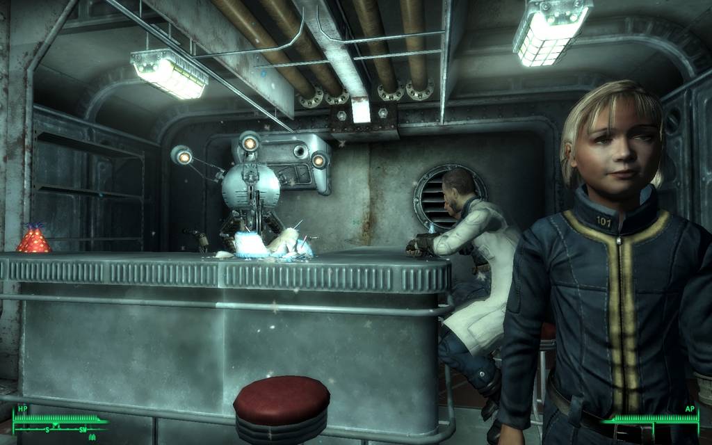 C’est dans ce contexte que l’on voit le personnage principal grandir jusqu’à ses 19 ans. Un passage qui permet de créer et forger celui-ci en prévision des aventures qui l’attendent. Celles-ci ne tarderont pas avec la fuite du père de notre héros/héroïne en dehors de l’abri. Un événement qui va pousser notre personnage à fuir aussi afin de retrouver son géniteur et de comprendre ce qui l’a poussé à un tel acte. C’est ainsi que vont commencer nos pérégrinations dans ce qu’il reste de Washignton D.C. Donner vie au chaos