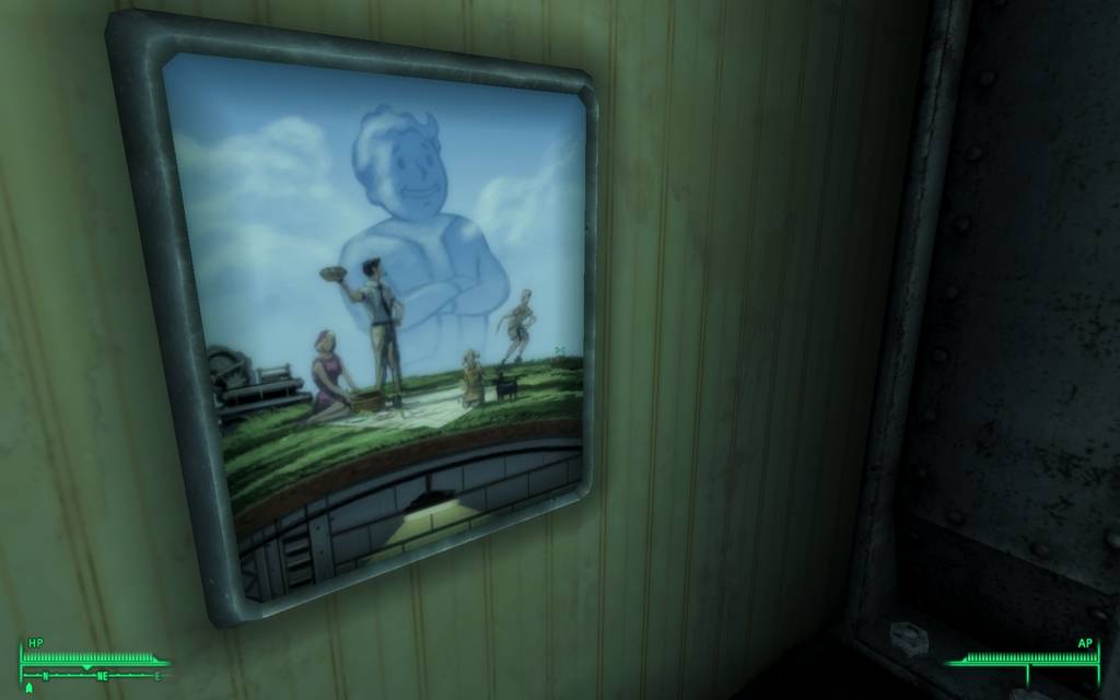 Et pour nous accompagner dans cette aventure, et en dehors des compagnons que l’on peut rencontrer, on peut compter sur une bande-son qui se prête à merveille avec l’univers du jeu. Elle renforce le côté immersif de certains lieux ou la grandeur des espaces en extérieurs, accentuant agréablement cette notion d’aventure et d’exploration. Et pour ceux qui voudraient quelque chose de plus distrayant, on peut compter sur deux radios, celle de l’Enclave avec ses musiques patriotiques et les messages du « Président des États-Unis » et GNR (Galaxy News Radio) et ses morceaux ressemblant à de vieux tubes des années 50 accompagnées des commentaires de Three Dogs qui relateront régulièrement nos aventures et leurs conséquences. Dépaysant et agréable.