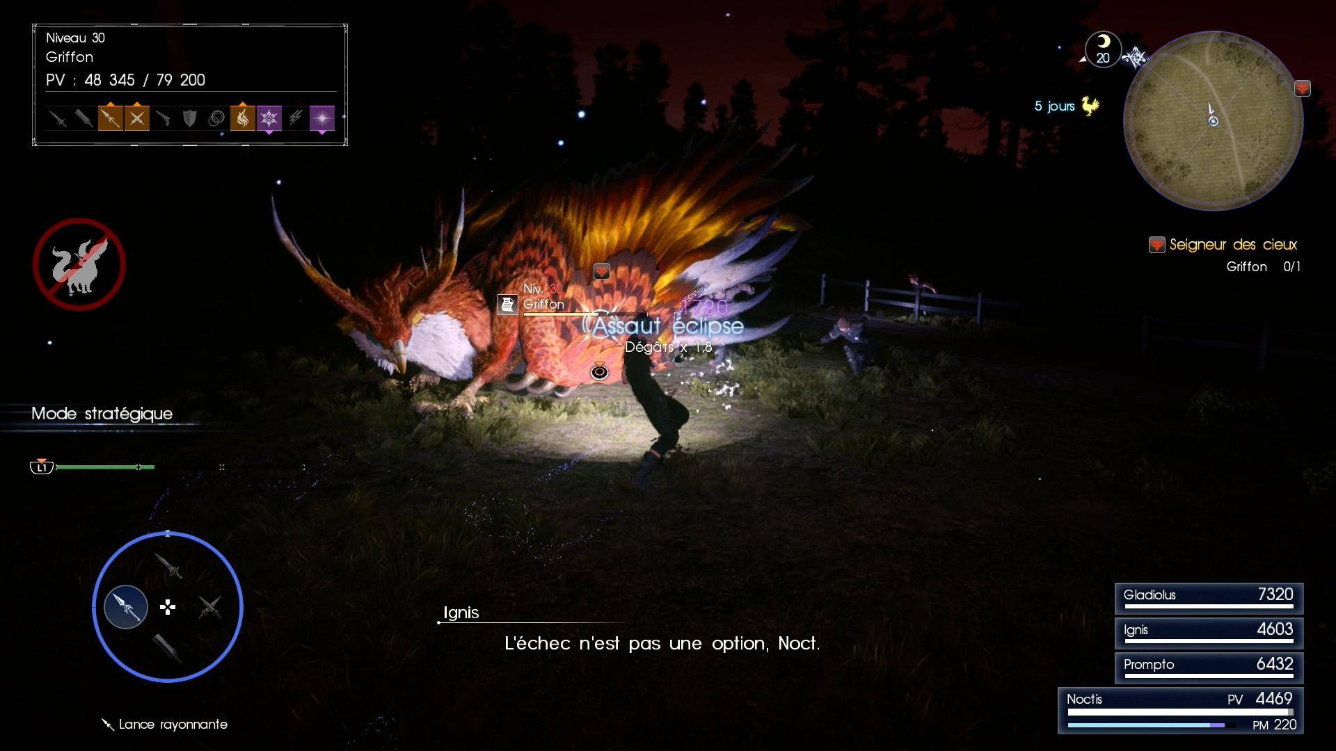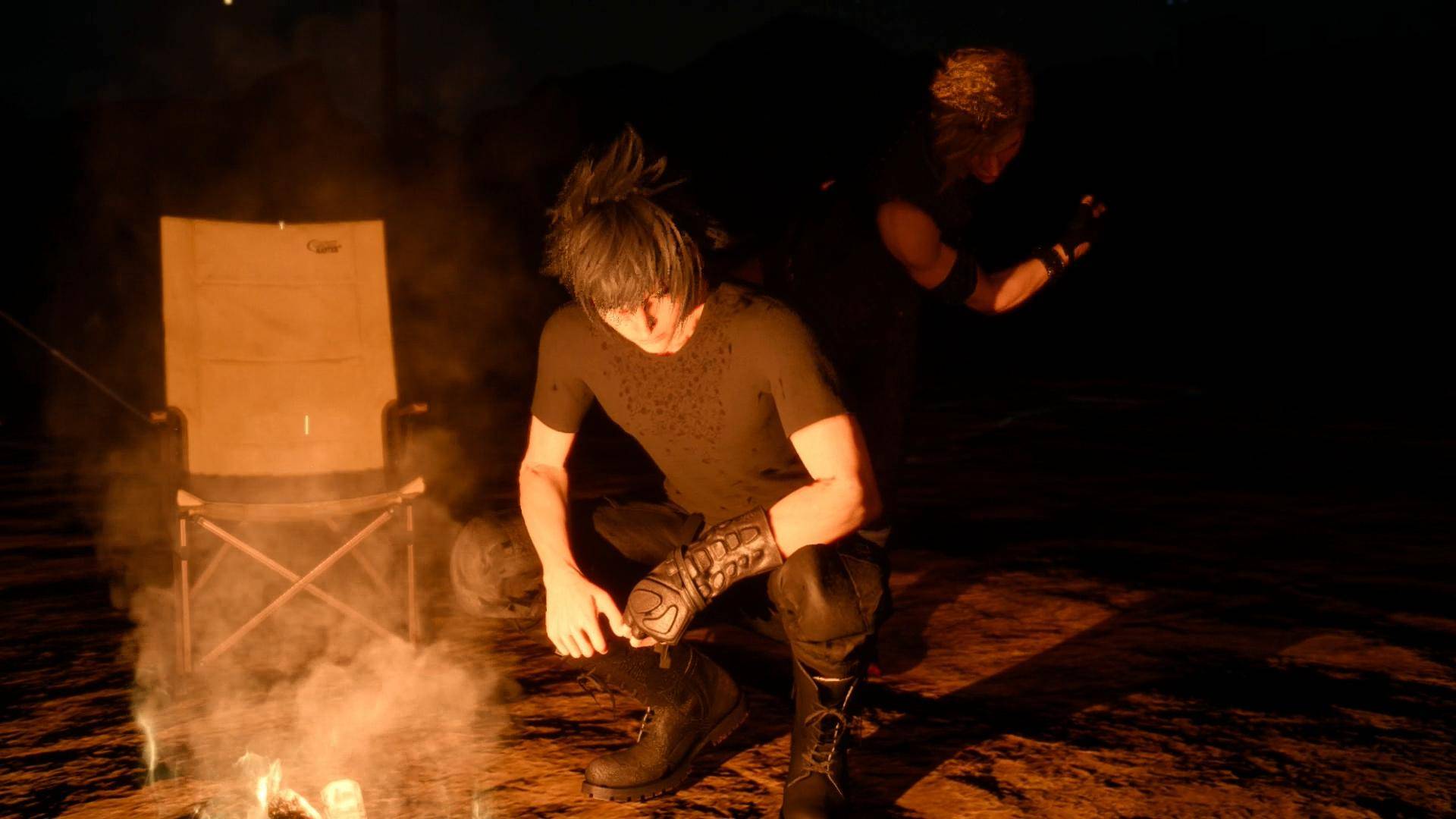 Le site bénéficie déjà d’une review détaillée, qui donne suffisamment d’éléments sur le jeu. Néanmoins, cet épisode de la série Final Fantasy est loin de faire l’unanimité, parmi le public mais aussi au sein de l’équipe du site. Cette seconde critique est donc destinée à donner le point de vue d’un autre rédacteur, qui a perçu le jeu différemment (et, il faut l’avouer, de façon un peu moins optimiste…). Elle ne re-détaille pas forcément tous les mécanismes du jeu, mais met l’accent sur les points les plus contestables ou notables. De même, la longue histoire du développement du jeu et les changements de direction associés ont parfois été utilisés comme justification de la déception finale. Autant on peut utiliser ça pour expliquer certains points, autant vouloir justifier les défauts avec ça serait déplacé. C’est donc ici le produit tel qu’il est que l’on juge, indépendamment de son histoire et des circonstances de sa création (tout du moins autant que possible). Car, finalement, c’est ce produit-là qui nous est livré et que paye le joueur, peu importe que le développement ait duré un ou dix ans. Une histoire de Bro en vacances Après l’introduction dramatique qu’offre le film Kingsglaive, le jeu, lui, s’ouvre sur une toute autre note : celle d’une vadrouille en voiture entre potes. Le contraste est assez brutal, et l’élan mature et sombre du film est aussitôt réduit en poussière. On comprend évidemment que nos héros ne soient pas informés tout de suite de ce qui se passe (quoi que, ils ont quand même des téléphones, on se demande à quoi ça leur sert…). Néanmoins, même après avoir appris que leur royaume est réduit en cendres, le côté “road trip en vacances” reprend le dessus et les voilà repartis pour aller pêcher, récolter des cailloux pour faire plaisir aux paysans du coin ou découper des pauvres herbivores pour en faire des soupes. Avec un peu de hauteur, l’histoire de fond n’est pas stupide, et pourrait même être intéressante. Le problème vient de la scénarisation du soft, qui reste très en surface et ne donnera pas la moindre dose d’excitation jusqu’à la fin. Le jeu est découpé en 15 chapitres, mais les 8 premiers sont simplement ridicules et ressemblent juste à une introduction. Après le chapitre 9, il y a comme un point de basculement dans le jeu, qui met le joueur sur des rails (littéralement) et le conduit tout droit jusqu’à la fin du jeu. Bien que cette seconde partie soit un peu plus intense au niveau du rythme, il ne faut pas s’attendre à de grosses surprises ou rebondissements. Le tout est très convenu et on sait dès le début où nous mènera le jeu. La durée des chapitres est aussi très irrégulière. Beaucoup ne prennent qu’une ou deux heures, et consistent simplement à accomplir une mission (souvent sans intérêt réel). Mais certains chapitres s’avèrent extrêmement longs et pénibles (et sans beaucoup plus d’intérêt). Cependant tout n’est pas mauvais. L’un des aspects les plus marquants est sans doute l’évolution des personnages qui se produit après le chapitre 9, et à la toute fin. C’est agréable de voir que les protagonistes peuvent changer (y compris physiquement) en étant soudain confrontés à la réalité de la situation. De même, pour peu que l’on accroche au côté romance, les quatre compagnons s’avèrent assez touchants dans leur périple. D’ailleurs le protagoniste féminin principal (Luna) n’est traité qu’en arrière-plan. C’est un parti pris qu’on aime ou pas (après tout, FFX-2 n’avait qu’une équipe féminine). Ce qui est dommage c’est que Luna est sensée avoir un rôle important dans l’histoire, et on aurait aimé en savoir plus sur elle ou prendre plus de temps pour la découvrir. Le jeu donne bel et bien un aperçu de ce qui aurait pu être une belle aventure. Mais la construction du scénario est mauvaise et ne fournit au joueur qu’un sentiment de frustration, attendant quelque chose d’excitant qui ne se produira pas. Le problème vient aussi de la conception du projet. C’est bien beau de nous balancer un film et des animes pour créer une sorte de “grande légende FFXV”, mais cela rend le jeu confus. Finalement, tout aurait dû se trouver dans le jeu dès le départ, et non pas en tant que supplément à regarder à côté. Par exemple, l’antagoniste du soft nous est clairement dévoilé dès le film. Le problème c’est que les héros ne sont pas censés le connaître au début de leur aventure. Du coup il y a comme une contradiction entre ce que le joueur sait du “méchant”, et la façon dont se comportent les héros face à lui. En soit c’est justifié, mais il aurait été simplement préférable de ne pas gâcher spoiler toute l’histoire en sortant un film à part. Au mieux, l’histoire du film aurait pu être intégrée dans le jeu, sous forme de flashbacks par exemple, pour que l’on découvre peu à peu (en même temps que les héros) ce qui s’était réellement passé. Ce côté confus vient sans doute du douloureux développement du jeu. Mais le résultat est bien là : l’aventure n’est vraiment pas à la hauteur des attentes. Et c’est très dommage car si le ton sérieux et mature de la seconde partie de l’aventure avait baigné l’ensemble du titre, on aurait sans doute eu affaire à une aventure beaucoup plus intéressante. Le chaotique essai du “monde ouvert” Le jeu nous propose une aventure dans un monde ouvert, où tout est à l’échelle réelle et sans transition entre les différents lieux. Malheureusement, en réalité il s’agit juste d’une région, le reste des lieux visités durant l’histoire étant accessibles par déplacements automatiques. Certes, on ne peut pas reprocher aux développeurs de ne pas avoir modélisé une planète entière, mais on n’en reste pas moins frustré par certaines limitation
