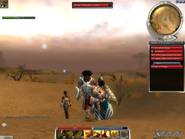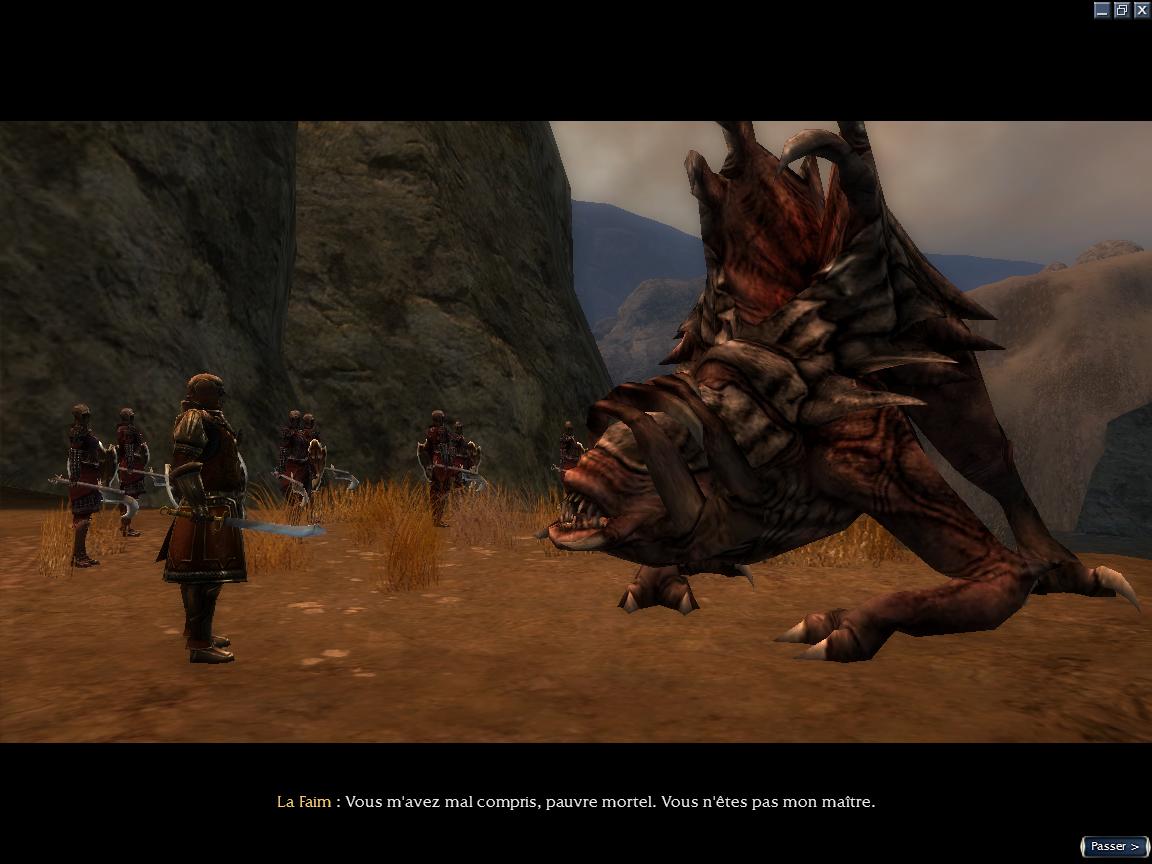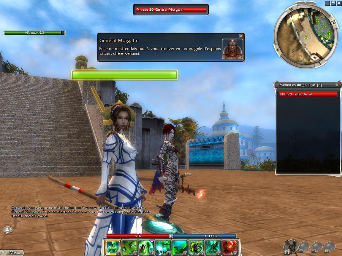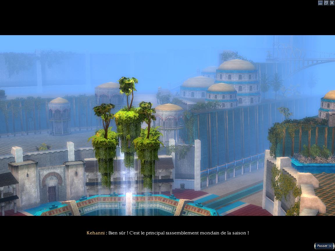 Nightfall est le 2ème add-on de la série Guild Wars. On ne peut toutefois parler d’add-on dans un sens car, comme Factions, Nightfall peut se jouer indépendamment de la version de base. Guild Wars est MMORPG, ou CORPG, c’est selon, bien que tout cela reste de la sémantique à mes yeux, et a conquis un large public grâce à un système de jeu relativement simple à prendre en main mais relativement bien fouillé et riche. Evidemment, le véritable avantage de Guild Wars est aussi son statut de jeu en ligne sans abonnement. Le joueur pouvait enfin s’essayer à ce genre sans devoir payer chaque mois et se retrouver obliger de jouer, un paradoxe selon moi. ArenatNet l’avait annoncé, de nombreuses « suites » sortiraient à un rythme d’environ 6 mois d’intervalles pour ainsi relancer constamment l’aventure et apporter quelques plus. C’est dans cet optique que peu après Faction, Nightfall vu le jour chez nous. Au pays des Mille et Une guildes : Si la première partie de Guild Wars, intitulée Prophecies, le jeu de base en somme, prenait pied dans un univers hétéroclite et varié, l’histoire et l’univers de Nightfall se présente sous un même aspect. Après avoir exploré le style asiatique avec Factions, Nightfall nous emmène cette fois-ci sur un continent aux influences africaines et proche orientale, Elona. Ce nom n’est pas inconnu aux joueurs qui se sont essayés à Prophecies. En effet, un lieu important, situé dans le Désert de Cristal où se déroulait l’intrigue, portait le nom de « Bief d’Elona ». Nightfall reprend donc comme base cet épisode de Prophecies et développe les éléments scénaristiques qui lui étaient rattachés, approfondissant les données et enrichissant le monde et background de Guild Wars. Istan Elona est donc un pays ensoleillé où se mêle savanes, déserts et palais tout droit sorti des contes des Mille et Une Nuits. On y distingue trois pays ou provinces distinctes. Pendant des siècles, ces contrées se sont entraidées pour faire prospérer tout Elona. A L’Ouest, sur une île, se trouve Istan, une province tournée vers la mer et le commerce maritime du fait de sa position géographique. Elle commerce notamment avec la Tyrie (Prophecies) et le Cantha (Factions). On comprend très vite que c’est là que commencera l’aventure pour nous, que l’on soit un nouveau joueur ou un ancien débarquant fraîchement avec ses personnages déjà bien boostés. Le pouvoir à Istan est une méritocratie. Seuls les meilleurs sont récompensés et obtiennent le pouvoir. Tout homme peut donc se faire une place à Istan s’il démontre ses capacités à faire progresser efficacement la province. Celle-ci est dirigée par Suhl l’ancien, le chef du conseil des anciens et Kormir, le Maréchal des Lanciers du Soleil et une Paragon de renom. Kournan A l’Est d’Istan, sur le continent, se situe Kournan. C’est de ce pays que vient le Grand Turai Ossa (le chevalier spectral de Prophecies) et ses descendants règnent sur cette province depuis des siècles. Son actuel souverain est Varesh Ossa, une brillante chef de guerre extrêmement appréciée et respectée de son peuple. C’est d’autant plus important que Kournan est une province résolument tournée vers la guerre et qui développe depuis des siècles une force militaire impressionnante. Le pays repose entièrement sur son agriculture et son gouvernement militaire ainsi que le profond attachement du peuple envers ces valeurs. Kournan abrite aussi une population de centaures entièrement acquis à leur service. Vabbi Au Nord/Est de Kournan se trouve Vabbi. C’est une ploutocratie gouvernée par des Princes Marchands choisis parmi les plus riches et plus puissants. Ils dirigent complètement le pays malgré des apparents signes de démocratie. C’est un pays extrêmement riche mais qui passe plus ses dépenses dans les fêtes et les spectacles que les forces militaires. Le pays n’en est pas dénué, loin de là, mais il compte essentiellement sur l’aide de Kournan dans le domaine, chacun jouant de ses avantages sur l’autre. C’est un peu une vie de cours pour les Princes Marchands où l’étiquette possède une importance primordiale dans les relations ou la diplomatie. L’Ordre des Lanciers du Soleil Bien que ces 3 provinces forment Elona, le pays n’est pas unifié en soi et chaque région est indépendante des autres. Le pays n’a ainsi pas de gouvernement propre, le tout repose sur une entente cordiale et d’échange de services. Toutefois, le pays possède un élément fédérateur, les Lanciers du Soleil. Cet ordre se retrouve sur tout le continent. Il n’obéit à aucun gouvernement et les Lanciers sont neutres. Leur mission est de protéger Elona du mal, ce qu’ils ont fait des siècles durant et continuent de faire encore aujourd’hui. De nombreuses menaces ne cessent de planer sur Elona et leur lutte est constante. L’aventure avant tout : Voilà un petit récapitulatif de l’univers de Nightfall présenté de manière bien plus exhaustive et riche dans le livret fourni avec le boîtier de jeu. Un livret relativement complet de ce point de vue et fournissant une présentation très détaillée du jeu. C’est quelque chose que l’on retrouve souvent au sein des RPGs PC et que pour ma part j’ai toujours bien aimé. Un bon coffret riche en information sur le jeu et l’univers créé a toujours été un des attraits des RPG pc pour moi, fourni parfois avec une carte (ici disponible uniquement dans la version collector). S’il est vrai qu’en règle général, les RPG PC ne proposent pas des scénarios à l’image des RPG consoles, ils sont très souvent extrêmement soignés au niveau du background et Nightfall n’y échappe pas, heureusement. Il est d’ailleurs important de noter que Nightfall, comme cela avait été annoncé, est bien plus scénarisé que Prophecies et surtout Factions. De nombreuses phases scénaristiques interviendront
