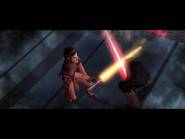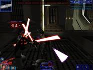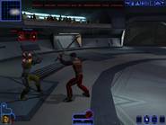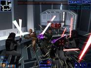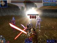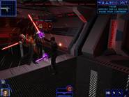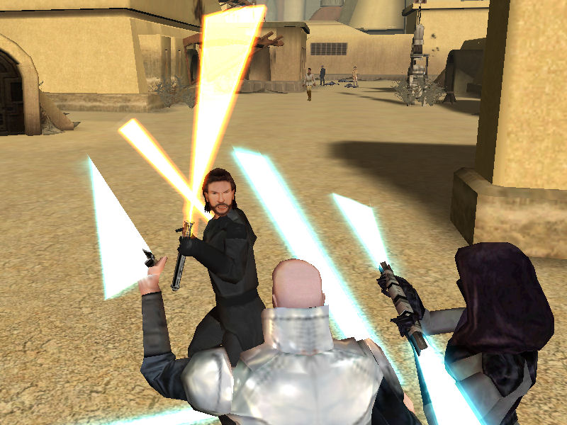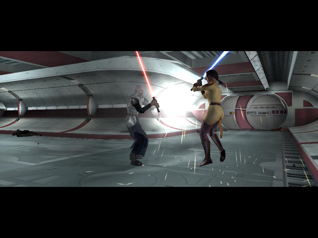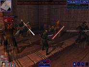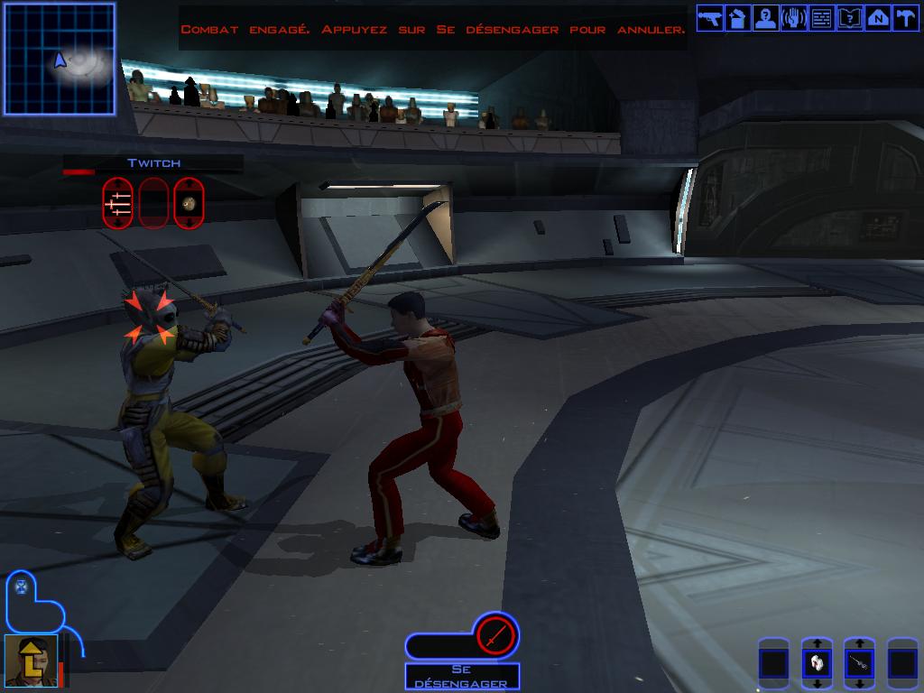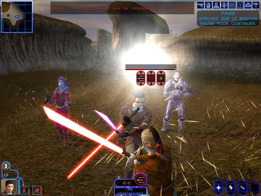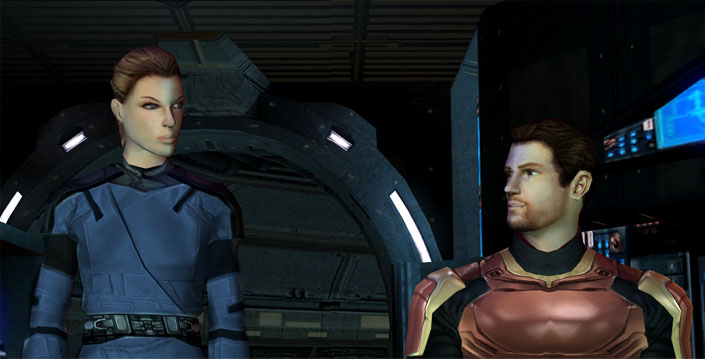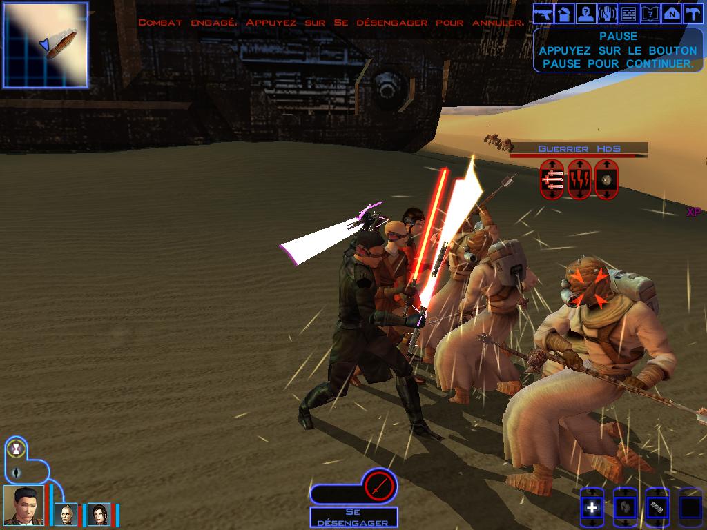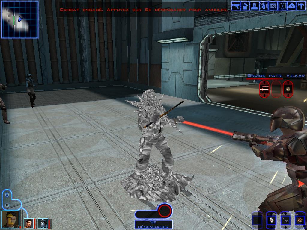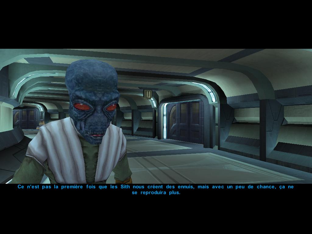 Star Wars, est l’une des plus grande saga connue de par le monde. Elle s’est longuement développée au fil des années et est devenue une énorme manne en matière de marketing. En plus des innombrables figurines, jeux de toutes sortes, il fallait bien que le jeu vidéo passe aussi par la case Star Wars. Cela a d’ailleurs commencé très tôt avec des épisodes apparus sur arcade ou d’obscures consoles pour beaucoup d’entre nous. Mon premier souvenir de joueur avec la série débuta sur la NES suivit de près par les épisodes sur Super NES. Ces jeux reprenaient la trilogie du film avec un certain succès qui nous rappelle une époque où les jeux à licence étaient de qualités, en grande partie du moins. Par la suite, de nombreux autres titres estampillés Star Wars ont commencés à voir le jour. Chacun à sa manière nous présentant l’univers de George Lucas au travers de nouveaux points de vue en entretenant ou renforçant celui-ci. Il faut avouer que dans ce domaine, on a eu a peu près tout et n’importe quoi en passant par le FPS, le jeu de baston voir la simulation de jeu d’échec. Parmi cet étalage de titres, très peu on su tirer leur épingle du jeu et se montrer véritablement marquant, voir même intéressant. Parmi tous ces titres, un genre y avait échappé, le RPG. Cela n’était dans un sens pas plus mal car on ne pouvait pas dire que les récents jeux Star Wars, notamment ceux qui reprenaient la nouvelle trilogie ou son univers proche, étaient de qualité. Avec l’annonce de Star Wars Galaxies, le MMORPG de la série et Star Wars : Knights of the Old Republic (Kotor pour les intimes), la série commença à faire ses premiers pas dans ce domaine que nous affectionnons. Si, pour ce dernier, on pouvait craindre de voir un autre jeu se basant avant tout sur sa licence juteuse pour vendre, c’était sans compter sur l’excellente équipe qui fut en charge du projet, à savoir les talentueux gars de chez Bioware. Pour ceux qui ne connaîtraient pas Bioware, sachez que c’est cette équipe qui nous a pondu des titres comme les Baldur’s Gate ou les Neverwinter Nights, en plus d’une participation sur des jeux comme Planescape Torment et Icewind Dale. Le résultat est d’ailleurs sans appel, Star Wars : Kotor est non seulement l’une des plus brillantes adaptations vidéoludique de la série mais également un RPG de très grande qualité. Experience has shown that the Sith won't stop until the Republic lies in ruins – Carth OnasiL’histoire se passe à peu près 4000 ans avant la formation de l’Empire Galactique et le règne de Palpatine. Il est donc inutile de prendre en référence les films pour comprendre ce jeu, l’intrigue s’en dégage complètement pour nous présenter un tout autre point de vue et nous plonge dans une époque où les Siths et les Jedis étaient encore nombreux et se livraient bataille. Ces derniers ressortent d’ailleurs de deux guerres qui ont su causer de grave dommage à leur Ordre. La République n’en est d’ailleurs pas non plus ressortie indemne et c’est en pleine reconstruction qu’elle et les Jedis se retrouvent menacés par un seigneur Sith, Darth Malak (ou Dark Malak en VF). Cet ancien chevalier Jedi rassemble des forces hors du commun et étend de plus en plus la domination des Siths sur toutes les planètes de la République. Personne ne sait comment ce dernier a réussi à engranger autant de forces si rapidement mais sa victoire semble inéluctable à mesure que son armée grandit. Heureusement, l’Ordre Jedi peut compter sur le talent d’un de ses membres, la jeune Padawan Bastila Shan. Celle-ci maîtrise dans des proportions remarquables un pouvoir appelé la méditation de combat. Ce don lui permet d’augmenter l’efficacité des troupes de la République lors des combats. Ce pouvoir lui a d’ailleurs permis de vaincre Darth Revan, l’ancien maître de Malak et véritable instigateur de la montée en puissance des Siths. Craignant ainsi le pouvoir de Bastila, Malak lance à ses trousses toutes forces et ne lésinera sur aucun moyen pour la capturer voir l’éliminer. C’est ainsi que commence l’aventure pour vous, ou du moins votre personnage, nouvelle recrue au service de la république. Vous vous retrouvez sur le même vaisseau que Bastila lorsque celui-ci est attaqué par les forces de Malak. Seuls trois personnages survivront à cette attaque : Bastila Shan, Carth Onasi et vous. Séparé de la jeune Jedi et réfugié avec Carth sur la planète Taris, mise en quarantaine par les Siths, vous allez devoir unir vos forces pour retrouver Bastila et échapper au Seigneur Noir. Malak is the strongest of us, and the strongest always rules - Yuthura Ban Voilà pour le début, une histoire qui, d’apparence simple, va se révéler très bien construite même si elle n’a rien de bien extraordinaire dans ses aboutissants. Le récit de ce Star Wars : Kotor a toutefois de fortes chances d’accrocher le joueur pendant les nombreuses heures de jeu qui lui seront proposées. Le récit gagne de plus en plus en mystères et permet de découvrir de manière approfondie l’univers de Star Wars au travers d’un autre point de vu. Le jeu s’accompagne en plus d’un background recherché et cohérent, disséminé intelligemment tout le long de votre périple et qui renforce considérablement l’immersion chez le joueur, si celui-ci prend le temps de le découvrir. Bien sur, plus vous avancerez dans l’aventure, plus vous gagnerez des alliés à votre cause. Cela passe par des droïdes, chevaliers Jedi mais aussi extra-terrestres de toutes sortes bien connus des fans ainsi que des simples amateurs. Chaque personnage, si vous prenez le temps de vous intéresser à lui, se révélera très intéressant et marquant à sa manière l’histoire. Cela comprend vos droïdes (enfin peut-être pas T3-M4) et même parmi les Jedis de votre groupe où les philosophies personnelles de chacun s’opposent