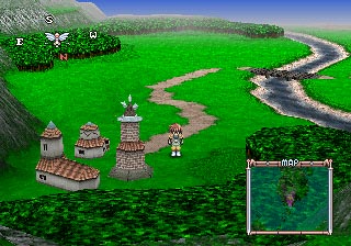 Car au niveau des déplacements sur la carte du monde, c’est légèrement en deçà de tout ce que j’ai pu dire plus haut. 3D oblige, les limites de la Playstation se font ressentir et on a juste droit à une carte simple, qui n’a rien d’exceptionnel mais qui se laisse parcourir sans problème. Ce n’est tout de même pas celle de Star Ocean 2 (beurk quelle horreur celle-ci !) ^^.