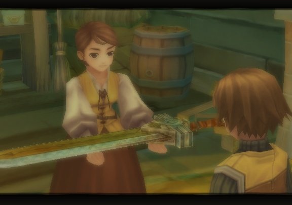 A ce niveau là, Radiata Stories sort des sentiers battus et offre au joueur une progression non linéaire. Même les missions et l’avancée du jeu ne se fait qu’après un certain nombre de journée écoulée. On se retrouve donc souvent à être là, à attendre que le scénario nous fasse un signe. Pour ceux qui recherchent un RPG dirigiste, autant passer son chemin, Radiata Stories offre une liberté relative mais bien plus vaste que les productions actuelles et ça fait plaisir à voir. On finit même par regretter de ne pas pouvoir aller prendre un verre et pouvoir inviter la serveuse tellement ce sentiment de liberté transparaît. On reste malheureusement cantonné à chercher des quêtes à accomplir, des gens à aider et à recruter ou faire ses achats. On le regrette d’autant plus que c’est ce que font tous les habitants de Radiata et la seule chose qu’on partage avec eux c’est un domicile. Chaque personnage dispose en effet d’une maison, une vraie ville en somme.