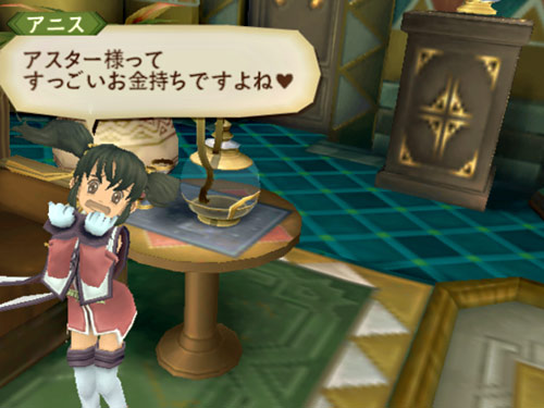 Sorti pour fêter les 10 ans de la série, Tales of the Abyss se devait de marquer les esprits surtout après un Legendia médiocre. Cette série a longtemps été méconnue chez nous. Tales of Symphonia fut le premier à arriver en Europe très tardivement. Si les autres épisodes sortis sur Playstation 1 et 2 n’ont jamais vu le jour , le marché des consoles portables permet de voir la réédition de certains de ces anciens opus comme Eternia ou Phantasia. Ce nouvel épisode, réalisé par une partie de l’équipe de Symphonia, semble malheureusement suivre la voie de l'excellent Rebirth, à savoir ne jamais sortir du Japon. Cet opus commémorant les 10 ans de cette série vaut-il le coup ou cela vaut-il mieux qu’il ne débarque jamais chez nous ? C’est à cela que je vais tenter d’y répondre. Le début des aventures de Luke : Commençons par ce qui intéresse en premier les joueurs, le scénario. Cette fois-ci, on incarne un jeune homme du nom de Luke Fone Fabre. C'est un fils de noble famille qui n’est jamais sorti de chez lui suite à kidnapping dont il a du mal à se remémorer. Depuis, il est sujet à de violents maux de tête et entend une mystérieuse voix qui vient lui parler. Il passe ainsi ses journées dans la demeure familiale située dans le royaume de Kimelasca, à l’abri et s’entraîne à l’épée auprès de Van, son maître. Un jour, une mystérieuse jeune femme du nom de Tear vient pour tuer son maître après avoir neutralisé tous les gardes de la maison. Au cours de la lutte, Luke entre en contact avec celle-ci et ils sont tous deux téléportés à plusieurs lieux du royaume de Kimelasca. C’est le début d’une aventure qui va permettre à Luke de faire la lumière sur lui-même, qui est-il vraiment, et qu’est-ce qui lui est arrivé. Un histoire de fin du monde (encore) : Le scénario est assez classique dans le fond et sa première partie assez ennuyeuse mais intéressante car elle permet de développer le background général et les bases du récit. Le joueur aura sans aucun doute du mal à adhérer au scénario pendant quelques heures de jeux assez initiatrices mais rébarbatives donc. Heureusement, plus on avance au sein de l’histoire, plus l’intrigue devient prenante et intéressante à défaut d’être particulièrement originale. On retrouve des pays au bord de la guerre, un ordre religieux bien mystérieux et des reliques du passé annonçant la fin du monde. On n’échappe tout de même pas aux divers clichés habituels mais le jeu réussit à en contourner certains avec succès. De plus, les rebondissements et révélations sont nombreux et on de quoi tenir le joueur en haleine. En tout cas, les joueurs de RPG retrouveront agréablement tout ce qui a fait la force du genre. Les personnages sont intéressants, quelque soit le côté de la barrière où l’on se situe. Il y a quelques exceptions tout de même mais cela dépend avant tout des goûts de chacun. Au final on se retrouve avec 6 personnages disponibles et on a tôt fait de choisir lesquels on va apprécier. Le personnage principal est assez intéressant et évolue bien au cours de l’histoire surtout qu’il s’agit au tout début d’un lâche qui n’a jamais vécu autrement qu’enfermé et ne se sent pas près à affronter le monde qui l’entoure. Il finira quand même par devenir un vrai héros au fur et à mesure. A ses côtés, on a donc Tear Grants, une jeune femme appartenant à l’Eglise de Lorelei. Extrêmement douée, c’est un personnage intelligent mais froid. En tant qu’héroïne, c’est aussi un personnage qui évolue beaucoup au cours de l’histoire. A côté de ce duo on trouve Jade Curtiss, un puissant magicien surnommé le Nécromancien de l’Empire de Malkt et Anise Tatlin, la protectrice de Ion, un personnage important rattaché lui aussi à l’Eglise de Lorelei. Vient ensuite Guy Cecil, un personnage très classe et agréable, meilleur ami de Luke et très effrayé par les filles ainsi que Natalia Luzu Kimelasca Lanvaldear (ouf !), la princesse de Kimelasca et fiancée du héros. Les autres personnages sont aussi hétéroclites et devraient dans leur ensemble plaire chacun à leur manière. L’équipe de développement a aussi évité de nous surcharger de saynètes comme l’avait fait Rebirth ce qui casse moins le rythme de jeu mais apportent toujours autant au caractère des personnages. Des graphismes de bonne qualité : Graphiquement, le jeu est très joli. Il surpasse même le travail effectué sur Symphonia (version play 2). Chaque lieu est bien recherché graphiquement parlant mais aussi au niveau de l’esthétisme et des couleurs. Le sens du détail est assez poussé conférant pas mal de profondeurs. Même si la 2D de Tales of Rebirth était plus recherché, il faut avouer que le travail ici est superbe pour un support basé sur la 3D, les décors restant fixes. Seulement voilà, le prix à payer pour une telle qualité se retrouve dans des loadings souvent excessifs. Cette qualité est toutefois inégale. Déjà, la carte est plus classique et de qualité moyenne mais reste de bonne facture en comparaison de ce qu'on avait eu droit jusqu'ici et au moins les ennemis ne ressemblent plus à de petites boules noires. Les donjons, mieux construits ne tiennent pas non plus la différence avec les villes et lieux importants du jeu mais sont quand même bien gérés. ils manquent seulement de détails et ne sont pas forcément aussi recherchés esthétiquement parlant. Heureusement, dans ces cas là, les loadings sont également revus à la baisse. En tout cas, le joueur ne devrait pas se plaindre de l’ensemble des décors et sera souvent charmés par les différents lieux disponibles. Néanmoins, cela demeure aussi classique à ce niveau là et à aucun moment on n’est jamais véritablement bluffé par un endroit qui se distinguerait particulièrement mais plus pour la richesse de certaines places. Les personnages quand à 