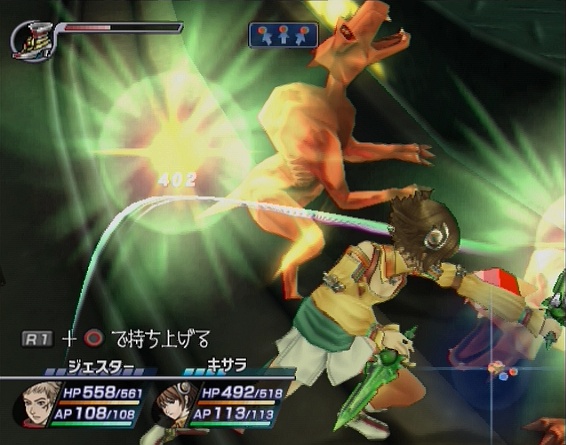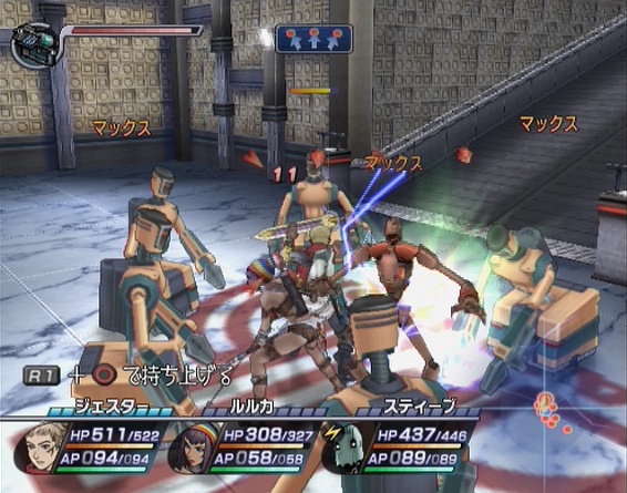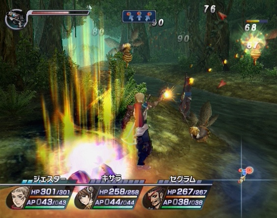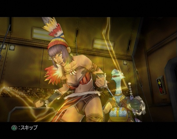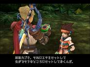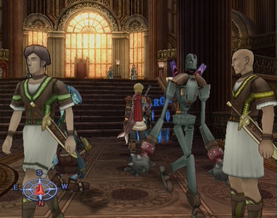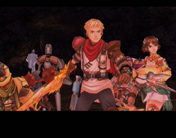 En dehors de cela, on trouve d’autres annexes comme l’insectron ou l’usine. Si le premier est divertissant, il n’en devient pas moins lassant au fur et à mesure du jeu et ne servira qu’à rompre de temps à autre la monotonie du jeu. C’est d’autant plus dommage car le concept semble bien abouti mais mal travaillé et à moins d’être un acharné, il risque d’ennuyer à force. Bien peu de joueurs y verront de l’intérêt sur le long terme et s’en lasseront très vite sans en avoir fait tout le tour. L’usine, quand à elle, rappellera également une autre œuvre du studio Level-5 mais celui-ci se complexifie. Ce concept est également des plus intéressants mais demande qu’on y passe également du temps et sa complexité risque d’en rebuter plus d’un ce qui regrettable. Ces annexes sont de plus facultatives pour finir le jeu, on peut donc très bien passer à côté sans le moindre problème mais cela contribue également à ne pas s’y intéresser du tout et à les percevoir comme des gadgets. Bilan mitigé Blockbuster annoncé, Rogue Galaxy ne remplit malheureusement pas toutes les attentes qu’on aurait pu placer en lui. Si Level-5 a réussi un exploit technique et graphique énorme dans le domaine, le studio n’a pas su maîtriser toutes les idées qu’il a voulu mettre en avant. Des idées qui n’ont rien d’originales mais qui réunies auraient pu apporter énormément de profondeur au jeu. Malheureusement, celles-ci se révèlent mal gérées et inintéressantes voir ennuyeuses sur le long terme, pour ne pas dire chiantes. Si c’était une bonne chose de reprendre toutes ces idées, il aurait convenu qu’elles soient mieux préparées et traitées. Le concept du jeu lui-même n’a rien d’extraordinaire. Hormis se taper continuellement des donjons et des combats, le jeu n’offre aucune réelle activité intéressante et là aussi, on finit clairement par se lasser. Si l’enthousiasme de départ est très bon, il finit inlassablement par nous rattraper. Même en bon amateur de gros donjons, ceux de Rogue Galaxy manque cruellement de saveur pour faire passer la pilule quand on commence à s’y intéresser véritablement. Les combats finissent par s’enchaîner sans passion malgré un travail dans le domaine réussit mais qui brille par une absence remarquée d’ennemis intéressants. Seul le système de fusion des armes et la capacité de changer de combattants apportent vraiment de la diversité, un temps seulement. Il est regrettable que le scénario ne vienne pas sauver la mise, pire même, il vient parfois enfoncer encore plus le clou dans ce constat négatif.