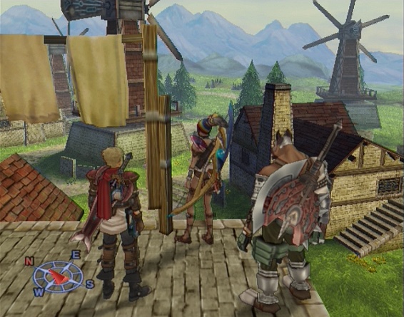 Il y a des jeux qui dès leur présentation laissent aux joueurs une très forte impression, suscitent un fort engouement et appellent les joueurs à disserter dessus pendant des heures. C’est le cas de Rogue Galaxy dont l’annonce par le studio Level 5 avait su émerveiller tous les amateurs de RPG qui attendaient de pied ferme ce jeu. Il faut avouer qu’il y avait de quoi, une aventure futuriste dotée d’une réalisation somptueuse et développée par un studio qui ne cesse d’affirmer son talent. Il y avait vraiment de quoi émouvoir les fans de RPG qui voient depuis un certain temps les titres du genre fleurir sur une PS2 au crépuscule de sa vie, et quelle fin de vie. Malheureusement, peu après sa sortie japonaise, et même un peu avant, le jeu est passé dans l’oubli le plus total pour nous autres européens. La principale cause de cet oubli étant l’absence la plus complète d’information quant à une sortie hors du territoire nippon, US compris. Heureusement, Level 5 finit par annoncer une sortie US et pal de son titre un peu plus d’un an après la version japonaise. Comme pour se faire pardonner ce retard, le studio y inclura les bonus de la version Director’s Cut du jeu prévue au Japon dans le même temps. Une excellente nouvelle mais qui, pour nous autres européens, sera accompagnée de multiples reports dont la date est toujours aussi incertaine. 2007, L’odyssée de l’espace Le jeu nous met dans la peau de Jaster Rogue, un jeune orphelin intrépide qui rêve de quitter Rosa, sa planète d’adoption, et d’explorer l’univers, comme tout bon héros de RPG en somme. Malgré l’attachement qu’il porte au Père Raoul, le prêtre qui l’a élevé après l’avoir trouvé bébé sur le seuil de son église, il ne supporte plus de vivre sur cette planète désertique et veut vivre son rêve même si celui-ci semble inaccessible. Son salut tant attendu lui viendra de sa rencontre avec un mystérieux guerrier. Alors que sa ville est attaquée par des monstres, ils vont tous deux s’unir pour sauver les habitants. Toutefois, en plein milieu du combat, le mystérieux guerrier, se voyant suivi, finira par quitter Jaster mais lui transmettra au passage son épée et quelques objets utiles dans son aventure. Peu après, Jaster rencontre Steve et Simon, deux membres de l’équipage du célèbre pirate de l’espace Dorgengoa. Tous deux recherchent le légendaire chasseur Desert Claw. A la vue de l’épée de Jaster, ils le prennent pour ce fameux guerrier et lui propose de rejoindre l’équipage du grand pirate Dorgengoa. Jaster découvre ainsi l’identité de son mystérieux allié mais décide de se faire passer pour lui comprenant qu’ainsi il pourra enfin exaucer son rêve. Un début classique pour un scénario qui s’avère tout aussi classique malheureusement. L’histoire n’est guère palpitante et met du temps à démarrer. Il faut par exemple avoir déjà visité 2 planètes (en plus de celle de départ) avant de pouvoir rencontrer le fameux Dorgengoa et savoir ce qu’il veut. On passe ainsi la 1ère partie du jeu à se balader et découvrir l’univers du jeu mais sans qu’on s’implique réellement dans le récit. Certes, de nombreux indices viennent clairsemer cette progression laissant imaginer ce qui va arriver et développant ainsi l’intrigue qui se mettra en place mais il faut avouer que l’enchaînement des situations paraît bien trop abstrait dans la plupart des cas pour légitimer ces déambulations. La 2ème partie relance le récit. Toutefois cela reste dans les clichés propre au genre mais l’ensemble avère tout de même plus enthousiasmant que le début du jeu ce qui l’aide à mieux passer. Il en va de même pour le final qui saura ménager l’intérêt du joueur jusqu’à sa conclusion. Néanmoins, le scénario de Rogue Galaxy n’a rien de bien trépidant et pourrait bien ennuyer un bon nombre de joueurs habitués à quelque chose d’un peu plus développé. L’histoire de Rogue Galaxy se suit mais ne se vit pas et c’est ce qui est le plus regrettable. La galerie des personnages est assez hétéroclite et s’accorde assez bien avec l’histoire mais ne renforce pas le récit pour autant. Si certains personnages éveilleront sans mal l’intérêt (Kisala ou Zegram), l’ensemble du casting prête avant tout dans la dérision affiché par le jeu. Un humour sympathique, parfois agaçant mais volontaire (MIO par exemple) mais qui ne permet pas vraiment de donner de l’ampleur au scénario et tout cela reste au final bien gentillet. Ces personnages ont même bien du mal, de par leur apparence assez caricaturale, à rendre crédible l’histoire parfois. Certaines scènes voient même leur tension dramatique être complètement tuée par ce mélange des styles si particulier. Un style si particulier Le jeu laisse donc place aux voyages spatiaux et tout est fait dans le domaine pour toucher le joueur grâce à un visuel recherché et esthétique. Les cinématiques sont sublimes en terme de qualité visuelle et savent en mettre plein la vue. Elles accompagnent bien sur les événements majeurs du jeu mais aussi le départ ou l’arrivée de l’équipage de héros sur une nouvelle planète afin d’immerger constamment le joueur dans l’univers du jeu. Les influences son nombreuses mais le dépaysement propre au genre est bien là et vient combler nos attentes de joueurs. Toutefois, ces mondes restent stéréotypés par apport aux autres RPGs. Ainsi, techniquement parlant, Level 5 va encore plus loin et nous propose un jeu très soigné de ce point de vue là et même énorme dans la nouvelle approche qu’il fournit au joueur. En effet, fini les explorations par zones, lorsque l’on arrive sur une planète, celle-ci est entièrement ouverte à vous, techniquement parlant. C’est bien simple, hormis en cas de téléportation, changement de planète, voir début de cinématique, le jeu n’inflige aucun temps de