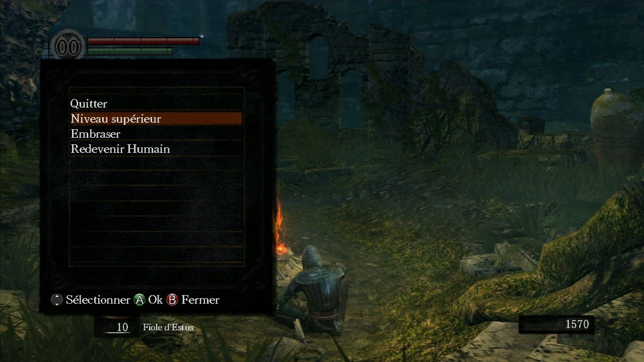 Enfin, vous pourrez avoir accès à diverses options au niveau des feux de camp, comme dépenser des âmes pour augmenter de niveau, réparer vos armes, changer les compétences équipées, et ressusciter sous forme humaine (quand cela est possible...) .