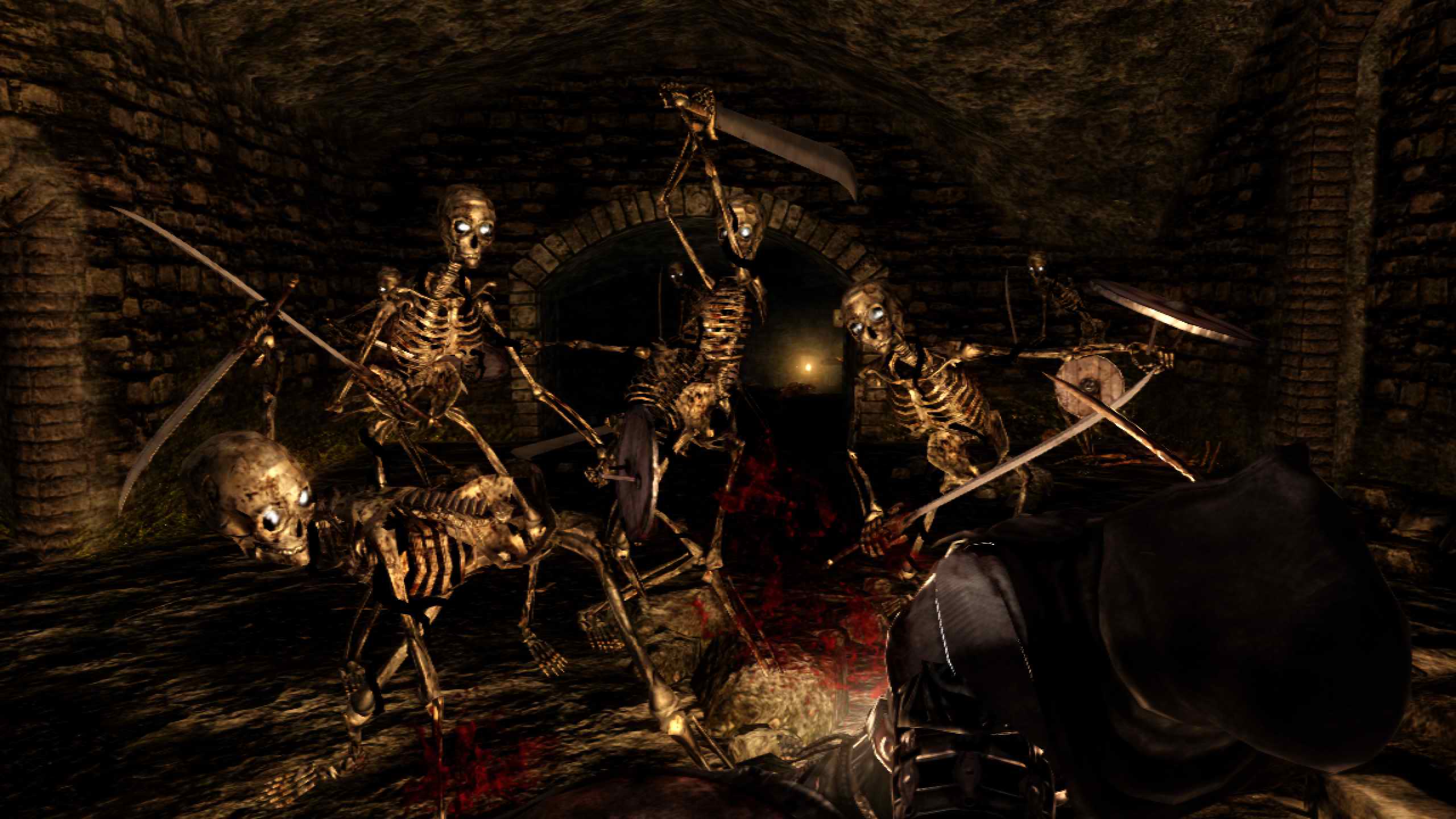 En résumé : Mais qui a éteint la lumière ?! Une ambiance à glacer le sang... Bon, le scénario est un peu léger comme on vient de le voir. En revanche côté ambiance c'est beaucoup plus travaillé : un monde sombre, inhospitalier et effrayant. L'impression de solitude nous suit tout au long de l'aventure. Le jeu se passe essentiellement à proximité d'une grande forteresse, et l'on pourrait penser au début que l'on aura vite fait le tour des décors. Mais que nenni madame (ou monsieur) ! Au fur et à mesure de l'exploration de cet univers labyrinthique totalement ouvert, de nouvelles zones deviennent accessibles, toujours plus grandes et plus dangereuses. Marécages, forêts, égouts, châteaux en ruines et autres seront de la partie. Les décors s'enchaînent sans chargements, ce qui est plutôt agréable, et les transitions se font la plupart du temps assez naturellement lors du passage d'une porte ou d'un ascenseur (à quelques exceptions près...). Un système de raccourcis (à déverrouiller) permet de pouvoir ré-accéder à des zones éloignées plus facilement depuis le centre de ce vaste monde.