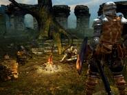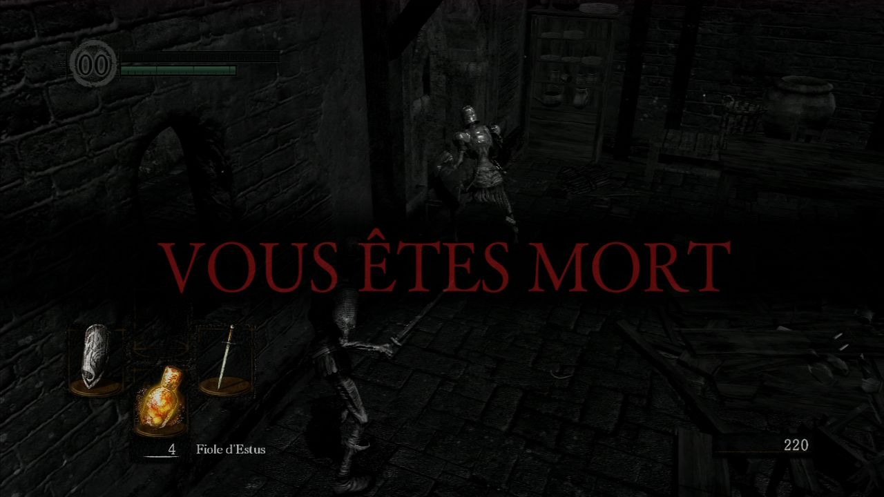 Humain mais pas trop Votre avatar peut se matérialiser sous deux formes. La première (la plus courante) est celle d'un mort-vivant (appelée Carcasse dans le jeu). Vous commencez d'ailleurs le jeu sous cette forme. Il est ensuite possible de ressusciter votre avatar sous forme humaine en dépensant 1 point d'humanité au niveau d'un feu de camp. Sous cette deuxième forme, vous serez légèrement plus fort, et surtout vous pourrez faire appel à l'aide d'autres joueurs grâce au mode online (voir la section dédiée à ce mode). En contrepartie, lorsque vous êtes sous forme humaine, vous serez également susceptibles d'être attaqués par d'autres joueurs... « Heureusement » cette forme n'est généralement pas conservée bien longtemps étant donné que votre avatar redevient Carcasse dès que vous mourrez (ce qui est assez fréquent, finalement...) et que les points d'humanité sont rares.