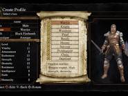 En résumé : Lève toi, Ô héros perdu, et marche... enfin rampe... enfin débrouille-toi quoi ! (les personnages et leur évolution) Création de l'avatar La première étape pour affronter cette douloureuse épreuve est de créer un avatar. Une interface intuitive et de nombreuses options permettent de façonner un visage unique, mais généralement assez laid... Il est également possible de définir une silhouette plus ou moins mince ou musclée. Inutile de perdre trop de temps sur cette étape puisque de toute façon on a très rarement l'occasion de voir son personnage à visage découvert et sous forme humaine... Autant dire que la complexité de personnalisation de l'avatar n'a pas grand intérêt (mais reste appréciable). La deuxième phase de création du personnage consiste à choisir une classe parmi les 10 proposées (guerrier, chevalier, aventurier, voleur, bandit, chasseur, sorcier, pyromancien, clerc, mendiant). Cette classe définit vos caractéristiques et votre équipement de départ, ainsi que les sorts éventuels dont vous disposez au début du jeu. Notez toutefois que vous pouvez ensuite faire évoluer votre personnage comme il vous plait : la classe initiale a donc un intérêt très limité (on peut commencer avec un guerrier et le faire évoluer ensuite en mage sans problème). En plus du choix de la classe, vous pouvez attribuer un don à votre personnage (qui est en fait juste un objet particulier pouvant donner quelques avantages, comme par exemple un anneau augmentant un peu les PV, ou un passe-partout pour ouvrir certaines portes...).