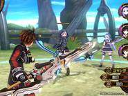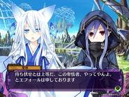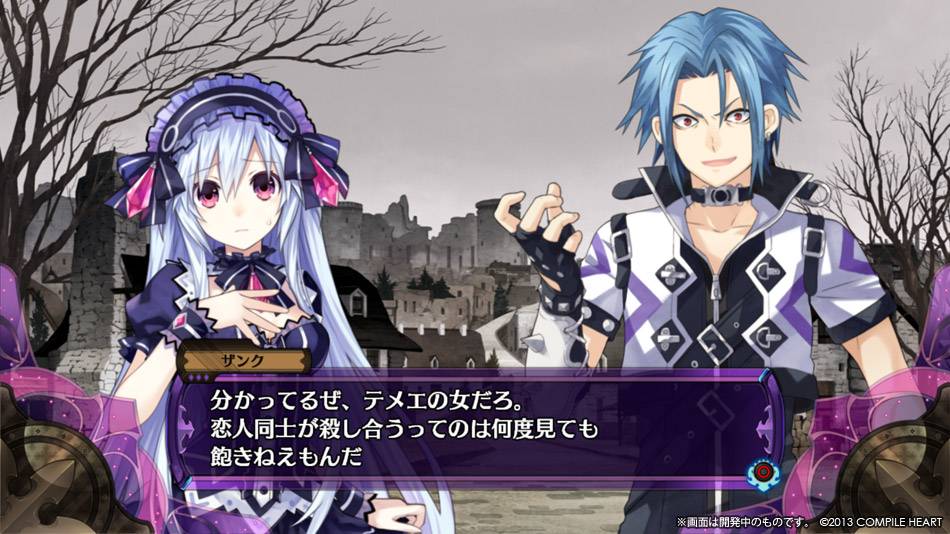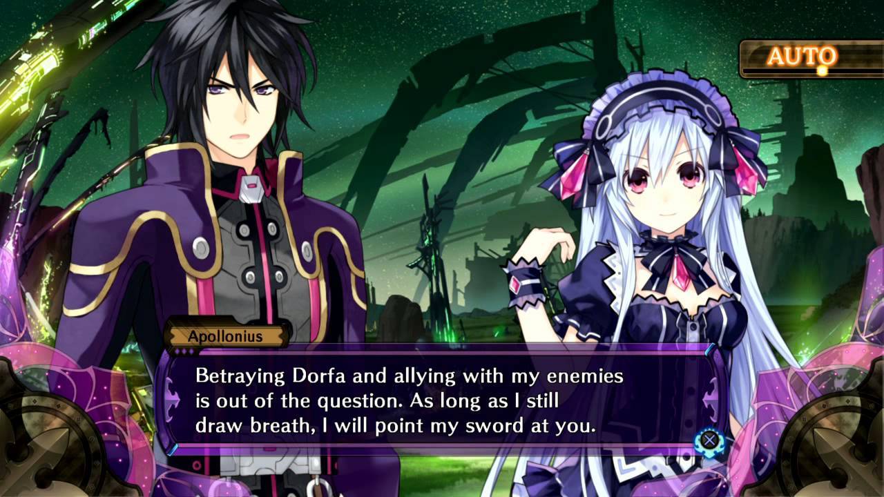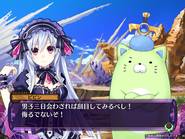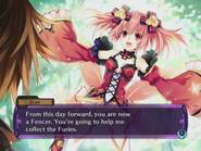 Si vous connaissez les noms Compile Heart et Idea Factory, il y a de très fortes chances pour que vous les associiez, au choix, à la série des Hyperdimension Neptunia ou à des jeux de miche très riches en fap-service. Mais dans un cas comme dans l'autre, on ne peut ignorer la place de plus en plus importante que prend ce duo dans l'édition en Occident de titres qui n'auraient jamais passé la frontière avant la septième génération de consoles. Du coup, il avait de quoi surprendre, le projet Fairy Fencer F, RPG ô combien classique mais piqué de noms aussi charmants que Yoshitaka Amano ou Nobuo Uematsu. A l'approche de la version Advent Dark Force, il peut sembler utile de se pencher sur ce jeu. S’agit-il d’un titre surfant sur la vague du « c'était mieux avant » ou a-t-il un réel contenu à faire valoir ? Après tout, il s’agit bien du premier jeu signé Galapagos RPG, un label qui a proclamé depuis sa création qu’il ne veut faire que « des jeux japonais pour des japonais ». Essayons donc de savoir s’il mérite d'avoir sa chance de briller dans nos régions, ou si cette démarche le condamnera sous nos latitudes. Sauvez le monde, ressuscitez la Déesse (et mangez gratos) Au début, il n'y avait rien. Alors vinrent deux divinités, la Déesse de lumière et le Dieu Vil de ténèbres. Tous deux créèrent le monde, tentèrent de s'accaparer leur création, puis s'affrontèrent. Leur duel se conclut par un match nul, chacun étant scellé par cent épées magiques, dispersées aux quatre coins du monde. Des siècles plus tard, la légende raconte que quiconque récupère une épée peut formuler un vœu à la divinité de son choix. Du moins le croyait Fang, notre héros, qui s'empare d'une arme encastrée dans la pierre dans l'espoir de demander un repas gratuit. Mais il n'obtiendra que la libération de la fée Eryn, qui lui apprendra que pour pouvoir faire un vœu, il lui faudra d'abord récupérer les cent épées, puis user du pouvoir des cent Fées qui les habitent pour briser le sceau de la Déesse. Une libération qui permettra d'empêcher la résurrection du Dieu Vil qui souhaite plonger le monde dans les ténèbres, mais aussi de retrouver les souvenirs perdus d'Eryn. Si Fairy Fencer F sait se vendre par le nom de ses concepteurs graphiques et musicaux, on en oublie qui est à la tête de l'histoire : Toshiki Inoue. Jamais entendu parler ? C’est normal. Bien que sa carrière soit prolifique, cet homme n'est connu que comme « scriptwriter » d'adaptations de manga (parmi lesquels les animés de Death Note, Ranma ½ et Yu-Gi-Oh) et scénariste de « tokusatsu », des programmmes d'action japonais « à la Michael Bay » très riches en effets spéciaux ; les plus célèbres sont les Power Rangers ou Godzilla. Autrement dit, pas le meilleur choix pour écrire une histoire originale, et ça se sent ! Le scénario se vautre confortablement, d'un bout à l'autre, dans une succession de clichés et de lieux communs du J-RPG, sans aucune prise de risque à aucun niveau. Grossièrement, les héros vont récupérer les « Fairies » pour sauver le monde, pendant qu'une organisation malfaisante tentera de les récupérer pour le dominer. L'univers est tellement peu développé qu'on n'en saura jamais très bien d'où viennent toutes les ruines ultra-modernes jalonnant le monde. L'aventure sera aussi ponctuée de dialogues ridiculement longs et inutiles, les personnages étant au mieux archétypaux, au pire inconsistants. Citons comme exemples Tiara la chef autoritaire qui cache très mal son côté tsundere masochiste, ou Fang qui passe sans arrêt d'un extrême à l'autre, du vorace fainéant vaniteux au preux chevalier charismatique. Il est d'ailleurs bon de noter que Tales of Destiny en 1997 parvenait à rendre Stahn beaucoup plus crédible et cohérent, un personnage principal pourtant bâti sur le même schéma, et c'est encore pire quand on sait que créer des personnages principaux « imparfaits » fait partie des marques de fabrique de Toshiki Inoue. Manifestement, expérience et maîtrise ne vont pas toujours de pair. Bref, l'histoire se tient quelque part entre la vaste blague et l'exploitation d'un public qui ne jure que par ces aspects japonais exacerbés. D'un côté, pourquoi pas, il n'y a qu'à voir les grandes séries toujours florissantes alors qu'elles ont renoncé depuis longtemps au changement, telle la saga-fleuve Tales of ; mais là où d'autres titres récents tentent de jouer sur lesdits aspects classiques pour aborder discrètement des thèmes moins communs, comme un certain Ar noSurge, ou encore s'en tiennent au strict minimum syndical pour ne pas froisser son public comme un Bravely Default, Fairy Fencer F assume sans concession que si on est là pour l'histoire, on est là pour de mauvaises raisons. Néanmoins, la version Advent Dark Force nous promet une aventure plus riche et des forces en présence plus développées, reste à espérer que cela fasse la différence. De plus, les vieilles habitudes ayant la vie dure, le jeu ne se prive pas d'un fan-service qui, sans être envahissant - voire carrément gênant comme dans Monster Monpiece ou Moero Crystal - semble quand même un peu forcé et assez inutile. Mais alors, de la part d'un auteur de « tokusatsu », quand bien même l’histoire serait bonne à jeter, peut-on espérer se consoler par l'aspect visuel ? Eh bien... Gigoter sans bouger, luire sans briller : la recette d'un succédané ... La réponse est non. Si Fairy Fencer F a son lot d'excuses comme d'initier une nouvelle IP ou que Compile Hearts ne compte pas parmi les plus fortunés du marché (et n’a jamais considéré les graphismes comme une priorité), le résultat reste fort peu mirobolant, voire carrément low-cost. Les cut-scenes avec des modèles très vaguement animés affichent une résolution honorable, accordons-lui ça, mais à l'heure où même Cavia fait des scènes en 3D, difficile d'accepter un choix