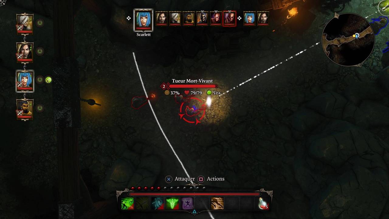 Les zones en combat ne sont pas quadrillées et se déroulent directement dans la zone d'exploration, mais chaque personnage dispose d'une jauge de Points d'Action (PA) qui détermine notamment quelle distance il peut parcourir avant de passer son tour. En réalité, les PA sont utilisés pour tous types d'action ; héros comme ennemis ne disposent que de leur jauge de points de vie et de celle de PA. Chaque attaque, chaque magie (sauf exception), chaque utilisation d'objet, chaque déplacement, coûte un certain nombre de ces points qui seront plus ou moins nombreux en fonction de certaines statistiques. La Constitution augmente leur nombre maximal, la Vitesse augmente la quantité « régénérée » à chaque tour, la Perception influence quant à elle la quantité utilisable en tout début de combat.