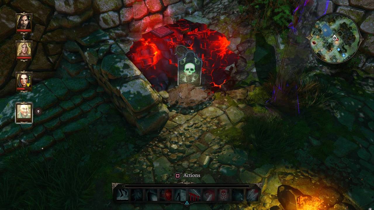 Nous n'avons pas encore évoqué l'un des principaux facteurs du jeu : la mort des héros. En combat comme au cours de l'exploration, il existe de très nombreux moyens de trouver la mort. Les zones parsemées de pièges mortels (explosifs, nuages toxiques, lave…) sont très courantes dans Divinity, certains sont évidents tandis que d'autres sont cachés, et c'est d'autant plus vrai au fur et à mesure que l'on progresse dans l'aventure.