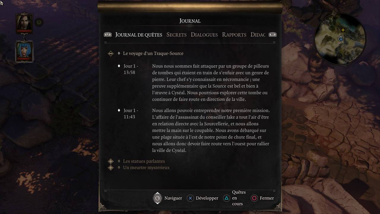 Seules les quêtes principales évoquent un peu mieux les objectifs, et on a même droit à quelques indications de lieux importants sur la carte. Cela dit, elles sont fondues dans la masse de quêtes annexes, et il n'est forcément évident de les différencier.