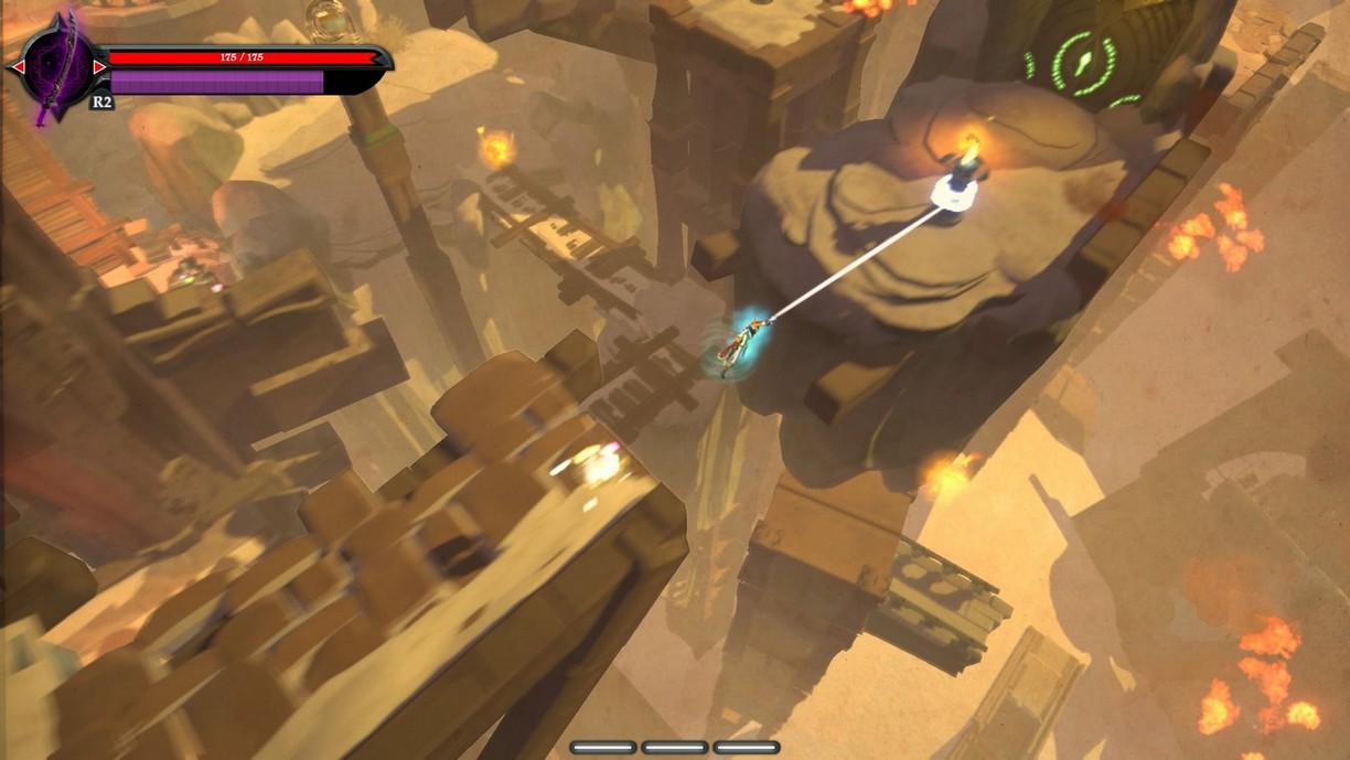 On dispose de plusieurs éléments de gameplay : une jauge de vie, une de magie, et une d'endurance. En combat, il y a aussi une jauge de combos qui apparaît en fonction du nombre de coups portés à la suite.
