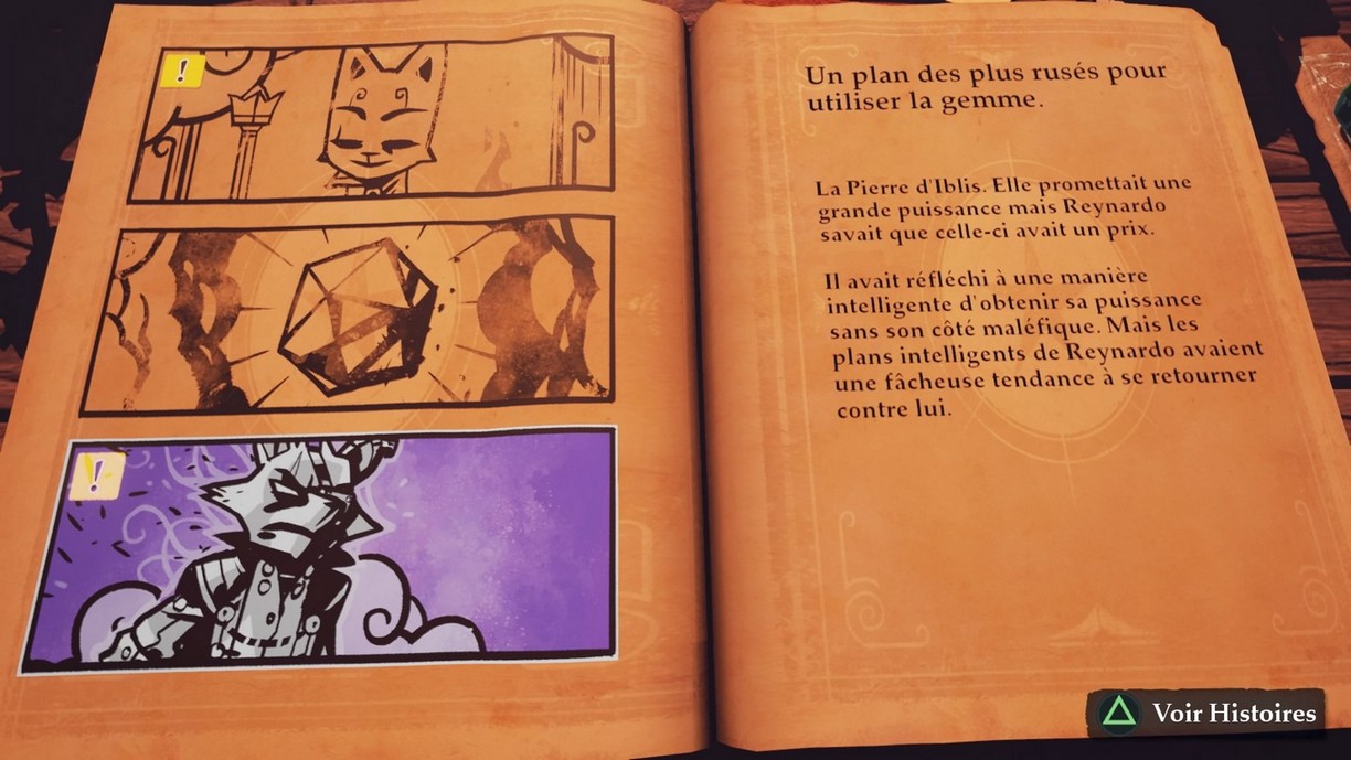 Tout au long de l'histoire, le narrateur (en anglais, sous-titré français) raconte l'aventure de Reynardo, relatée dans un livre bien étrange. C'est au cours du prologue que le personnage acquiert cet ouvrage et en découvre le contenu.