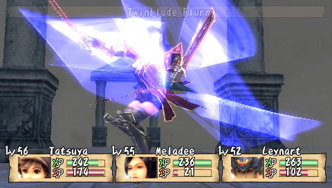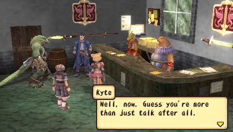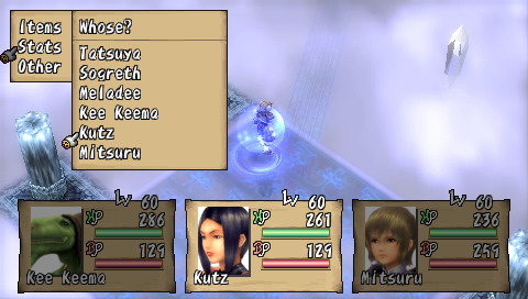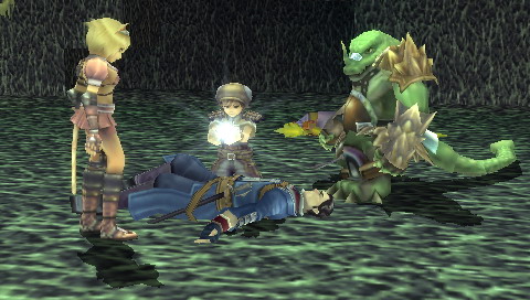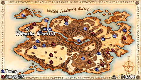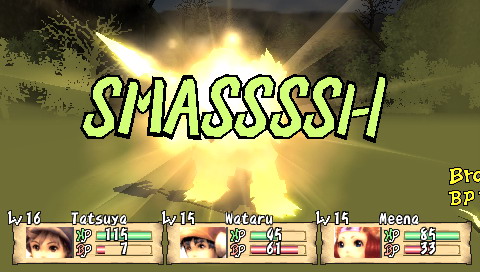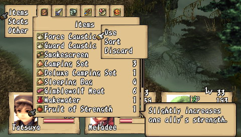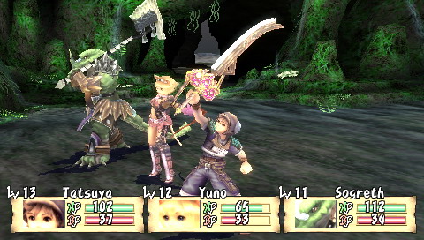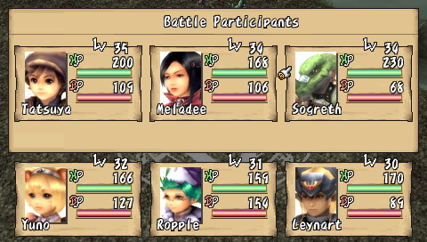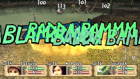 Compilation of Brave Story Si l'on connait bien les projets pharaoniques de Square-Enix, ils ne sont ni une rareté, ni une exclusivité. En effet, Brave Story est d'abord un film d'animation (lui-même adapté d'un best-seller au Japon) auquel se sont joints trois jeux vidéos, tous des RPG, sortis en 2006 sur PS2, DS et donc PSP. Le film a d'ailleurs connu un relatif succès, surtout car il a été réalisé par KoichiChigira (Full Metal Panic, Last Exile, notamment), bien qu'il s'adressât à un jeune public. Des trois RPG accompagnant le film, seul celui sur PSP a eu l'honneur de franchir les barrières du Japon. Il faut préciser que ces jeux, développés par divers équipes, sont tous différents, et donc de qualité variable. Le titre DS, signé Bandai, tout comme la mouture PS2, de Sony, sont plutôt axés A-RPG. A contrario, la version PSP, sous-titrée "New Traveler" car mettant en scène un héros (un "Voyageur") différent, développée par Game Republic, propose un RPG a priori plus traditionnel. Mais voyons tout cela en détail et en images. Brève Story C'est une journée pleine de soleil. Tetsuya, 11 ans, et son amie Miki sont tranquillement assis sur un banc, en train de discuter. Pendant que Miki parle, Tetsuya, lui, est absorbé par sa PSP. Miki veut s'en aller et rentrer chez elle, mais il lui répond sans même la regarder : "Encore un niveau ...". C'est alors que se produit "l'accident"... Il est déjà trop tard, Miki est inconsciente. A l'hôpital, Tetsuya se rend compte de son erreur et se sent coupable lorsqu'il entend le docteur avouer son incompétence à diagnostiquer ce cas. Pourra-t-elle revenir à elle un jour ? Pour réaliser son rêve, guérir son amie, Tetsuya est alors transporté dans le monde de "Vision". En passant les grandes portes de ce monde, Tetsuya devient un "traveler" et le chemin vers son but est semé de péripéties. Accueilli par un grand sage, Tetsuya fait l'acquisition d'une épée et apprend sa mission : réunir cinq gems qui permettront d'exaucer son souhait. Seul, perdu dans ce monde inconnu, Tetsuya est transporté dans une forêt où sa véritable aventure va commencer ... Voici donc le début de l'intrigue, plutôt simple, et qui fournit un bon prétexte à l'exploration d'un monde totalement inconnu. Mais plus que de rechercher les gems, Tetsuya va surtout découvrir Vision, et aider ceux qui seront devenus ses compagnons. Et comme par hasard, ses actions le conduiront, presque sans le vouloir, à réunir ces fameux joyaux. On s'éloigne donc assez vite de l'intrigue principale, qui passe plus pour une grosse quête annexe, pour plonger dans les problèmes de Vision. Tetsuya lui-même étant un joueur assidu, l'autodérision et les clins d'œil aux clichés traditionnels des RPG permettent, au début en tout cas, une certaine légèreté qui permet d'entrer dans le jeu sans se prendre la tête. La trame générale n'est d'ailleurs pas compliquée du tout, et perdra même beaucoup de son intérêt, tellement elle est prévisible. Peu de surprises attendront les joueurs habitués, mais comme l'ensemble n'est jamais alourdi par des dialogues trop longs, on passe aisément sur cet aspect qui dans le fond, convient excellemment au jeune public. L'histoire, en elle-même, est assez courte. Il faudra environ 25 heures à un joueur moyen pour terminer l'aventure, sans trop chercher les nombreuses petites quêtes et les armes ultimes. Etant donné la limpidité du scénario, le jeu offre ainsi une expérience assez dense qui rattrape ainsi sa légèreté. Vision, comme un air de "déjà vu" Monde totalement inconnu à notre jeune héros, Vision, n'en restera pas moins sans surprise pour n'importe quel joueur aguerri. La plupart des villages sont assez petits et le jeu compte environ une dizaine de donjons. Le jeu propose donc un nombre de lieux assez réduits, dont on a vite fait le tour, même si la plupart des quêtes (j'en parlerais plus loin) proposent une exploration plus poussée des donjons. Une fois encore, sans que cela ne soit gênant pour autant, on voyage en terrain connu. Il en va de même pour les compagnons et les personnages qui croiseront la route de notre "traveler". Le plus horripilant des personnages est sans conteste la fille-chat Yuna, que l'on rencontre dès le début du jeu. Les quatre autres (votre équipe se compose au maximum de trois personnages, à choisir parmi six), s'ils restent dans les clichés habituels, sont quand même plus intéressants, et surtout possèdent un certain charisme. Sogreth, le gros lézard, cachant sous son apparente robustesse un grand coeur ; Meladee, guerrière mystérieuse gardant ses sentiments en elle et qui petit à petit s'ouvrira à vous ; Ropple, le petit savant orgueilleux et sans compassion ; Leynart, le chevalier en armure qui a juré fidélité à Tetsuya ... Il arrive aussi, surtout au début du jeu, que des personnages invités rejoignent votre groupe pour un petit laps de temps. Il s'agit la plupart du temps d'autres "travelers". En outre, la figure du "méchant" est incarnée également par un autre "traveler", Rei, bien décidé à récupérer toutes les gems avant vous. Il usera de toute sa malice et ne reculera devant aucune action pour vous barrer le chemin. Pourquoi ? Vous découvrirez le fin de mot de l'histoire ... à la fin.