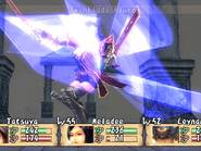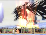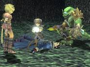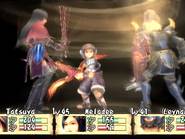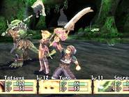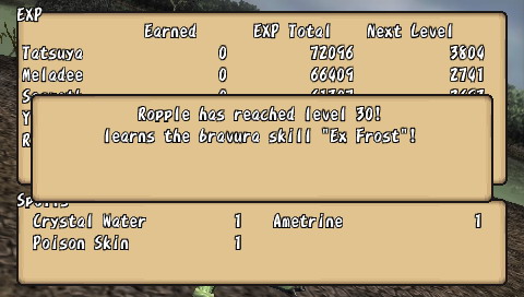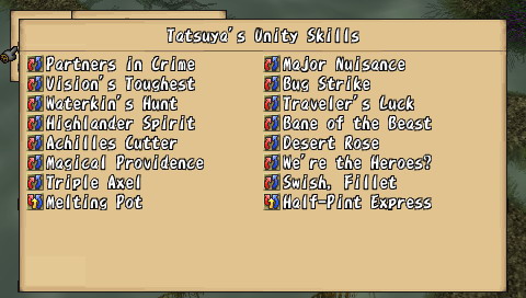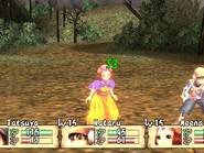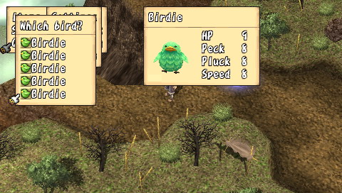 On le voit, l'univers proposé est plutôt gentil et préfère ne pas trop s'attarder en dialogues inutiles pour privilégier l'action et l'exploration des donjons. De ce point de vue, le jeu réussit son pari mais d'un autre côté, l'interêt du joueur pour l'intrigue, coeur même d'un RPG, s'en trouve largement diminué. Bravo le gameplay Brave Story possède un gameplay à la fois personnalisé et très classique. L'exploration constitue une partie importante du jeu, que ce soit sur la carte du monde, dans les villes et surtout dans les donjons. En effet, la partie scénaristique assez brève laisse une grande place au reste, le plus souvent exploration, quêtes ou mini-jeu. Au début, on commence classiquement par parcourir les plaines de Vision à pied. Viendra ensuite le temps de la roulotte tractée par une sorte d'animal, qui ressemble vaguement à un croisement d'un boeuf, d'un zébu et d'un yack. Bien entendu, ce moyen de transport est beaucoup plus rapide, et permet donc de circuler beaucoup plus librement dans le monde. Enfin, vous ferez l'acquisition d'un dragon (ce n'est pas une révélation, il est présent sur l'écran titre du jeu). Avec lui, vous gommerez un de rares aspects négatifs du gameplay de Brave Story : la fréquence des combats. Si elle reste acceptable sur la carte du monde, dans les donjons, c'est une toute autre histoire. Les affrontements aléatoires surviennent tous les quatre ou cinq pas, ce qui oblige le joueur a foncer plutôt qu'à explorer. Car même si le système de combat est particulièrement bien réalisé, faire inlassablement les mêmes combats devient vite rébarbatif. Justement, j'en viens aux combats, qui se déroulent tout bonnement au tour par tour. On ne pourrait faire plus efficace : on choisit les actions pour ses trois personnages et le tour commence. Mais certaines subtilités apparaissent petit à petit. Tout d'abord, il arrive souvent que l'un de vos personnages frappe un ennemi auquel il reste seulement quelques HP. Dans la plupart des RPGs, ce coup (surtout s'il est exécuté avec votre meilleur guerrier) est presque une perte. Alors que dans Brave Story, vos personnages peuvent bénéficier d'"Extra attacks", c'est-à-dire d'un coup supplémentaire (malgré tout, cela intervient aléatoirement). Il faudra donc bien faire attention à sa tactique : faut-il frapper le monstre sur le point de mourir, ou plutôt un autre ? Ce point, qui pourrait sembler anodin de prime abord, apporte une dimension tactique particulière. Brave Story dispose aussi d'un système de création d'accessoires. En vérité, c'est d'ailleurs la seule manière d'en obtenir. Il suffit pour cela de posséder la recette correspondante (on la trouve en général dans un coffre ou comme récompense d'une quête) et d'avoir les ingrédients nécessaires, qu'on obtient le plus souvent après les combats. Bien entendu, les accessoires les plus puissants ne peuvent être créés qu'avec des matériaux assez rares. Sans être original, ce système est bien réalisé, facile d'accès grâce aux différents livres consultables dans le menu : bestiaire complet, livre des accessoires et création direct des accessoires. Une occupation, plus annexe, viendra également diversifier l'action du jeu : les oiseaux. En effet, dans certains lieux, les "combats" qui se déclenchent vous permettent de capturer des espèces de petits moineaux de différentes couleurs. Passons sur les détails de ce mini-jeu (vos petits oiseaux "fusionnent" à la fin du temps imparti pour donner un oiseau ...), pour s'intéresser à la fonction des bestioles ainsi capturées. Ces dernières peuvent d'abord être échangées contre des objets, qui peuvent être, vers la fin, de très grande valeur. Elles vous servent aussi à des sortes de combats de coqs où tout se déroule de manière automatique. En remportant ces combats, vous glanerez de précieux matériaux, indispensables pour la création d'accessoires de haut niveau. Malgré tout, c'est un mini-jeu guère passionnant et vite lassant. Il est heureusement possible de totalement faire l'impasse dessus, pour se concentrer sur une quantité de mini-quêtes. Ces dernières sont d'ailleurs répertoriées dans un menu, vous dispensant d'avoir un crayon et un papier à porté de main. Si on en compte plus de soixante, il faut bien reconnaître que la quasi-totalité sont d'une banalité et d'une répétitivité à toute épreuve. Il s'agira presque toujours de retourner dans les labyrinthiques donjons, à la recherche d'un monstre, d'un objet ou d'un boss oublié. Pas assez diversifiées, ces quêtes perdent donc leur intérêt et ne proposent rien de plus que des allers-retours dans des lieux connus. Certaines quêtes sont même uniquement basées sur le dialogue ... Il y avait sans doute mieux à faire de ce point de vue. N'y allons pas par quatre chemins : Brave Story est facile, plutôt court et horriblement linéaire. Les niveaux grimpent rapidement, et il ne faut pas jouer plus de 20 à 25 heures pour atteindre un très bon niveau, sans avoir fait plus de batailles que nécessaire. Seuls les derniers combats feront peut-être transpirer les habitués. Cela dit, ce n'est pas forcément un défaut. Brave Story est un RPG proposant une histoire simple et courte, et qui n'a pas besoin de plus de temps pour se raconter. Mais il est quand même dommage que le scénario ne devienne intéressant uniquement qu'à la fin et que les derniers boss s'imposent au joueur comme un cheveu sur la soupe. On notera également la présence d'un mode "Game Clear". Ce mode permet, une fois la partie terminée, de reprendre la dernière sauvegarde et de pouvoir intégrer à son groupe les personnages invités comme Kutz, Mitsuru ou Kee Keema. Un bonus amusant, qui permettra aux gros fans d'obtenir tous les skills, qu'ils soient de bravoure ou d'unification. Au moins, on retiendra que Brave Story n'aura pas cherché à allonger artificiellement sa durée de vie. Tech