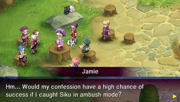 Pour finir avec les mauvaises idées, le soft nous propose, contrairement à tout bon ancien RPG qui se respecte, de faire évoluer nos personnages à un rythme différent. Le joueur doit donc choisir une équipe type au début du jeu et la garder sous peine de devoir refaire des heures et des heures de combats quand il décide d’en changer. Le problème étant lorsque, comme précédemment dit, un de vos personnages vous quitte en plein milieu de l’aventure, vous laissant avec un personnage qui peut être à la moitié des niveaux de votre équipe. Super, d’autant plus que lorsque celui-ci reviendra, il sera au même niveau que lorsqu’il a quitté l’équipe, forçant donc le joueur à aller refaire de longues heures de séances d’entraînement ou à le ranger dans un tiroir. Encore une fois, un mauvais choix de développement, un peu à la manière de Brave Story, qui faisait même pire en donnant un personnage niveau 1 alors que les autres sont niveau 50.