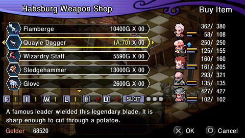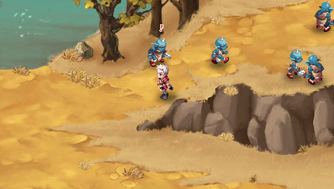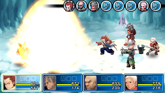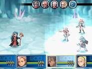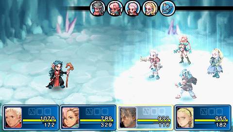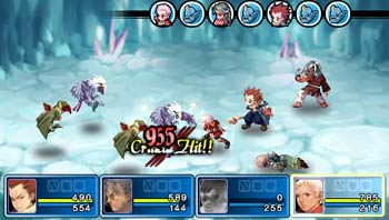Le jeu a néanmoins introduit un principe original : lorsque vous réalisez une attaque normale, après un temps de chargement pour la lancer, apparaît de temps à autres un « X » sur lequel il faut appuyer une ou plusieurs fois, vous permettant alors de réaliser une attaque critique dévastatrice et non sans classe. C’est bien la seule chose qui vous tient réveillé devant votre PSP, d’ailleurs. Malheureusement, cette probabilité d’attaque critique est directement tirée de la chance des personnages, il suffit donc de sur-booster cette caractéristique pour pouvoir en faire une à chaque attaque. Craqué.