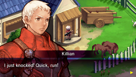 En 2006, le studio coréen Sonnori nous offrait un portage PSP d’Astonishia Story, sorti initialement sur GP32. Un jeu qui n’avait pas réellement convaincu les critiques et qui s’avérait assez difficile voire parfois rebutant. Une histoire de cailloux Crimson Gem Saga vous place dans la peau de Killian von Rohcoff, un tout jeune Chevalier diplômé de l’académie de Green Hill. Notre histoire débute lors de la remise des diplômes de ce dernier, au cours de laquelle il apprend qu’il n’est que le deuxième de sa promotion. Désillusion pour lui : il ne pourra intégrer la meilleure des meilleures milices. Sur recommandation du Directeur de l’Académie, il est envoyé à l’Ouest pour chercher un travail dans une milice locale et rencontre sur le chemin, Spinel, une voleuse qu’il sort d’un assez gros pétrin. Après cet évènement, elle l’accompagne et il s’enrôle dans la milice conseillée, qui s’apprête à partir en mission. Au cours de cette dernière, la milice se fait décimer par un personnage terriblement mystérieux qui semble désireux de se procurer des pierres magiques qui détiennent un pouvoir capable de détruire le monde ! Il décide donc d’enquêter sur ce personnage et de sauver le monde. Rien que ça. Vous l’aurez compris Crimson Gem Saga nous offre un scénario classique de RPG. Qui dit scénario classique, dit personnages stéréotypés ! Vous aurez donc la joie de parcourir le monde avec un héros jamais content, une voleuse espiègle, un magicien arrogant, un vieil homme qui aime boire, un moine et une femme de la quarantaine pleine de remords. Les personnages s’avèrent plat, leur passé n’étant que trop peu relaté et à la fin de l’aventure, on se rend compte qu’ils n’ont pas du tout appris de leur voyage. Le joueur non plus, d’ailleurs. Néanmoins il faut noter la présence de quelques notes et scènes d’humour qui agrémentent les dialogues et réussissent à remonter par à-coups l’intérêt des dialogues. Malgré cela, la traduction anglaise – hasardeuse – laisse à désirer (quelques « woot » et autres non-sens) ce qui nous donne une véritable impression de bouillie scénaristique.