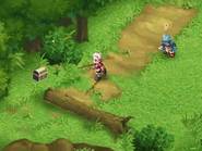 Cependant ce point positif n'est valable que pour les personnages principaux, les décors en villes et les ennemis les plus importants. Le reste manque beaucoup plus de vie et n’en est que plus insipide. Les PNJ sont indubitablement recyclés de manière très insistante (il est possible d’avoir plusieurs fois le même personnage dans le même écran !), les décors en combat sont relativement vides, et les donjons proposent plusieurs fois les mêmes décors, qui manquent cruellement d’originalité et surtout de vie. Nous aurons d’ailleurs l’opportunité d’en reparler un peu plus tard, de ces fameux donjons. Enfin, on pourra déplorer le manque de discernement des ennemis, qui sont clairement apparents sur la carte, à la manière d’un Grandia. En effet, ces derniers on tous la même apparence, à savoir un gobelin bleu, que ce soit dans les artworks des combats ou dans les donjons. Ceci pose un énorme problème car certains peuvent cacher aléatoirement un seul ennemi ou plusieurs, mais surtout ces ennemis peuvent être d’un tout autre niveau que votre équipe ! Il faut donc croire que le designer était tellement en retard dans son planning qu’il a décidé de nous rendre la vie dure.