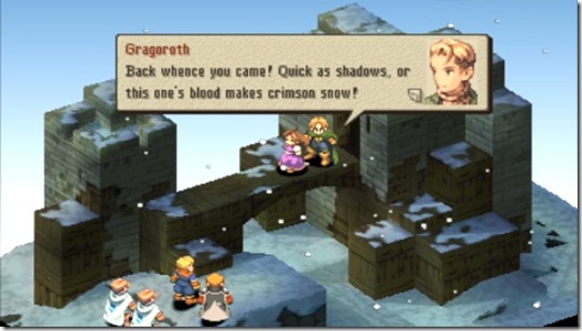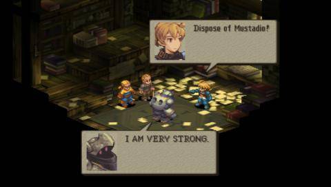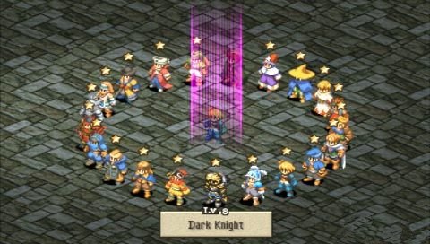 comme l'indique son titre, on a à faire à un tactical RPG, genre qui a gagné en renommée après des titres comme Disgaea ou Fire Emblem. Comme vous le savez, vous avez votre petite armée et vous devez éliminer l'armée adverse. Simple et efficace comme concept. En général, les personnages de votre armée ont une classe définie, genre épéiste ou mage, et éventuellement une promotion plus puissante. Il n'est point question de ceci dans le présent jeu. On retrouve un système de classe, ou jobs, qui est directement inspiré de celui de Final Fantasy V. Voyons cela par le commencement. Lorsque vous effectuez une action, vous gagnez de l'expérience, comme de bien entendu, mais aussi des « Job Points ». Ces « jp » peuvent être utilisés pour apprendre les compétences liées à un job. Par exemple, pour apprendre la compétence « swiftness » qui permet de réduire le temps de charge (voir plus bas), il faut utiliser 1000 « jp » alors que la compétence « fire » coutera 50 de ces mêmes « jp ». Il faudra donc essayer de gagner le plus rapidement possible ces points pour devenir de plus en plus puissant. Simple comme système, n'est-il pas...