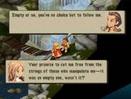 On a déjà vu que le scénario reste relativement classique. Par contre, il présente un aspect qui est loin d'être classique. Il s'agit de la façon dont les dialogues sont écrits. En effet, si les textes sont de l'anglais (ce qui est dommage, cela dit, car le jeu aurait pu être traduit en français, mais cela n'est qu'un détail), il s'agit de vieil anglais, un anglais plus riche en tournures de phrase que celui dont on a l'habitude. Imaginez un peu, c'est comme si on utilisait les « fichtre », « diantre » et autres « que nenni » pour les dialogues en français. Ainsi, Final Fantasy Tactics acquiert une richesse et une véracité, à défaut d'un autre mot, plus grandes que si l'anglais contemporain avait été utilisé. Un coup de génie simple et efficace. Certains risquent d'être déconcertés par ces tournures de phrase, mais on ne peut nier leur importance dans le plaisir que l'on a à suivre le récit. Reste le monde et son folklore que l'on peut découvrir de manière indirecte. En effet, via les différentes missions (voir plus loin pour les détails), on en découvrira plus sur Ivalice. Ainsi, certains lieux ne seront évoqués que par ce biais. On peut aussi lire les chroniques d'Ivalice pour mieux comprendre l'univers dans lequel on évolue.