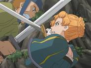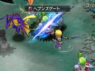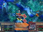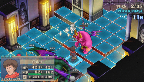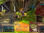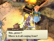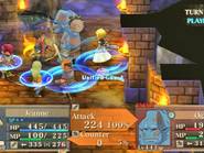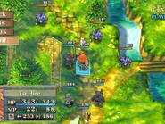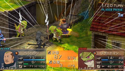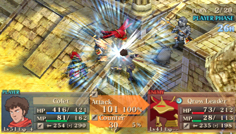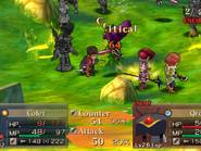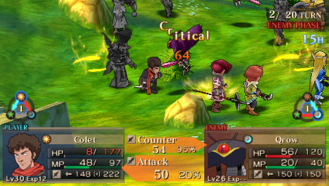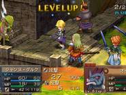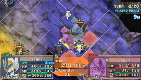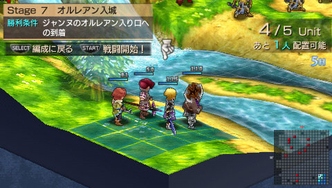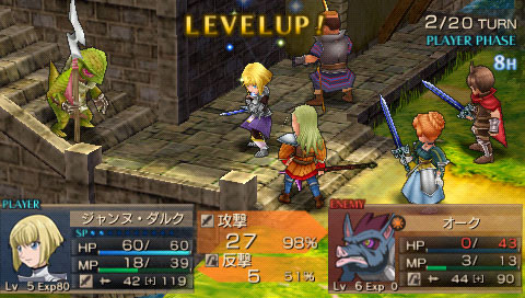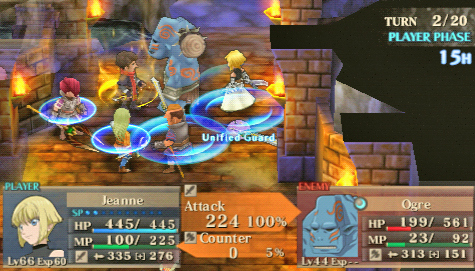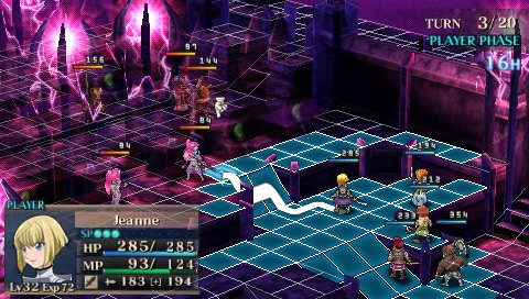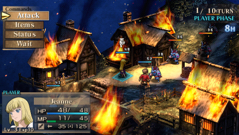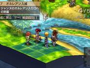 Il y a des jeux dont le titre suffit à lui seul présager une sortie sur notre territoire, d’autant plus quand celui-ci s’attache à une période et un personnage emblématique de notre Histoire. Malheureusement, force est de constater que plusieurs mois après une sortie japonaise et américaine, le Jeanne d’Arc de Level-5 ne devrait jamais franchir nos frontières qu’au travers de l’import. Pourquoi ? On peut se poser la question surtout quand on voit que la PSP avait enfin fourni l’occasion à de nombreux joueurs de rattraper leur retard sur certains RPGs qui avaient été boudés du temps de la PSone. Question d’autant plus légitime que les jeux de Level-5 sur consoles de salon avaient débarqué à grand fracas et haute estime chez nous. Alors faut-il déplorer que les aventures de la Pucelle d’Orléans revu et corrigé par leurs soins n’aient jamais pu nous parvenir ? La vie de Jeanne d’Arc, revue et corrigée par Level-5 Pas la peine de chercher une volonté de recréer l’ambiance de l’époque ou de traduire ce que fut vraiment la vie de Jeanne d’Arc, Level-5 n’a fait que reprendre l’idée et l’Histoire comme base pour y implanter son univers propre, teinté d’héroïc-fantasy mêlé de créatures féeriques et de démons. Ainsi l’histoire commence par une intro présentée sous la forme d’un animé dans un style typiquement japonais. Celle-ci nous conte une vieille légende concernant un redoutable seigneur du mal qui aurait tenté d’asservir le monde. Heureusement, au cours d’une terrible bataille, 5 élus réussirent à le repousser et à sceller ce terrible ennemi ramenant par là même la paix. Quelques années plus tard, alors qu’une nouvelle guerre oppose l’Angleterre et la France, le duc de Bedford, un des 5 héros et oncle du très jeune Henri VI, roi d’Angleterre décide d’offre le corps de son neveu à son ancien ennemi. Une attitude étrange qui cache une raison que le joueur devra découvrir au cours de l’aventure mais qui, en tout cas, va donner l’avantage aux anglais dans ce conflit qui vont s’emparer d’une bonne partie de la France. Loin de tout cela, en France, dans le petit village de Domrémy, une fête s’organise. Jeanne, aidée de ses amis Liane et Roger, se prépare aux festivités. Malheureusement, celle-ci n’aura pas lieu car le village est attaqué par des démons à la poursuite d’un cavalier mourant que recueillera Jeanne. Celle-ci va découvrir que ce dernier transportait un mystérieux bracelet qui va se greffer comme par magie au bras de la jeune fille. Grâce à cet objet, qui lui permet de se transformer en une puissante guerrière, et l’aide de ses amis, Jeanne va réussir à repousser les démons. Une mystérieuse voix va ensuite demander à Jeanne de chasser les Anglais d’Orléans et de mettre enfin sur le trône de France son héritier légitime, le dauphin Charles VII. Poussée par ses voix, Jeanne va partir en quête afin d’accomplir sa destinée et sauver son pays. Dans cette entreprise, elle sera aidée par ses amis Liane et Roger. Elle sera également rejointe par des soldats français dont l’énigmatique Gilles de Rais qui possède également un bracelet similaire à celui de Jeanne. Comme je l’ai mentionné plus haut, Level 5 s’inspire de l’histoire de la Pucelle en reprenant les faits dans les grandes lignes et en les retranscrivant dans un contexte particulier où se mêle magie et créatures féeriques. Il ne faudra donc pas s’étonner de croiser des elfes, des nains et autres personnages mi-hommes mi-bêtes. Certains sont même retravaillés dans ce sens comme le bien connu La Hire qui apparaît ici sous la forme d’un homme-lion. Ainsi, on trouve un récit partagé entre les allusions « historiques » retravaillées de la vie de Jeanne d’Arc et la nécessité des scénaristes de Level-5 de dynamiser celui-ci par des batailles imaginaires. Le résultat reste convenable dans l’ensemble mais pas spécialement marquant pour autant. Quelques invraisemblances ou ellipses faciles viennent ternir un peu une histoire qui repose sur un habituel cliché, tuer enfin le Seigneur des démons que les anciens n’ont fait que sceller. Pour le reste, hormis un ou deux passages marquants, les rebondissements sont généralement prévisibles ou sortent également peu des sentiers battus. La véritable « originalité », si on peut qualifier cela ainsi, tient surtout du mélange avec le côté historique du scénario qui démontre quand même une certaine connaissance des auteurs de leur sujet. Toutefois, l’ensemble manque d’impact et n’exploite pas assez son filon. Il ne se détache en rien de la production propre au genre, se suit bien malgré tout mais ne devrait aucunement laisser un souvenir impérissable. On peut compter sur les personnages pour rehausser un peu l’intérêt. C’est pour beaucoup une question de goûts mais leur personnalité peut contribuer aisément à faire adhérer au récit. Pour ma part, j’ai bien apprécié le personnage de Jeanne. On retrouve déjà le côté masculin du personnage tel qu’il a été raconté à l’époque et est perçu encore aujourd’hui. A cela s’ajoute également son côté jusqu’au-boutiste qui, pour ma part, fait le charme du personnage. On la sent particulièrement impulsive, habitée par sa mission au point d’être unilatéralement centré vers cet objectif. L’histoire passe d’ailleurs à côté de la romance du jeu qui est ici habilement détournée, ce que j’ai d’autant plus apprécié pour ma part et change de ce que l’on voit habituellement. Parmi les personnages secondaires importants, on dénotera en premier lieu ses amis, Liane et Roger qui restent pendant un certain temps dans l’ombre de leur fougueuse camarade mais finissent par se détacher et imposer une personnalité moins plate que de prime abord, surtout concernant Liane. On peut également ajouter Gilles de Rais, ga