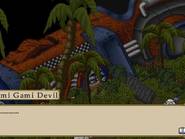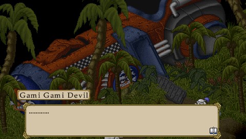 Cette musique annonçait la venue de Gami Gami Devil. Le fourbe ne pouvait s'empêcher de toujours faire une entrée en grande pompe. Malheureusement, et comme à l'accoutumée, son vaisseau s'écrasa à quelques centaines de mètres de leur camp. Le " plus grand diable du royaume " sortit en titubant, encore tout noirci par les flammes qui dévoraient son engin.