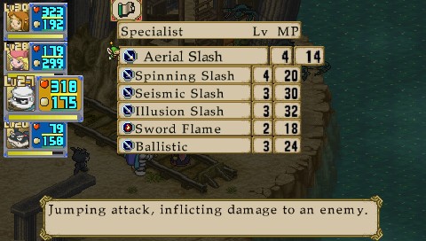 Comble du bonheur, chaque membre du groupe disposait de capacités propres qui se complétaient toujours à la perfection avec celles des autres. Ainsi, la jeune sorcière apprentie, Narcia, se retrouvait toujours en dernière ligne, chargée des soins. Un poste ô combien vital pour leur survie. De même, Pietro, Gami Gami Devil ou bien le Chevalier Blanc devait se charger d'occire le plus rapidement possible l'ennemi. Leur force étant incomparable, ces postes d'avant-garde leur revenaient de droit. Enfin, les membres plus enclins à attaquer à distance, comme Léona l'archère, devaient opter pour un poste à mi-distance, évitant alors les attaques ennemies tout en faisant un maximum de dégâts.