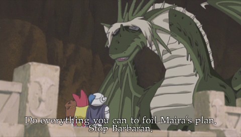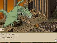 C'est au détour d'une de leurs pérégrinations qu'ils tombèrent sur une étrange scène où Gilbert, un jeune dragon, était muselé à une poutre. Après de multiples palabres complètement loufoques et dénuées de sens avec son ravisseur, notre équipe de jeunes héros dut lui botter les fesses. Ils libérèrent en suivant le jeune Gilbert qui, pour les remercier, les emmena sur la terre sacrée des dragons. Ils s'étaient fait un nouvel ami et cela leur rendra de bien fiers services par la suite...