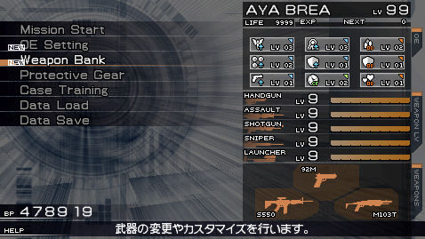 Cinq catégories d'armes acquièrent de l'expérience à chaque fois qu'on les utilise. Cet apprentissage permet d'obtenir des « customisations » plus avancées. Néanmoins on ne peut pas améliorer nos armes selon notre bon vouloir au tout début. En effet, si on joue par exemple en mode normal, le niveau des armes ne pourra pas augmenter au dessus de 4 ; en difficile on ne dépassera que difficilement le niveau 5.