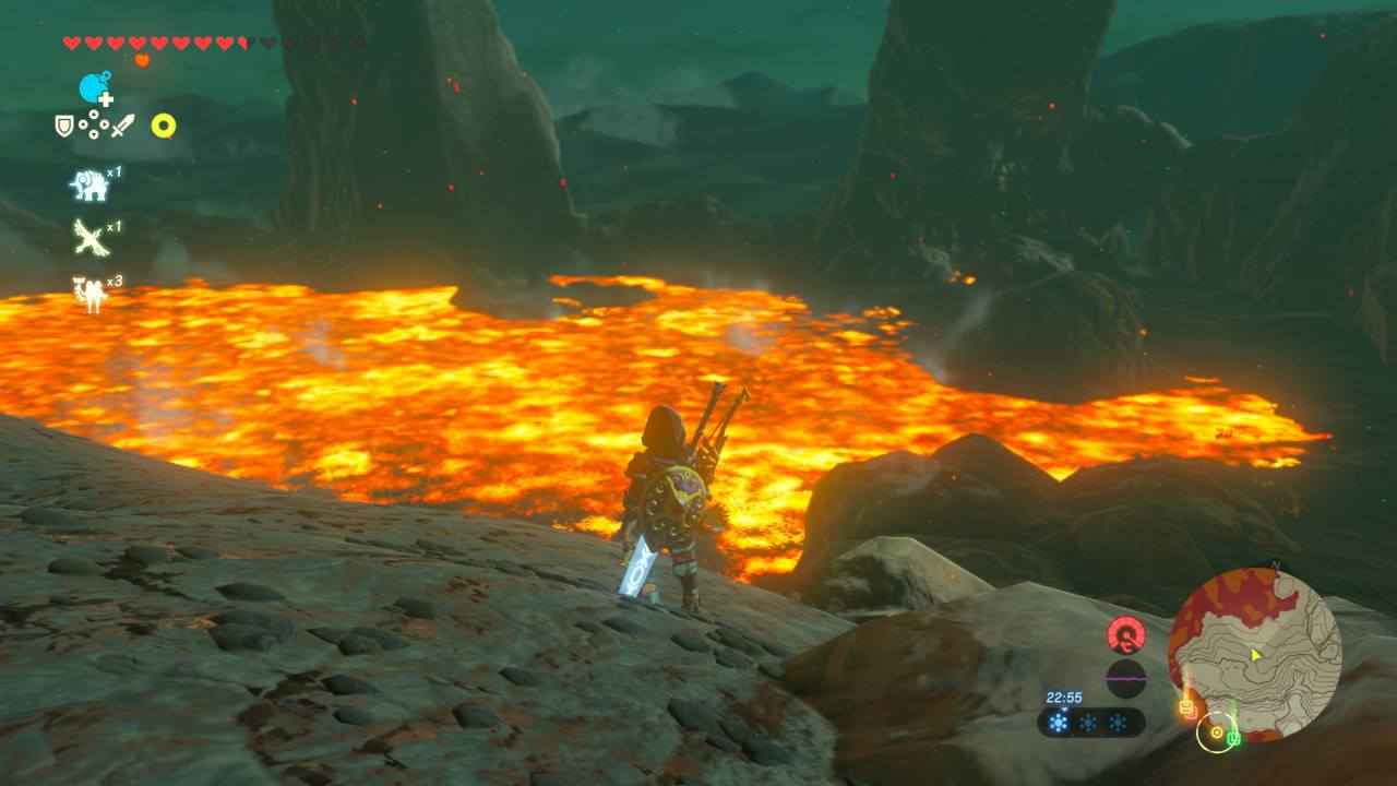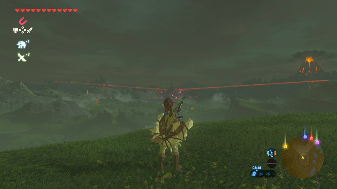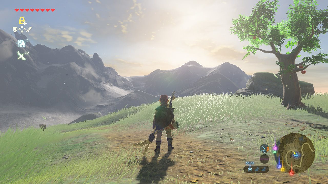 The Legend of Zelda est probablement une des séries de jeu les plus connues et appréciées des joueurs. Enchaînant sans faute après sans faute (Non, les épisodes sur la CDI de Philips n'existent pas) la saga est devenu synonyme d'excellence vidéo-ludique et s'est créé une place de choix dans le cœur du public ; de sorte qu'elle fait aujourd'hui partie des rares séries à réellement porter le titre de « Légende ». Mais même au milieu de tous ces modèles d'excellence, le dernier né de la saga, The Legend of Zelda : Breath of the Wild, fait office de figure marquante, tant il n'a de cesse d'être porté aux nues par la presse et le public. Certains allant même jusqu'à clamer haut et fort qu'il s'agit là du plus grand jeu-vidéo de tous les temps. Maintenant que l’engouement de la sortie est retombé, plutôt qu'établir à nouveau que Breath of the Wild est une réussite, tâchons de comprendre pourquoi. Avant-propos Avant de commencer à parler de ce nouveau Zelda, il convient de poser quelques bases qui aideront non seulement à apprécier l'article, mais aussi d'une certaine manière le jeu. Ainsi il convient de préciser que cette review ne sera en aucun cas exhaustive, tout d'abord car le monde d'Hyrule est immense et les choses à y faire légions ; mais surtout dans un souci de ne pas gâcher le plaisir principal de Breath of the Wild : la découverte. De fait, rendez-vous service : jouez au jeu sans soluce, sans astuces, sans vidéos. Jouez au jeu comme un aventurier, autorisez-vous le droit de vous égarer car c'est dans ces moments-là que vous comprendrez toute la portée de Breath of the Wild. Soyons clairs, s'il est difficile de retranscrire nos sensations de jeu à l'écrit et ce quel que soit le soft, ce postulat est encore plus vrai en ce qui concerne ce nouveau Zelda, qui fait clairement partie des jeux qui se vivent, et nous ne pouvons que vous conseiller de faire juste ça : vivre le jeu. Un petit point technique maintenant : la review est réalisée à partir d'une version Switch et à l'heure où elle sera mise en ligne (et dans une certaine mesure où elle est rédigée), plusieurs patchs auront été implantés apportant leur lot d'améliorations, corrigeant notamment des problèmes de framerate çà et là ou de stabilité. La (re)naissance d'une légende On le sait maintenant, si Breath of the Wild procède à une véritable relecture de la saga Zelda, cette dernière ne nous saute pas aux yeux instantanément. Plus encore, le jeu semble décidé à nous induire en erreur en jouant la carte de l'hommage tant le début paraîtra familier à quiconque aura joué à quelques épisodes précédents. Vous prenez ainsi le contrôle de Link alors que celui-ci vient péniblement de se faire extirper de ce qui semble être un long sommeil par une voix féminine. Debout dans une grotte simplement vêtu d'un boxer et sans aucune indication, il ne tient qu'au joueur de se diriger vers la sortie, unique chemin possible. Après quelques actions ayant pour but de nous familiariser avec les contrôles de base du jeu (des plus simples comme bouger, courir ou soulever, aux plus importantes comme sauter ou grimper), Link arrive à la sortie de la grotte. Et tandis qu'il s'approche du bord de la falaise sur laquelle est située la caverne, le thème principal se lance et la caméra s'éloigne, offrant un magnifique plan large d'Hyrule, telle une promesse faite au joueur. Si à ce moment le doute est encore permis, il convient de le dissiper maintenant : le jeu tiendra cette promesse tacite. Tout, absolument tout ce qui est montré dans ce plan et bien plus encore, sera explorable dans le soft en lui-même. Quand le game-design se met au service de l'Aventure N'attendons pas la fin du paragraphe histoire de ne pas instaurer un suspense superficiel : The Legend of Zelda : Breath of the Wild est à lui seul une leçon adressée au monde du jeu vidéo, tout d'abord, mais aussi et surtout et à celui des « open-world ». Genre souverain de ces dernières années dont les différents représentants, très prompts à s'enfermer dans une course aux collectables et aux kilomètres carré stériles, se sont depuis quelques temps engoncés dans une formule alambiquée et vieillissante. Véritable pied de nez aux productions actuelles, Breath of the Wild dépoussière cette formule avec brio, en s'émancipant de conventions habituelles au genre bien souvent encombrantes pour offrir au joueur une liberté exceptionnelle. - Sans jamais dire où je vais, je veux faire ce qu'il me plait La première chose qui saute aux yeux en jouant à Breath of the Wild, c'est la liberté qu'autorise le soft et ce, dès le didacticiel. À peine sorti de la grotte, vous vous trouvez sur le plateau du prélude, grande zone où aura lieu votre apprentissage. C'est sur cette dernière que le jeu vous informera de la quête qui est vôtre - la seule obligatoire pour finir le jeu - et, faisant fi des traditions de la saga, vous remettra tous les outils nécessaires pour la mener à bien. En effet, comme pour signifier au joueur qu'il allait maintenant devoir se débrouiller seul, tous les « pouvoirs » nécessaires à la résolution des énigmes sont mis en votre possession dès la fin du didacticiel, moment où Link sera lâché dans les plaines verdoyantes d'Hyrule avec pour seul objectif de vaincre Ganon. À partir de là, plus rien n'est imposé, et même ce qui semblent être des quêtes principales ne sont en fait que des conseils. Avec tous les outils de bases en main, le joueur est libre d'aller affronter Ganon après une petite heure de jeu, ou de prendre son temps et d'explorer le vaste et vivant monde d'Hyrule de fond en comble. Cela rend dans un premier temps l'aventure moins « dirigiste », moins systématique que ce à quoi nous avait habitué la série. Mais surtout cela offre une odyssée totalement dépendante du joueur, qui écrit ici sa propre histoire, parsemée d'anecdotes qu'