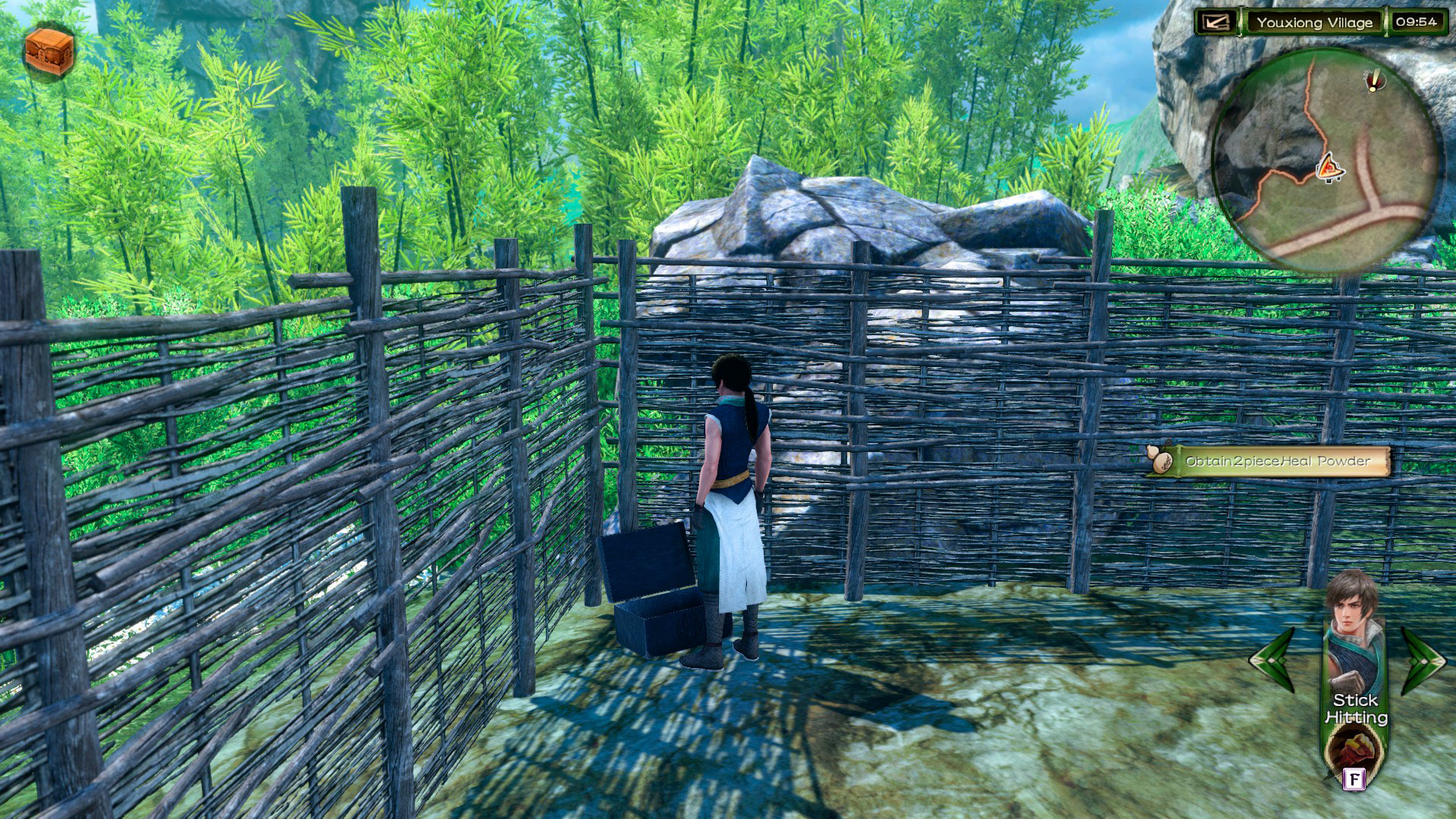 Après un petit prologue, vous prenez le contrôle de Sikong Yu. Immédiatement sur votre gauche se trouve un premier coffre contenant Heal Powder x2 (image 1). A noter qu’il est possible d’examiner à nouveau chaque coffre afin de les détruire et ainsi obtenir des composants. Dirigez-vous vers le champ pour déclencher une nouvelle scène où vous découvrirez de nombreux personnages. De retour au village, vous êtes maintenant libre de l’explorer. Du côté gauche, vous trouverez une première quête en parlant avec Tzu Yi : Yangzi Hairpin Ornament. Revenez sur vos pas et allez sur la droite. Au nord se trouvent deux nouveaux coffres : Magic Powder x2 et un autre verrouillé. Il vous suffit de reconstituer de simples mots (College, Elegant, Library, …) en choisissant la lettre manquante (image 2). Vous récupérez ainsi un Bracelet. Équipez-le à votre personnage pour augmenter votre puissance d’attaque. Continuez vers le nord pour rencontrer Li San. Vous pouvez ainsi débuter la première quête de personnage pour Yu : Story of Surname. Revenez sur vos pas, et vous pourrez parler au frère du Chef du village pour poursuivre cette quête. Vous devrez ensuite parler à Qingmei, puis à nouveau au frère pour conclure cette quête. Ces quêtes de personnages sont très importantes pour approfondir les personnages et l’histoire. Elles vous apporteront en outre de bonnes récompenses. Vers la sortie du village, vous trouverez un dernier coffre contenant Revival Pill. Vous trouverez également un vendeur (auquel vous ne pourrez probablement pas acheter grand-chose). Parlez à Huan pour obtenir la quête Plum Vinegar. Vous pouvez également débuter une seconde quête pour Yu : Father to Son (image 3). Vous devrez parler à plusieurs personnages dans le village pour la terminer. Dirigez-vous ensuite à la sortie du village pour aboutir sur la carte du monde. Entrez dans le nouveau lieu disponible.