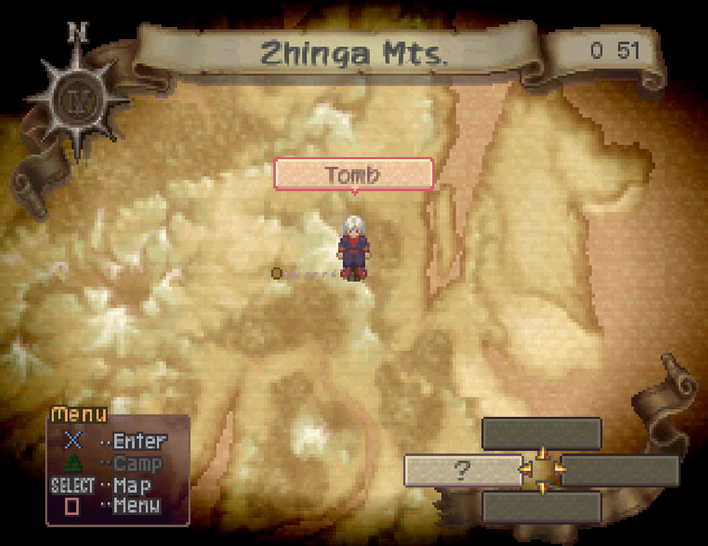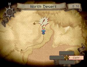 Après une longue scène d’introduction, vous prenez le contrôle de Nina. Cray vous tend l’arme King’s Sword, alors même que Nina ne peut évidemment pas s’en équiper. Sortez de l’écran et choisissez de rejoindre le lieu marqué Cliff. Après quelques mètres, votre déplacement est interrompu par un “!”, et vous n’avez pas d’autres choix que d’appuyer sur X pour continuer. Suivez la scène afin que Ryu rejoigne votre équipe. Vous pouvez à présent vous rendre à Cliff. A noter qu’il est possible de faire quelques combats sur la carte du monde afin de rencontrer quelques monstres (Cap, Eye Goo, Mage Goo et Scorpion). La plupart de ces monstres possèdent une compétence à apprendre.